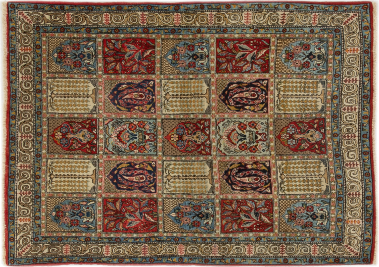 Dit tapijt is afkomstig uit Iran (voorheen Perzië) en geniet als Perzisch tapijt de waarschijnlijk hoogste reputatie onder alle handgeknoopte tapijtsoorten. Geen enkele andere regio kijkt terug op zo'n lange traditie in het knopen van tapijten als Iran. Dus de waarschijnlijk mooiste en meest uitgebreide tapijten komen hier. De robuustheid, duurzaamheid en kwaliteit van de Perzische knoop zijn vandaag de dag nog steeds onovertroffen. Perzische tapijten zijn meestal vernoemd naar hun regio van herkomst. Zo komt een Nain, een Ghom en een Isfahan tapijt uit de gelijknamige stad in Iran.