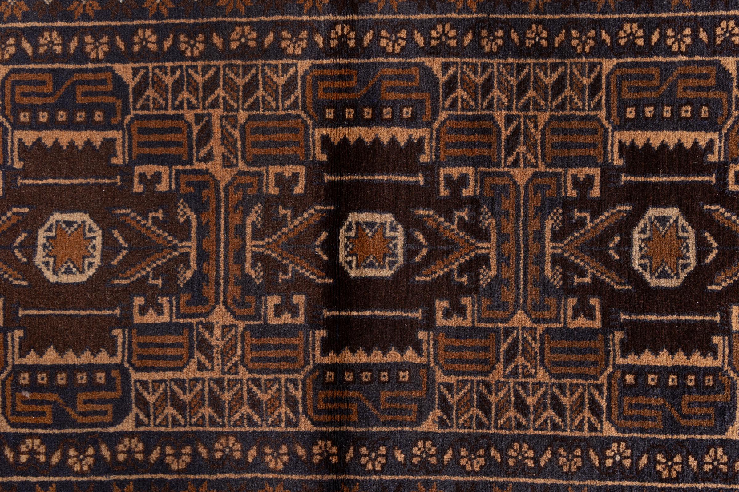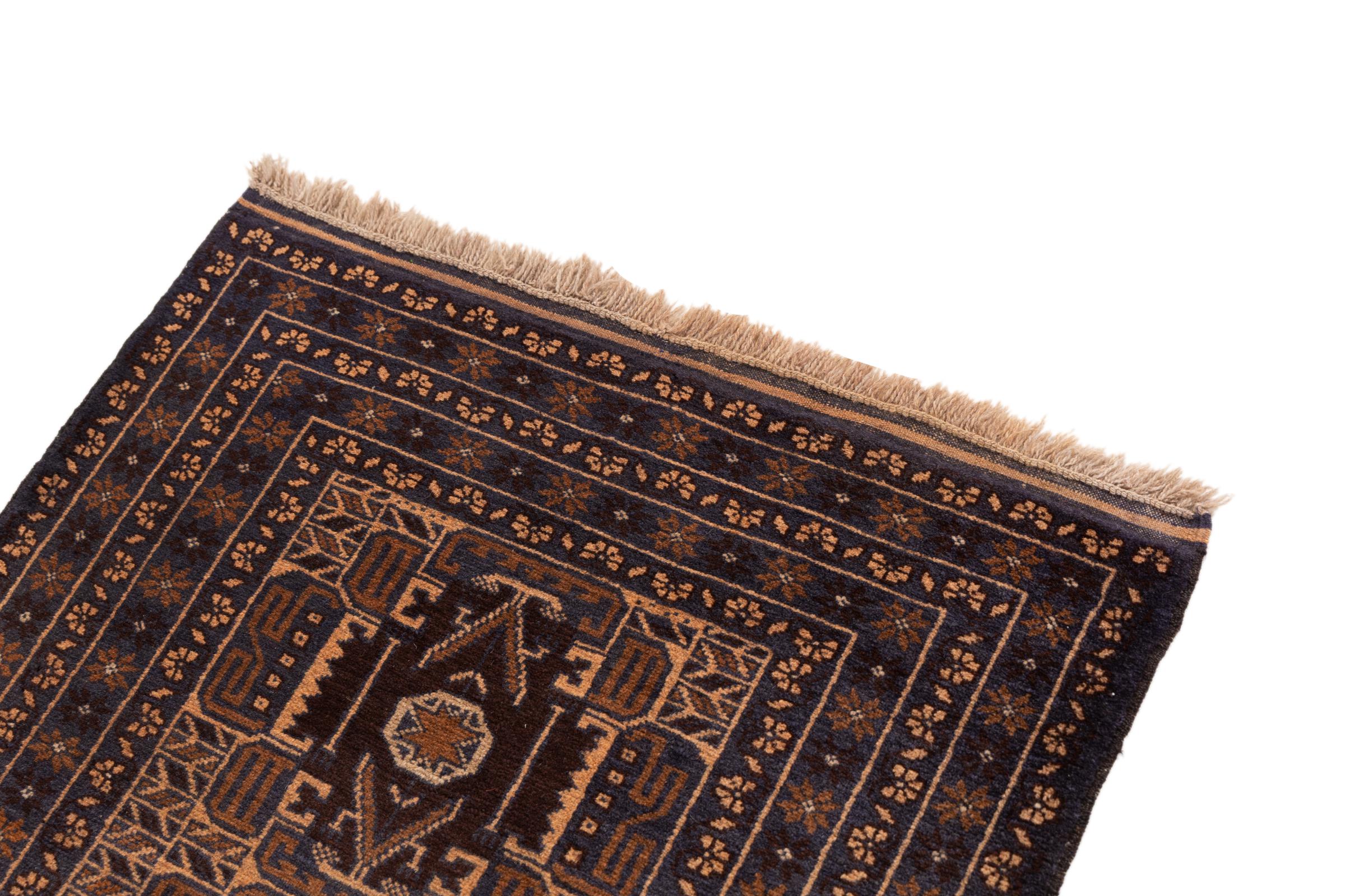 Dit Beluch tapijt is een prachtig voorbeeld van echte nomadische kunst. Dit Perzische tapijt is gemaakt in het grensgebied tussen Iran en Afghanistan en weet indruk te maken dankzij het dichte, asymmetrische weefsel. De levendige patronen maken het een lust voor het oog. De donkere tinten zijn typisch en verspreiden een aangename warmte. Het mooie natuurlijke garen straalt kwaliteit uit en maakt het extreem duurzaam. Typisch voor dit tapijt zijn de rechte patronen die het een karakteristiek nomadisch tapijt maken.