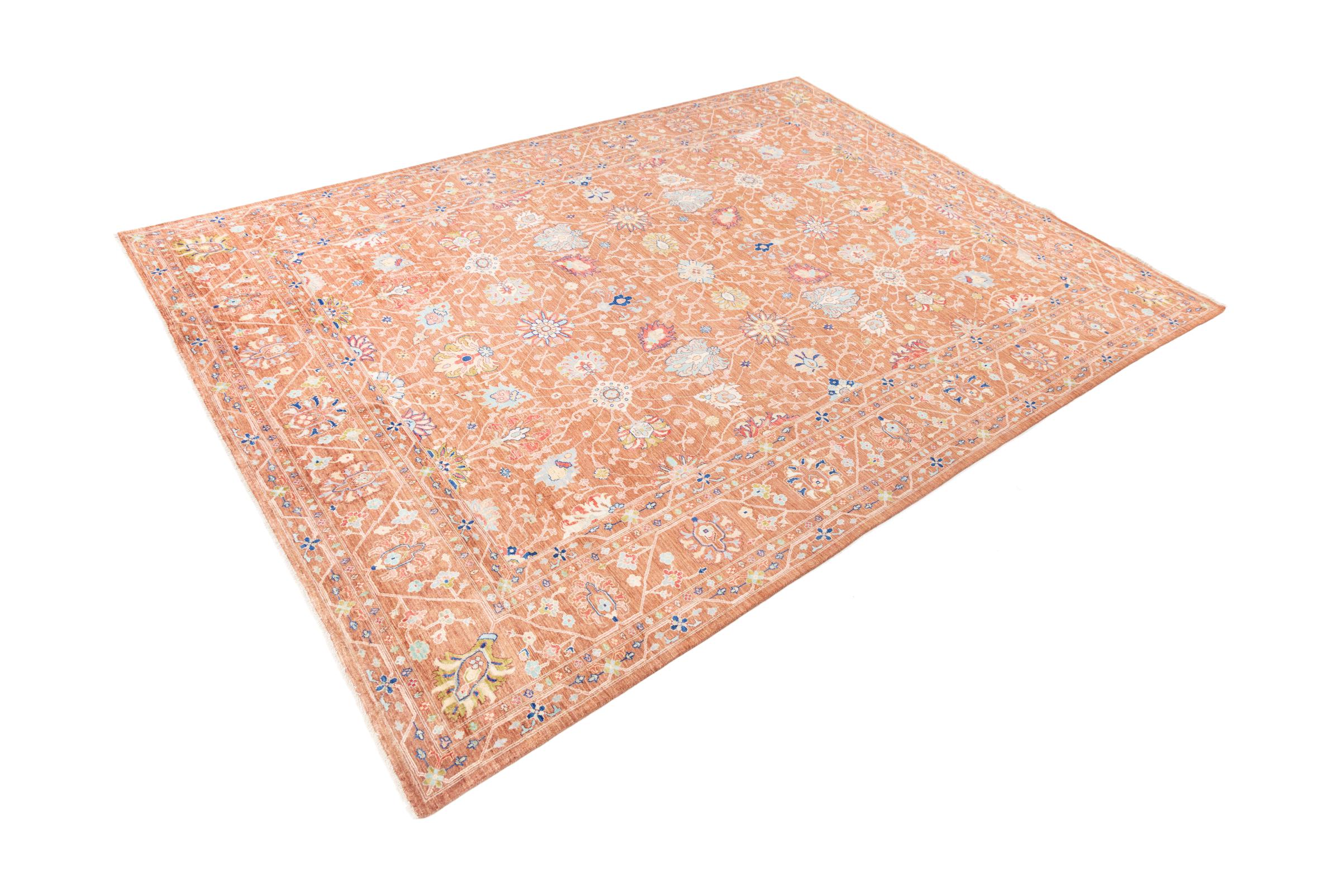 Dit Arijana tapijt heeft een klassiek ontwerp. Het tapijt is gemodelleerd met de versieringen van traditionele Perzische tapijten. Samen met moderne designelementen en felle kleuren is het naar het heden gebracht. Het ontwerp is tegenwoordig erg populair en staat garant voor een absolute blikvanger in je huis. Bovendien zijn handgeknoopte tapijten gewoonweg onovertroffen in hun kwaliteit, duurzaamheid en unieke karakter.