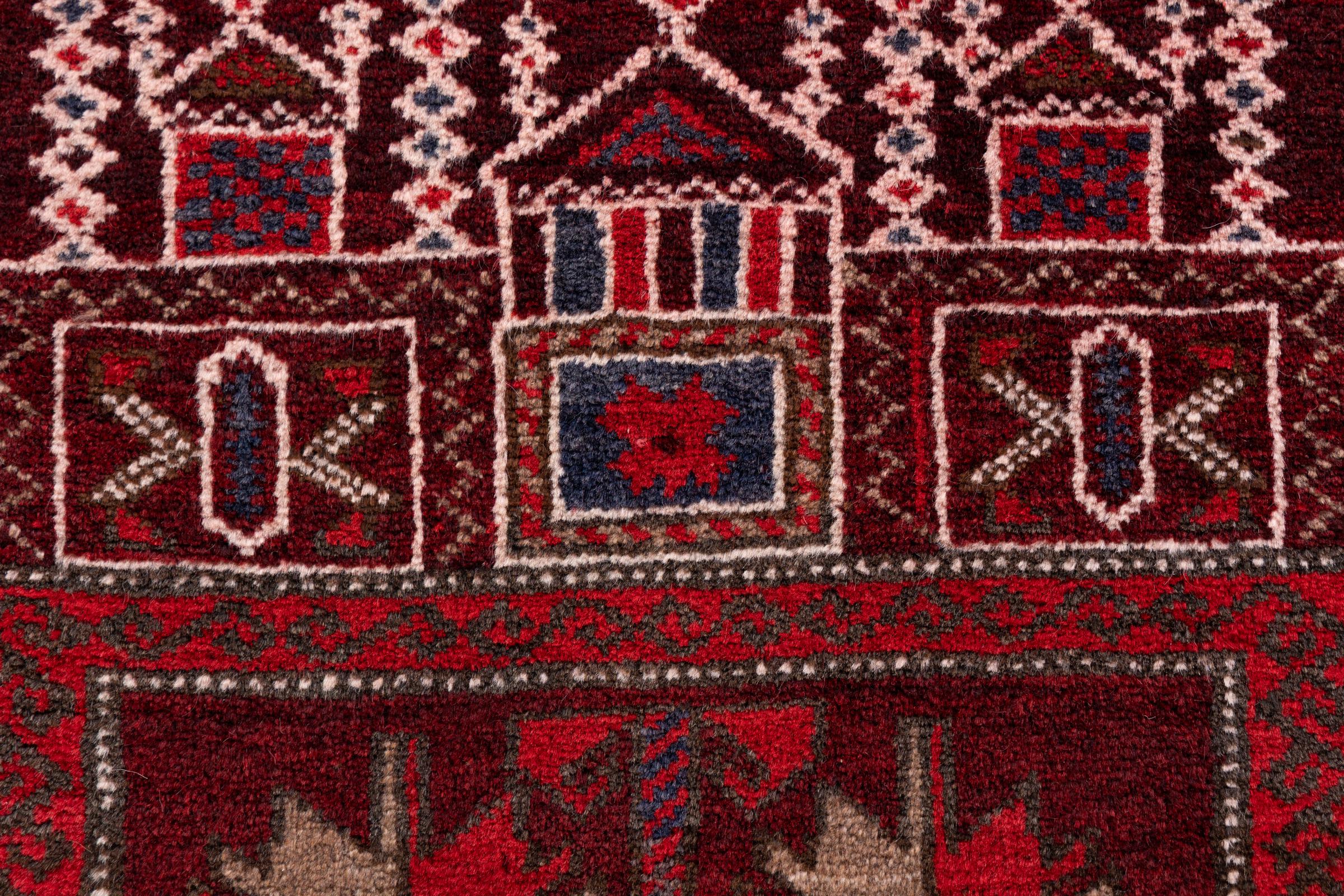 Dit Beluch tapijt is een prachtig voorbeeld van echte nomadische kunst. Dit Perzische tapijt is gemaakt in het grensgebied tussen Iran en Afghanistan en weet indruk te maken dankzij het dichte, asymmetrische weefsel. De levendige patronen maken het een lust voor het oog. De donkere tinten zijn typisch en verspreiden een aangename warmte. Het mooie natuurlijke garen straalt kwaliteit uit en maakt het extreem duurzaam. Typisch voor dit tapijt zijn de rechte patronen die het een karakteristiek nomadisch tapijt maken.