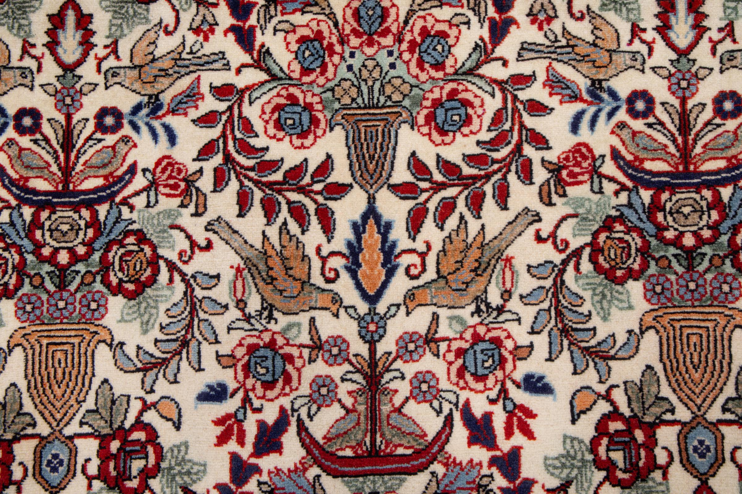Dit tapijt is gemaakt van handgesponnen schapenwol van de hoogste kwaliteit. Vooral in Iran (voormalig Perzië), Afghanistan en Pakistan wordt de wol nog met de hand gesponnen voordat het eigenlijke knopen van het tapijt begint. Wol heeft zich door de eeuwen heen bewezen als een natuurlijk en extreem slijtvast materiaal. Het heeft onder andere vuilafstotende en warmte-isolerende eigenschappen. Tegelijkertijd is wol onvergelijkbaar zacht en heeft het een natuurlijke glans.