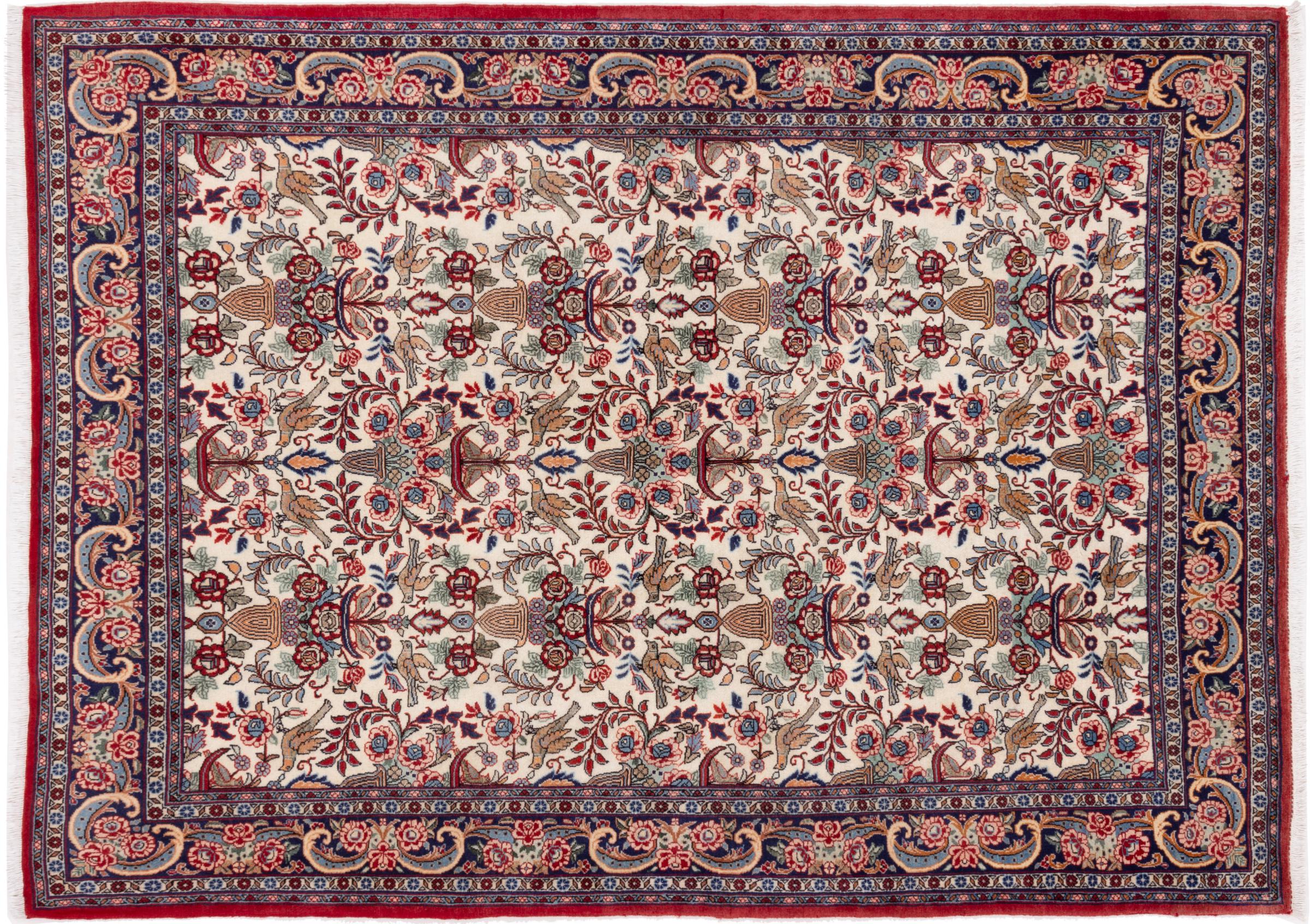Tapijt ID: 292311005763160 Grootte: 199x144 cm Dikte: ap. 15 mm Knoopdichtheid: 440 000 - 490 000 / m² Verwerking: Handgeknoopte Pool: Hand gesponnen wol Schering: Katoen Oorsprong: Perzië / Iran Leeftijd: Nieuw Gewicht: ap. 14 kg Op voorraad: Uniek - Nog maar 1 op voorraad