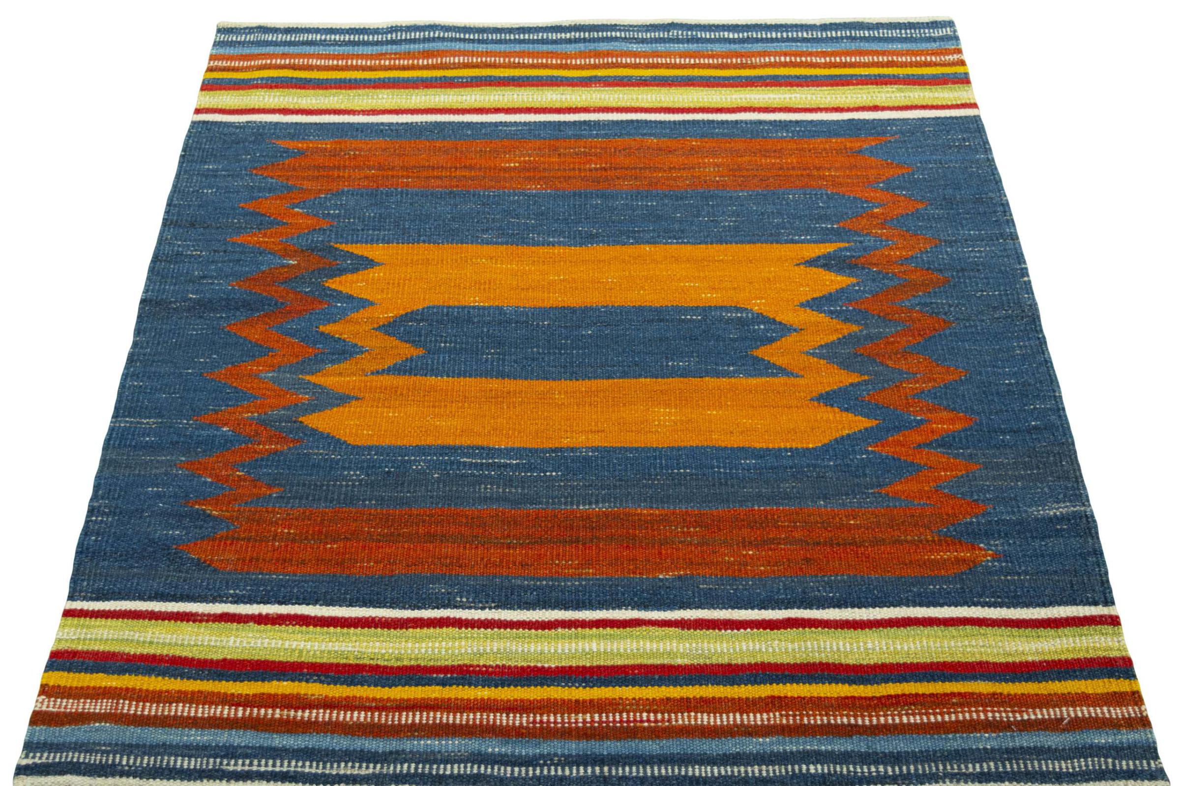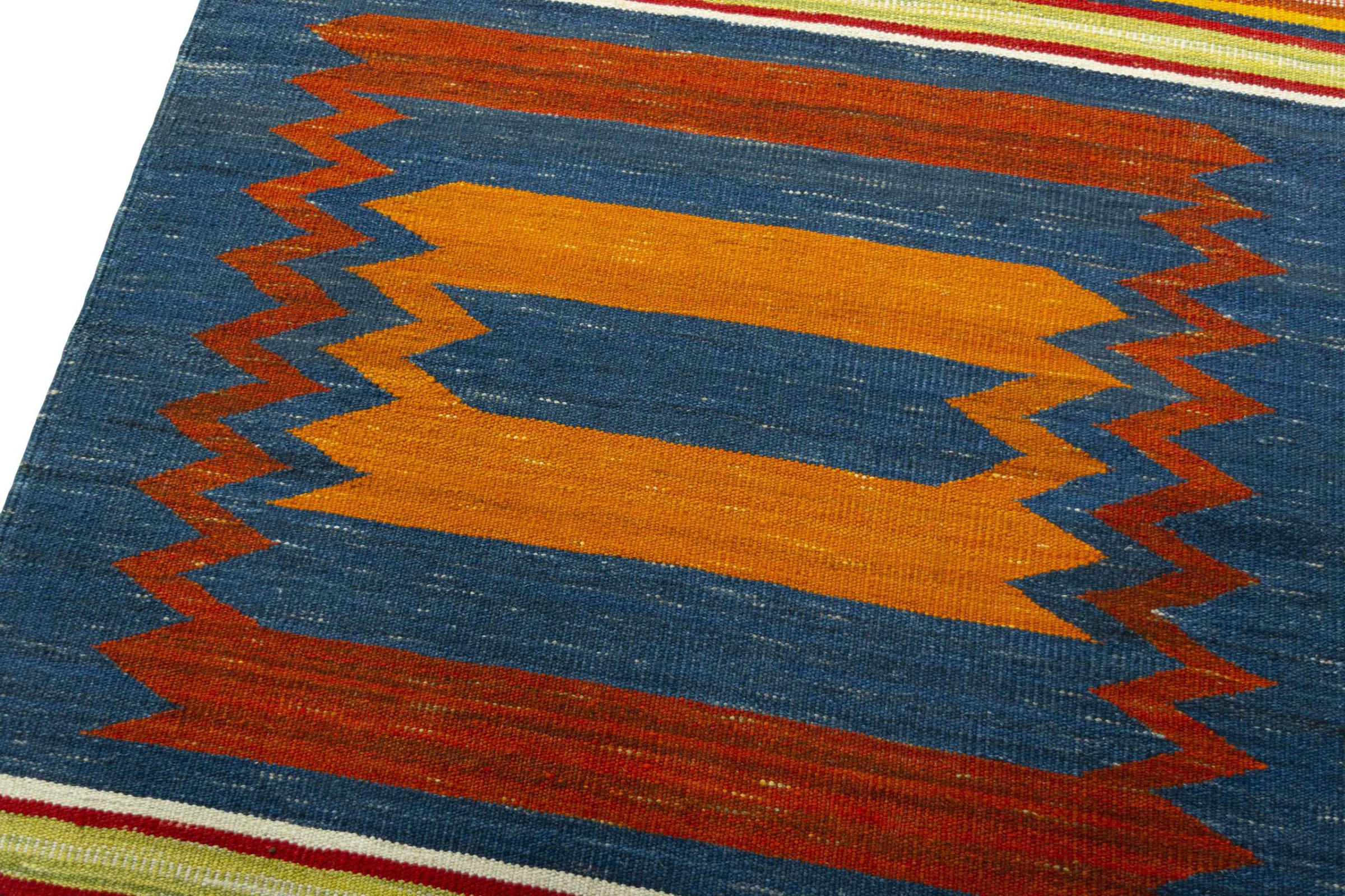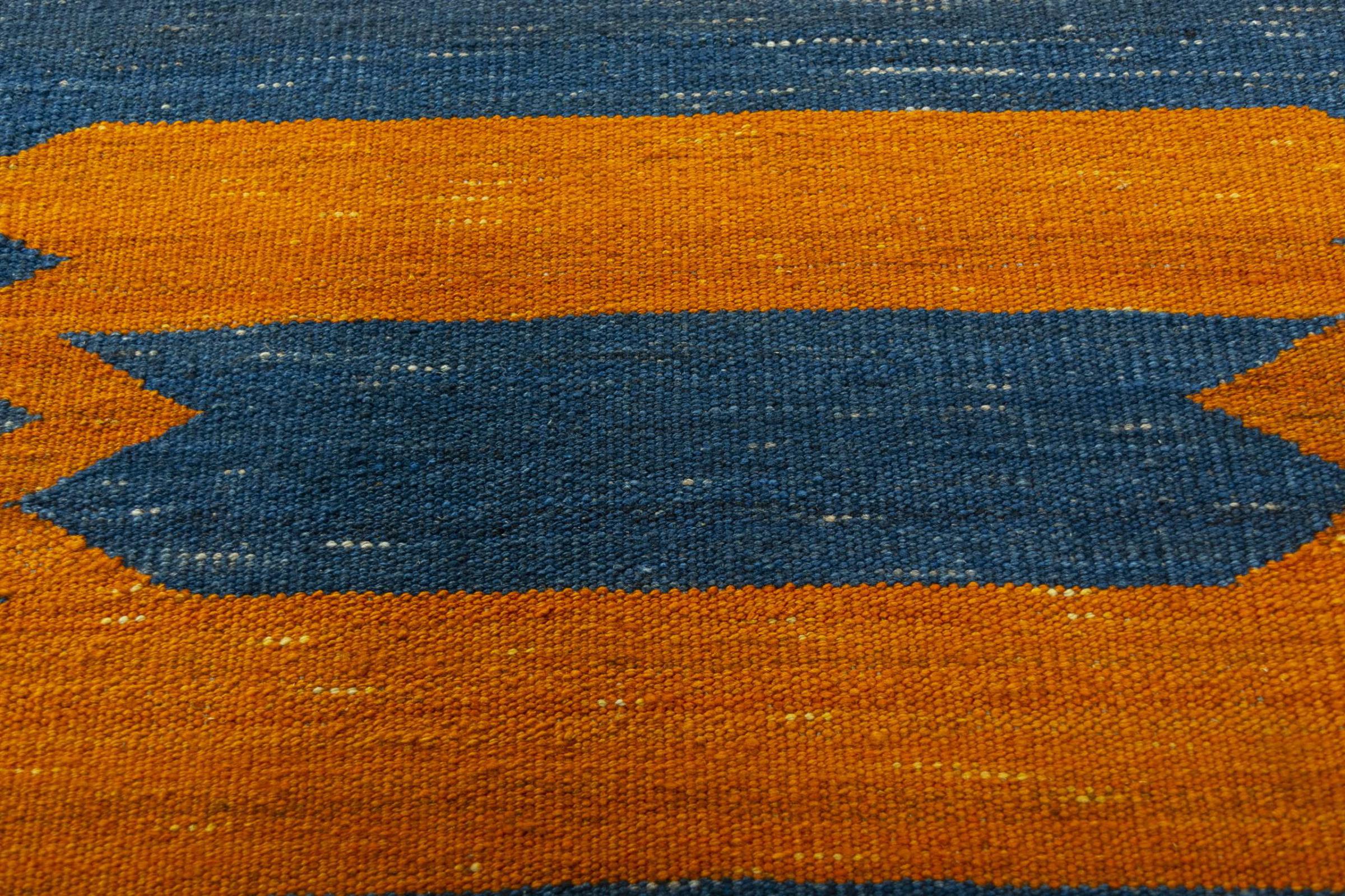 Deze Eylisian is een bijzonder hoogwaardige, moderne, platgeweven designkelim. De handgesponnen/natuurlijke wol werd met de hand geweven volgens een eigentijds ontwerp met behulp van traditionele Perzische techniek. Door zijn robuuste, duurzame kwaliteit is het een populaire, eigentijdse en tijdloze blikvanger in je huis.