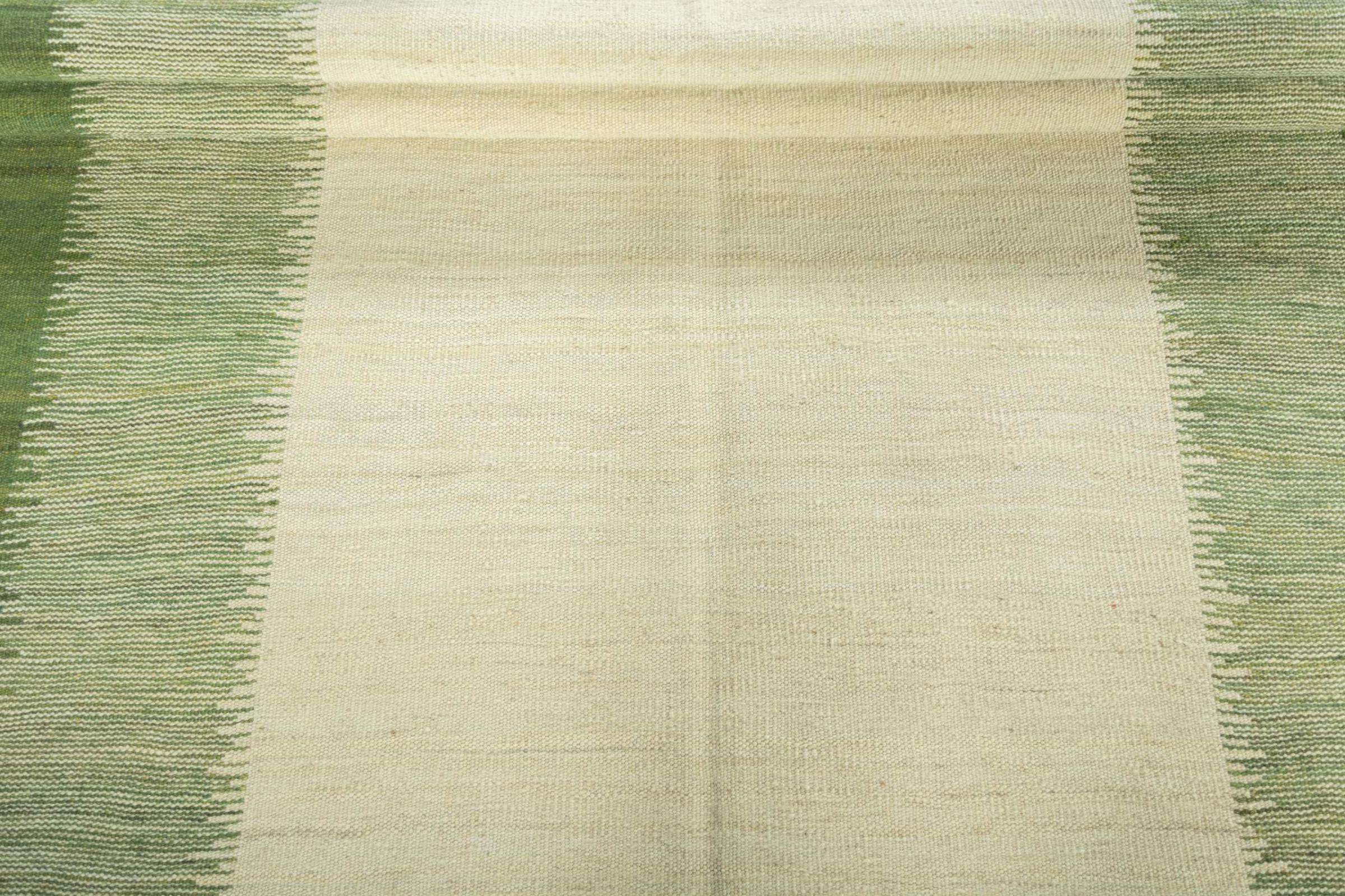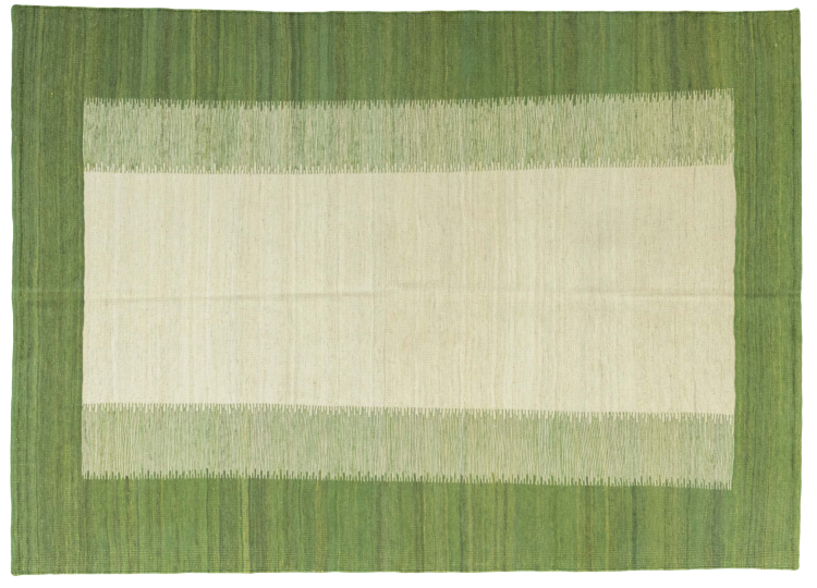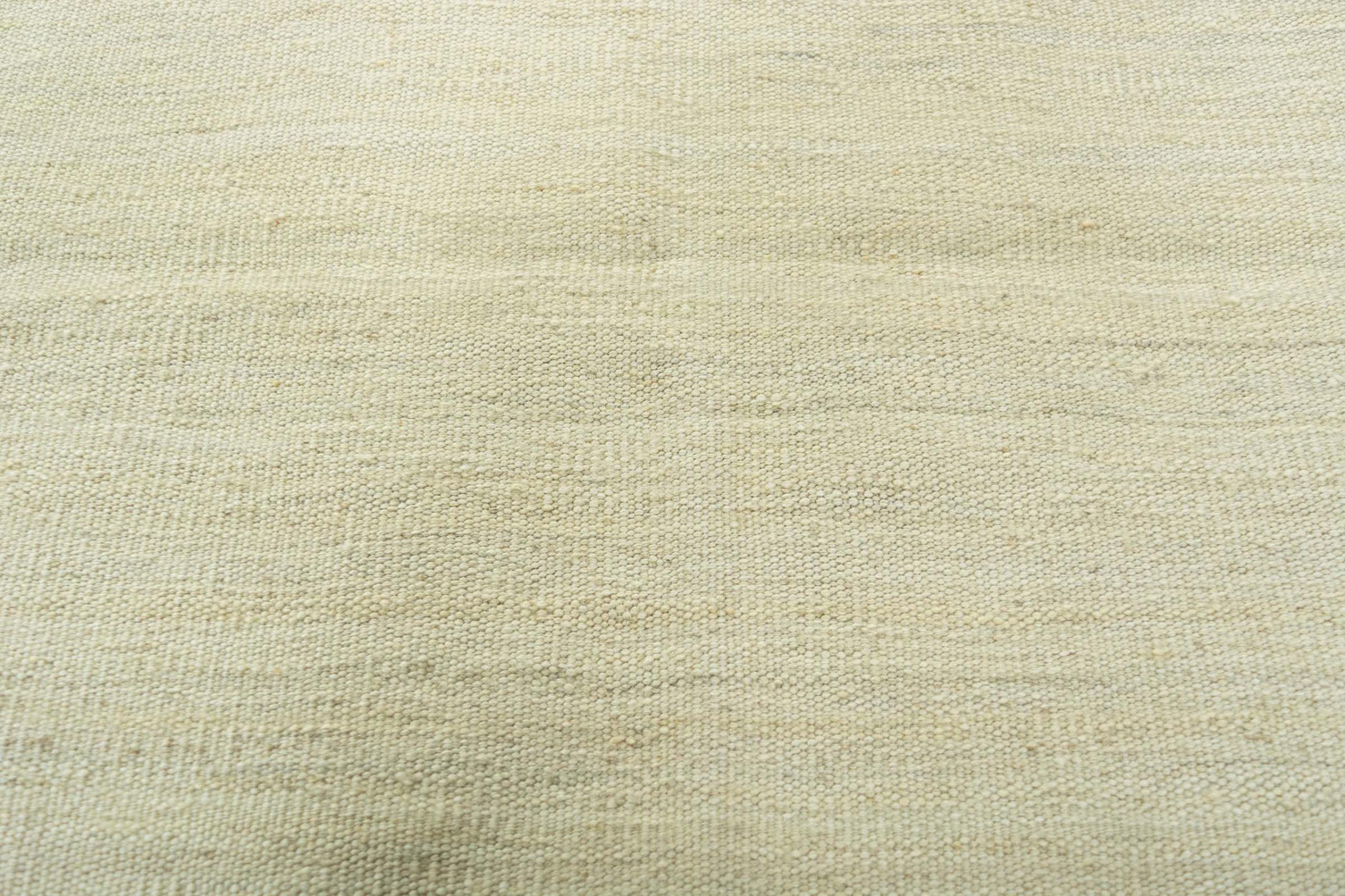 Dit tapijt is met de hand gemaakt op een weefgetouw als plat weefgetouw. Flatweave is de term die wordt gebruikt om tapijten zonder pool te beschrijven. Zoals de naam al belooft, zijn deze tapijten geweven en niet geknoopt. Dit resulteert in een vlak tapijt met een gestructureerd oppervlak. Platweefsels zijn niet zo zacht en meestal dunner dan geknoopte tapijten. Tegelijkertijd zijn ze veel minder complex te vervaardigen en kunnen ze meestal aan beide zijden (voor- en achterkant) worden gelegd. Hun patronen zijn meestal geometrisch, wat wordt bepaald door de stof.