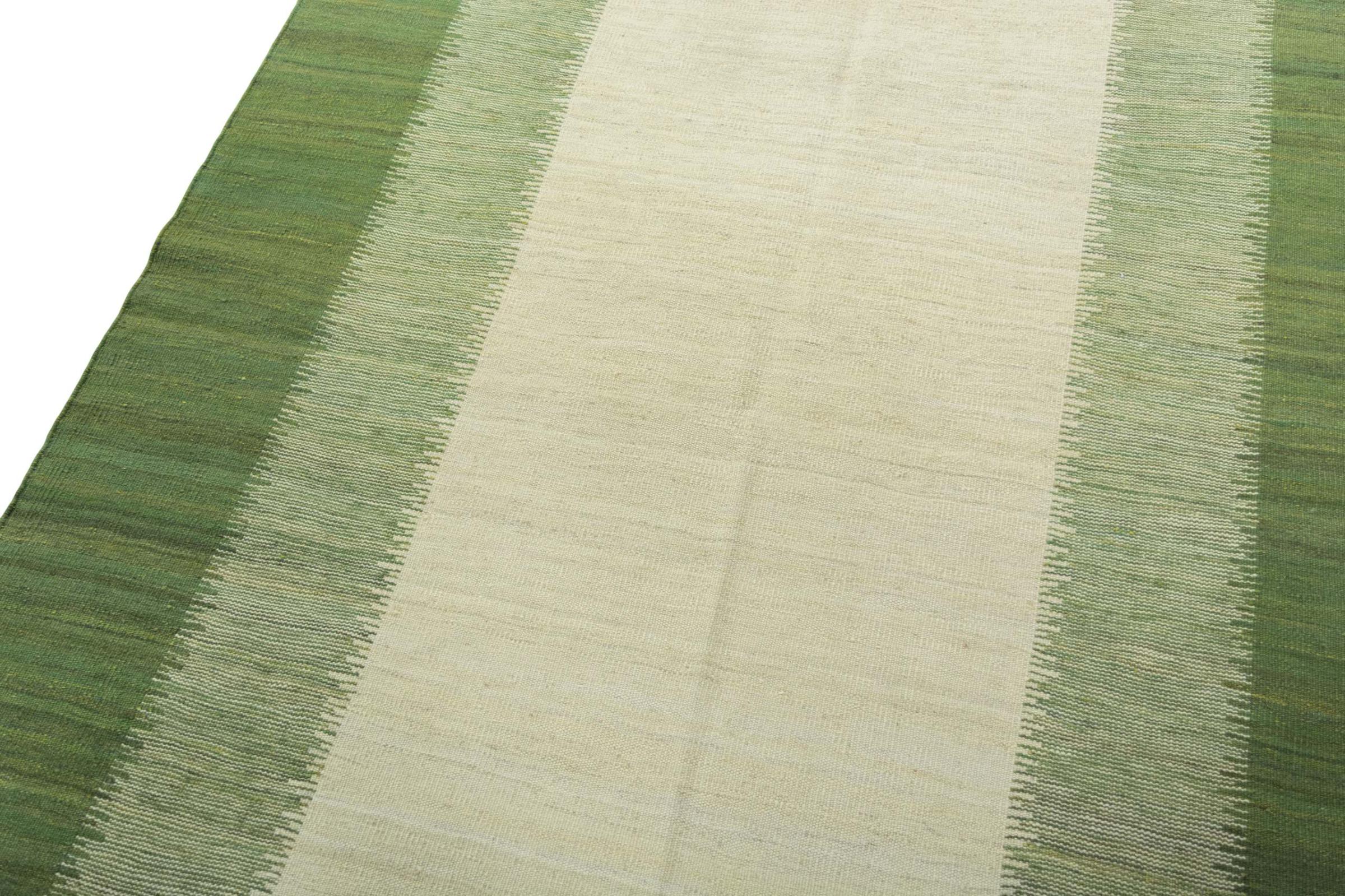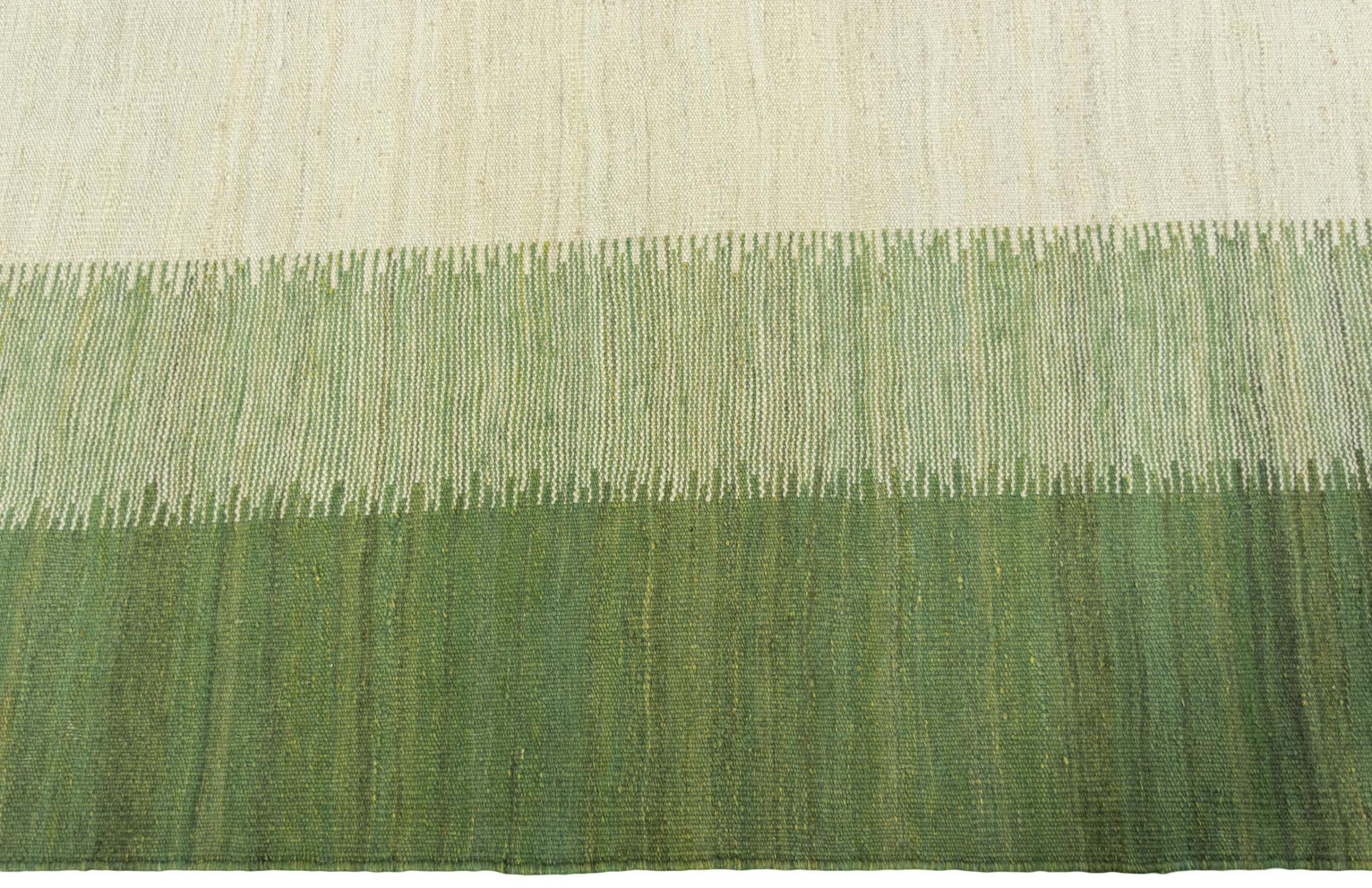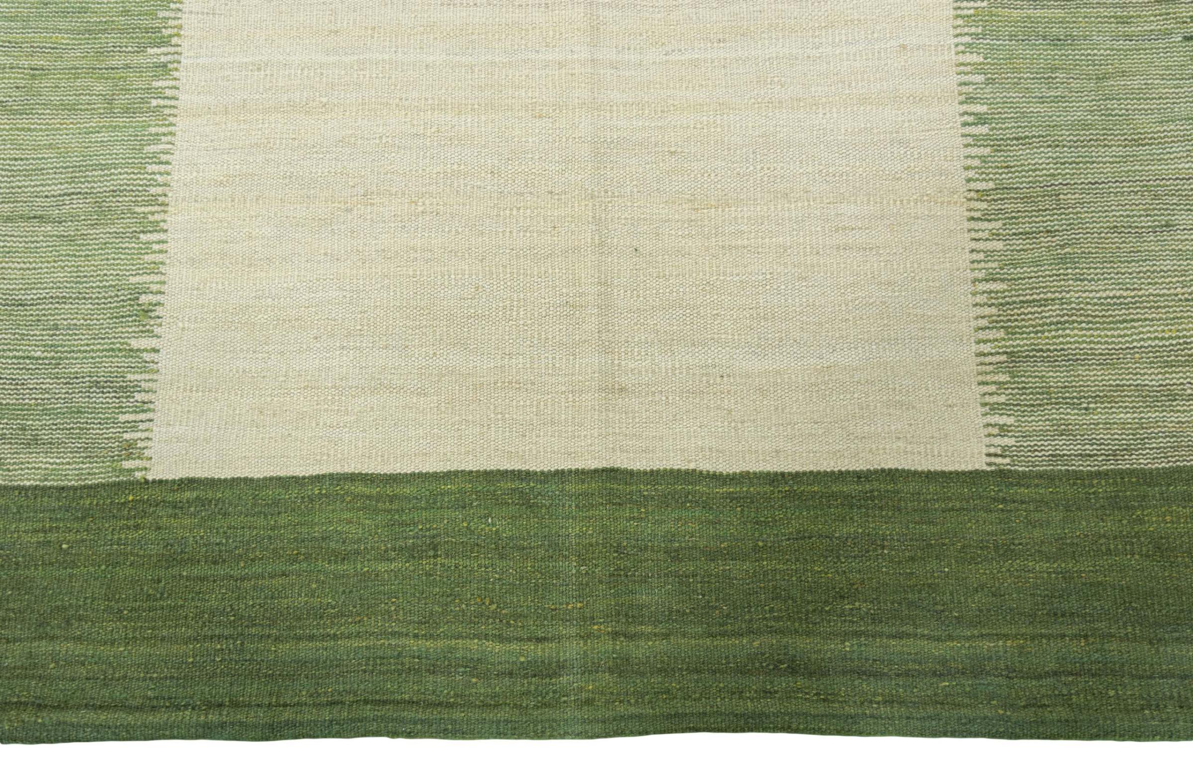 Dit tapijt is met de hand gemaakt op een weefgetouw als plat weefgetouw. Flatweave is de term die wordt gebruikt om tapijten zonder pool te beschrijven. Zoals de naam al belooft, zijn deze tapijten geweven en niet geknoopt. Dit resulteert in een vlak tapijt met een gestructureerd oppervlak. Platweefsels zijn niet zo zacht en meestal dunner dan geknoopte tapijten. Tegelijkertijd zijn ze veel minder complex te vervaardigen en kunnen ze meestal aan beide zijden (voor- en achterkant) worden gelegd. Hun patronen zijn meestal geometrisch, wat wordt bepaald door de stof.