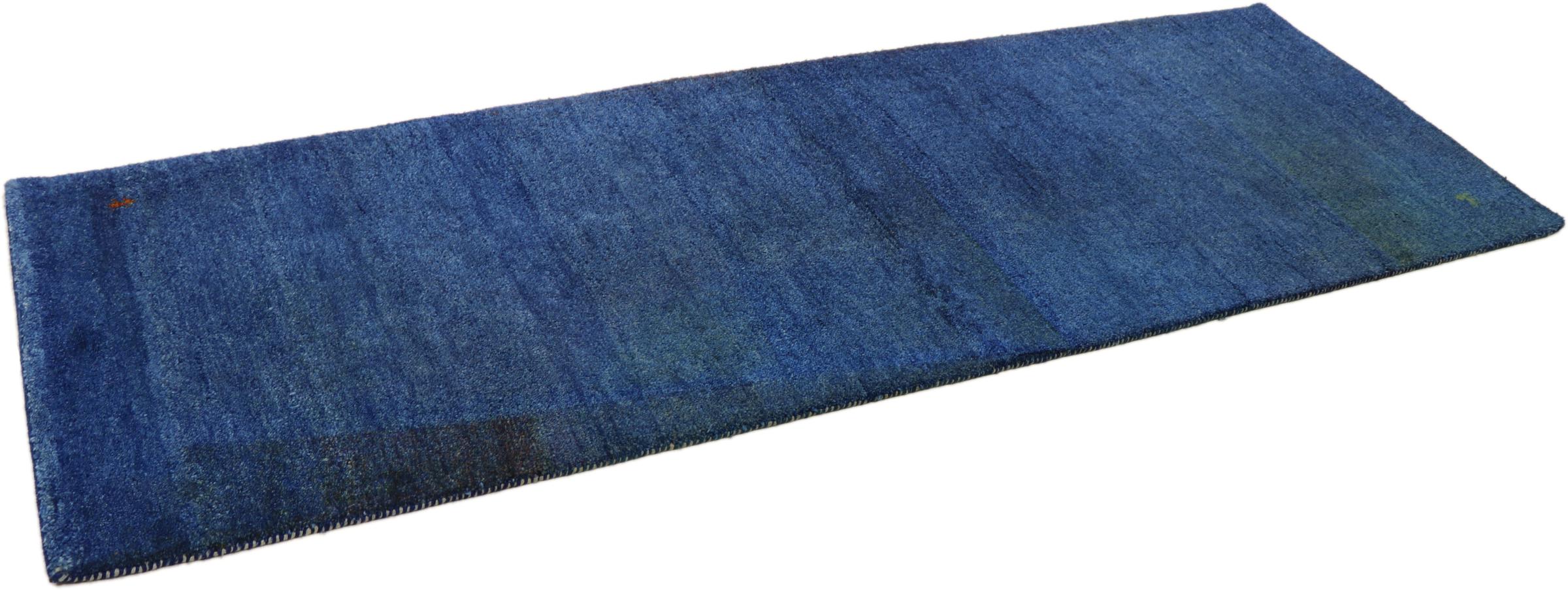 Dit prachtige Gabbeh tapijt werd met de hand geknoopt in India. Indiase Gabbeh tapijten zijn gemaakt van zachte schapenwol, zijn comfortabel aan de voeten en hebben een warmte-isolerende werking. Meestal zijn hun ontwerpen eenvoudig en tijdloos modern. Ze werden geïnspireerd door nomadische volkeren, die zeer eenvoudige motieven uit hun omgeving in de tapijten lieten vloeien. Indiase Gabbeh-tapijten komen niet helemaal in de buurt van de kwaliteit van een Perzische Gabbeh, maar hebben een zeer goede prijs-kwaliteitverhouding. Daarom zijn ze perfect geschikt als handgeknoopte beginnerstapijten.