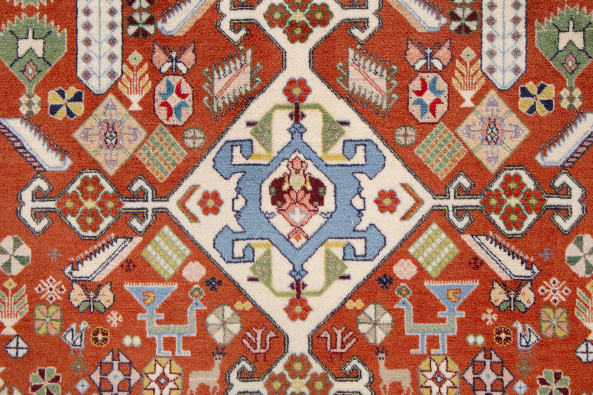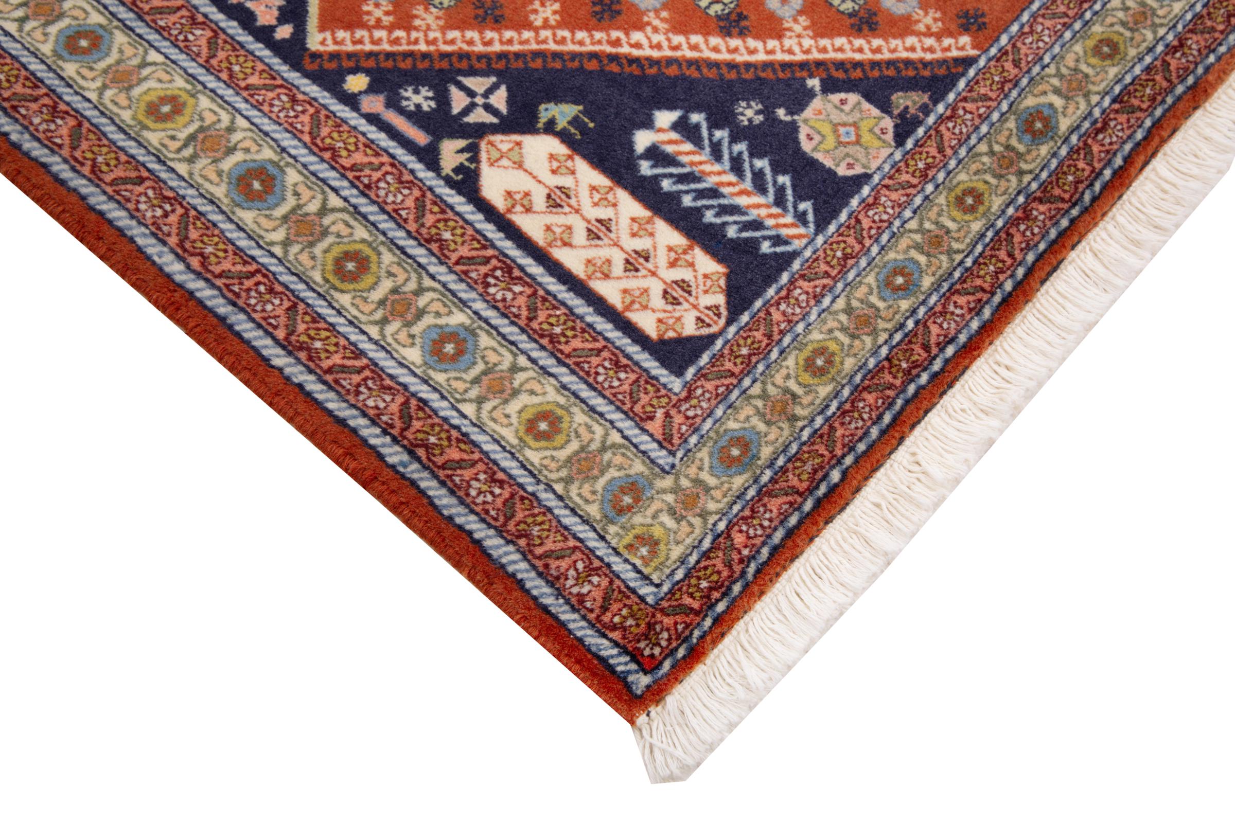 Dit tapijt behoort tot de dorps- en nomadentapijten uit Iran, het vroegere Perzië. Dit type tapijt wordt met de hand geknoopt in kleinere steden en dorpen in de oude traditie. Zelfs nomaden knopen nog steeds Perzische tapijten in de open lucht. De tapijten worden geknoopt zonder patroon en volledig vanaf de kop. Ze worden gekenmerkt door klassieke ornamenten, die in rechte en geometrische patronen zijn gerangschikt. Dankzij hun cultureel-traditionele oorsprong hebben deze tapijten een uniek karakter dat het oude Perzië belichaamt.