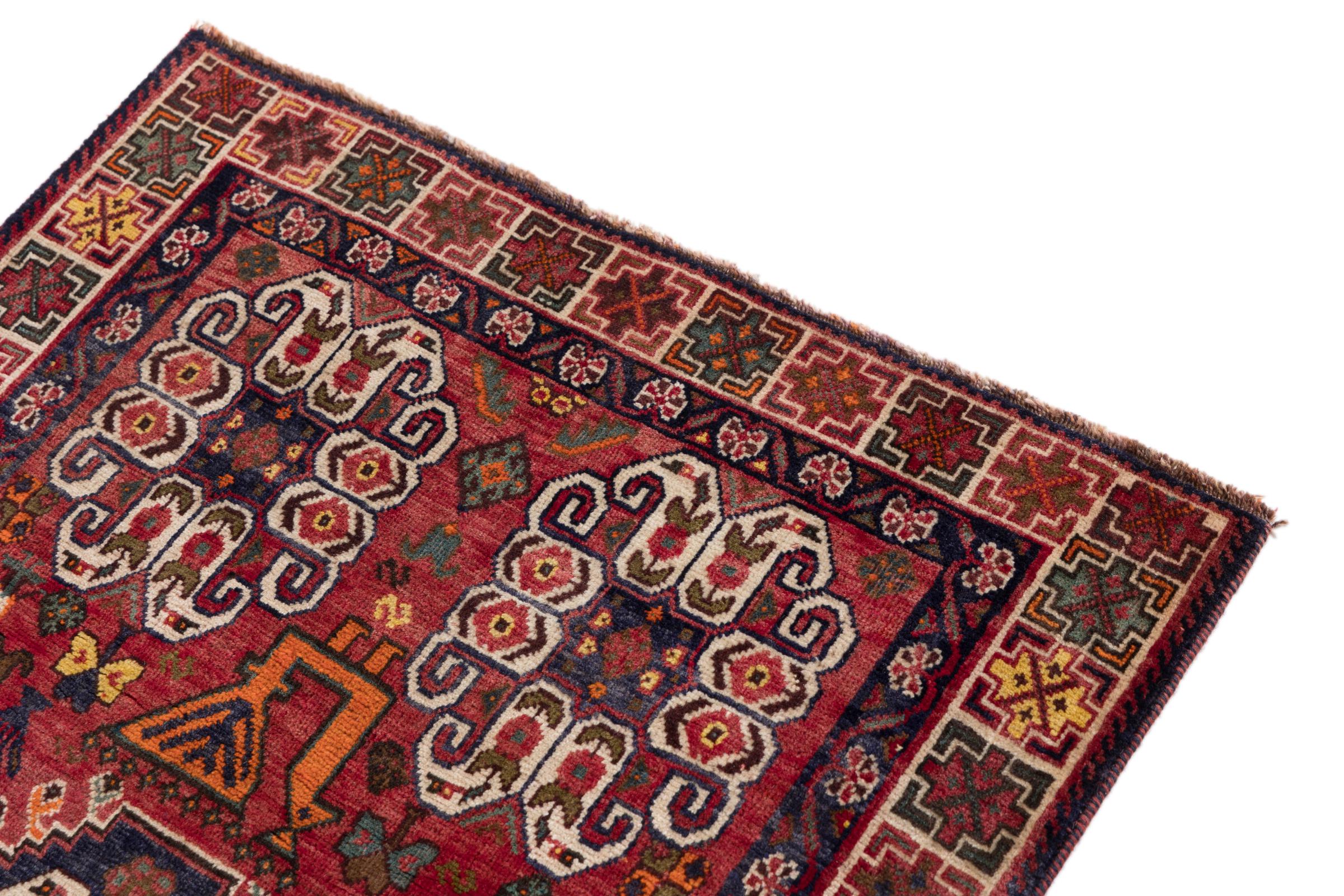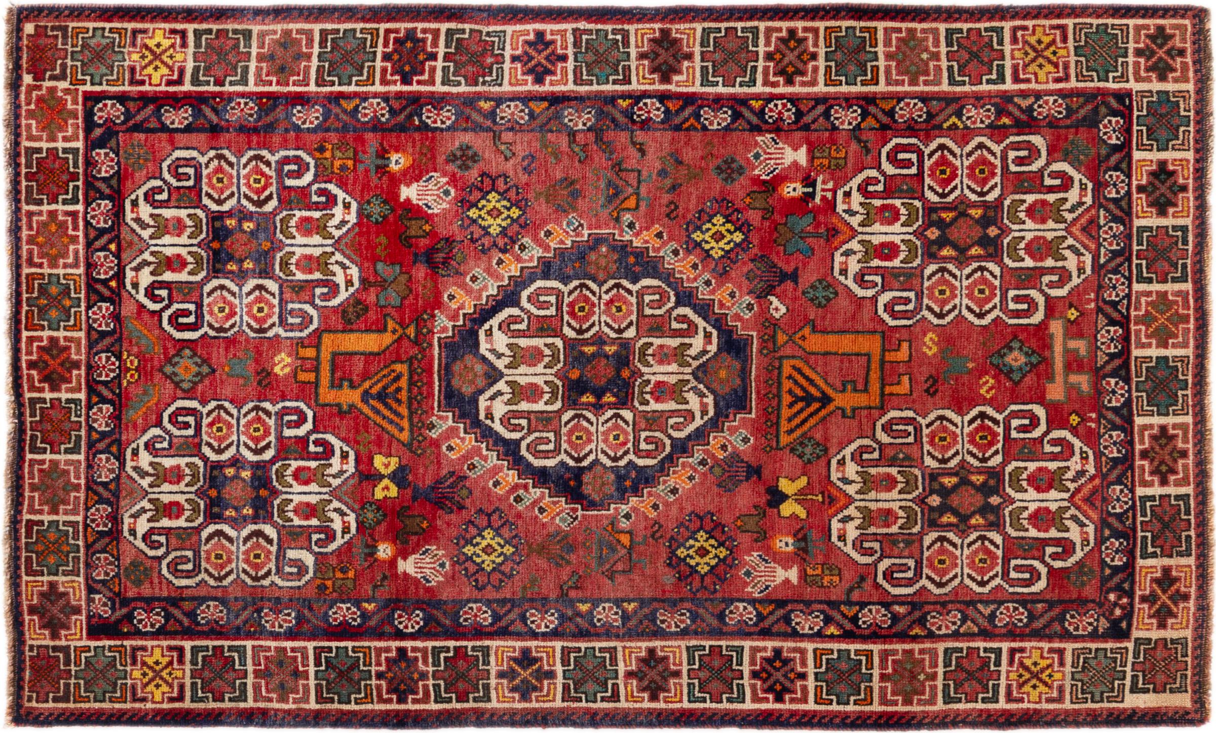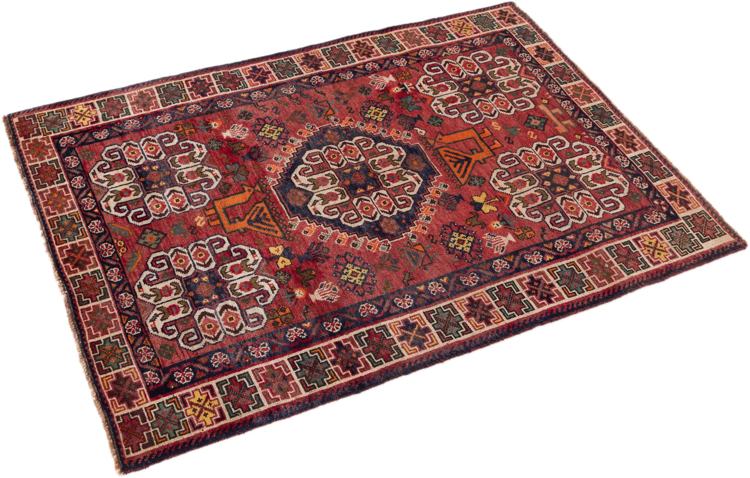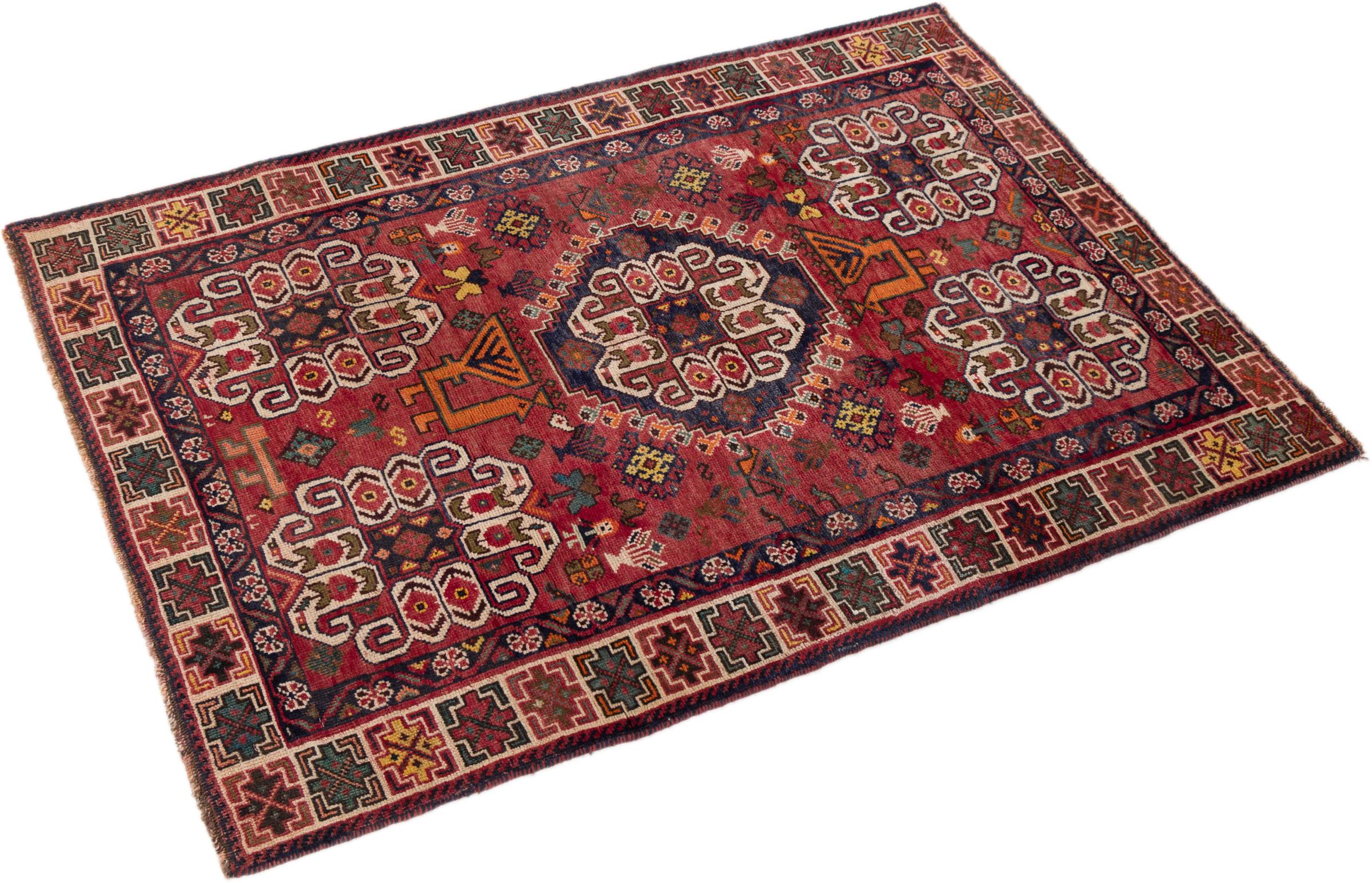 Tapijt ID: 29587200859 Grootte: 155x93 cm Dikte: ap. 12 mm Knoopdichtheid: 200 000 - 250 000 / m² Verwerking: Handgeknoopte Pool: Hand gesponnen wol Schering: Wol Oorsprong: Perzië / Iran Leeftijd: Oud, 30-50 jaar Gewicht: ap. 4 kg Ook wel bekend als Qashqai, Gaschgai, Gashghai, Kashgai Op voorraad: Uniek - Nog maar 1 op voorraad