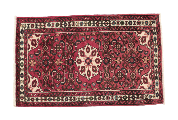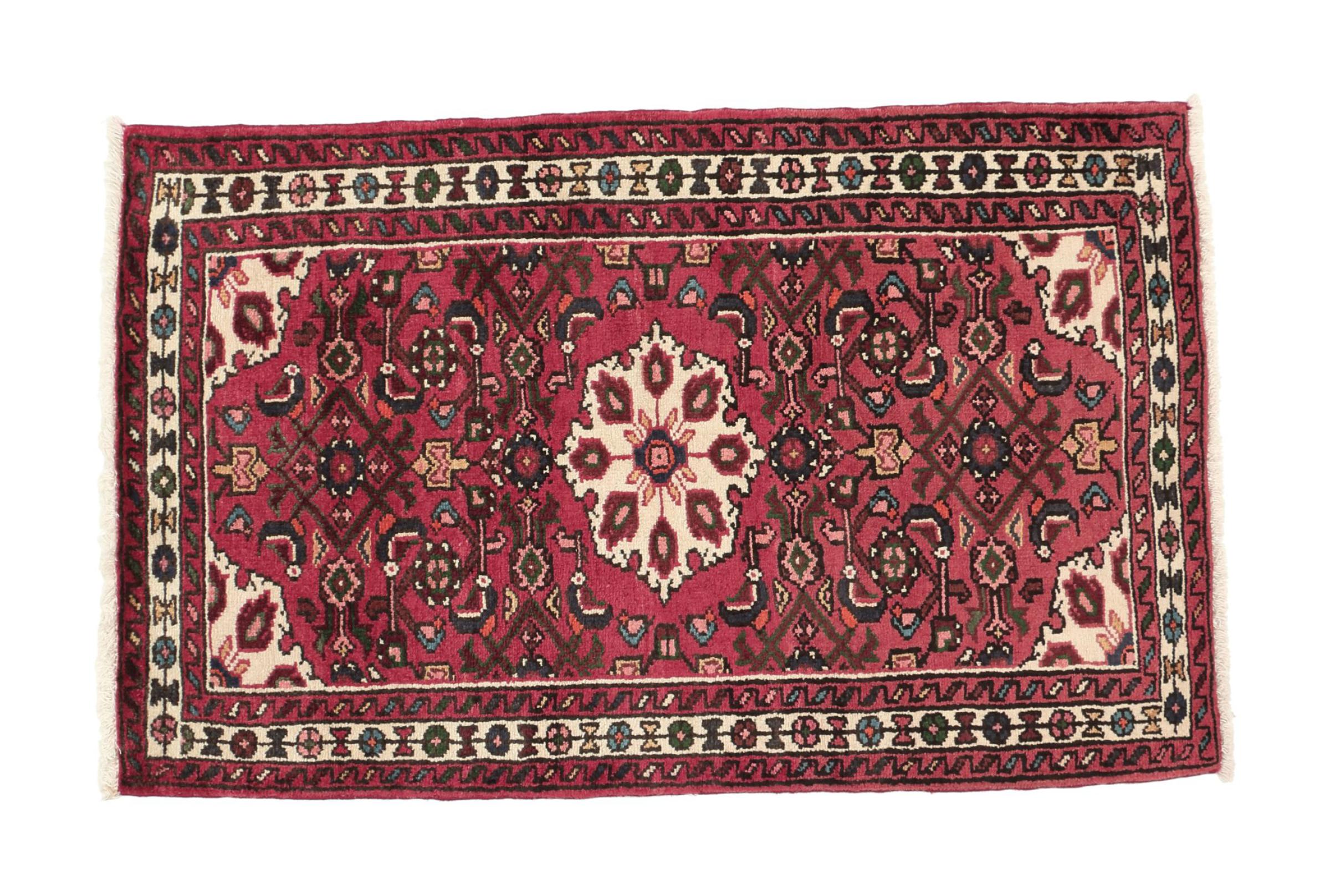 Tapijt ID: 309544003987094 Grootte: 126x78 cm Dikte: ap. 8 mm Knoopdichtheid: 128 000 - 160 000 / m² Verwerking: Handgeknoopte Pool: Hand gesponnen wol Schering: Katoen Oorsprong: Perzië / Iran Leeftijd: Nieuw Gewicht: ap. 3 kg Ook wel bekend als Huseinabad Op voorraad: Uniek - Nog maar 1 op voorraad