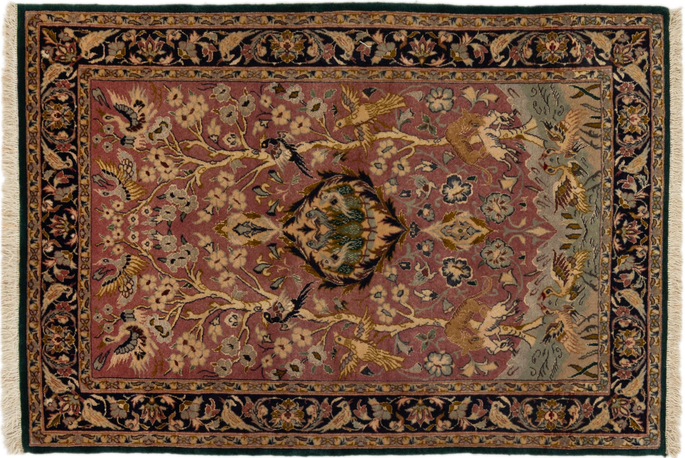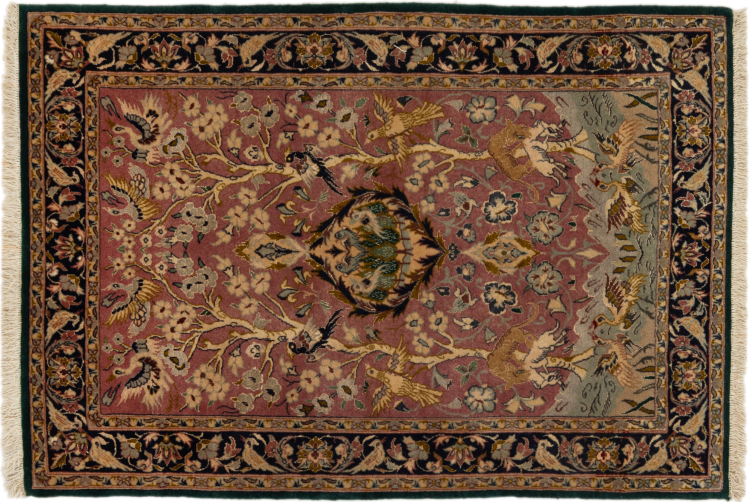 Tapijt ID: 297036006178655 Grootte: 104x72 cm Dikte: ap. 8 mm Knoopdichtheid: 800 000 / m² Verwerking: Handgeknoopte Pool: Wol Schering: Zijde Oorsprong: Perzië / Iran Leeftijd: 20-30 jaar (Nieuw) Gewicht: ap. 2 kg Op voorraad: Uniek - Nog maar 1 op voorraad