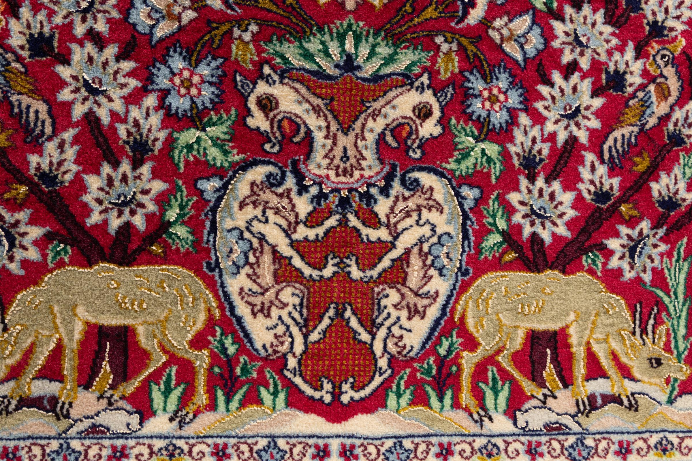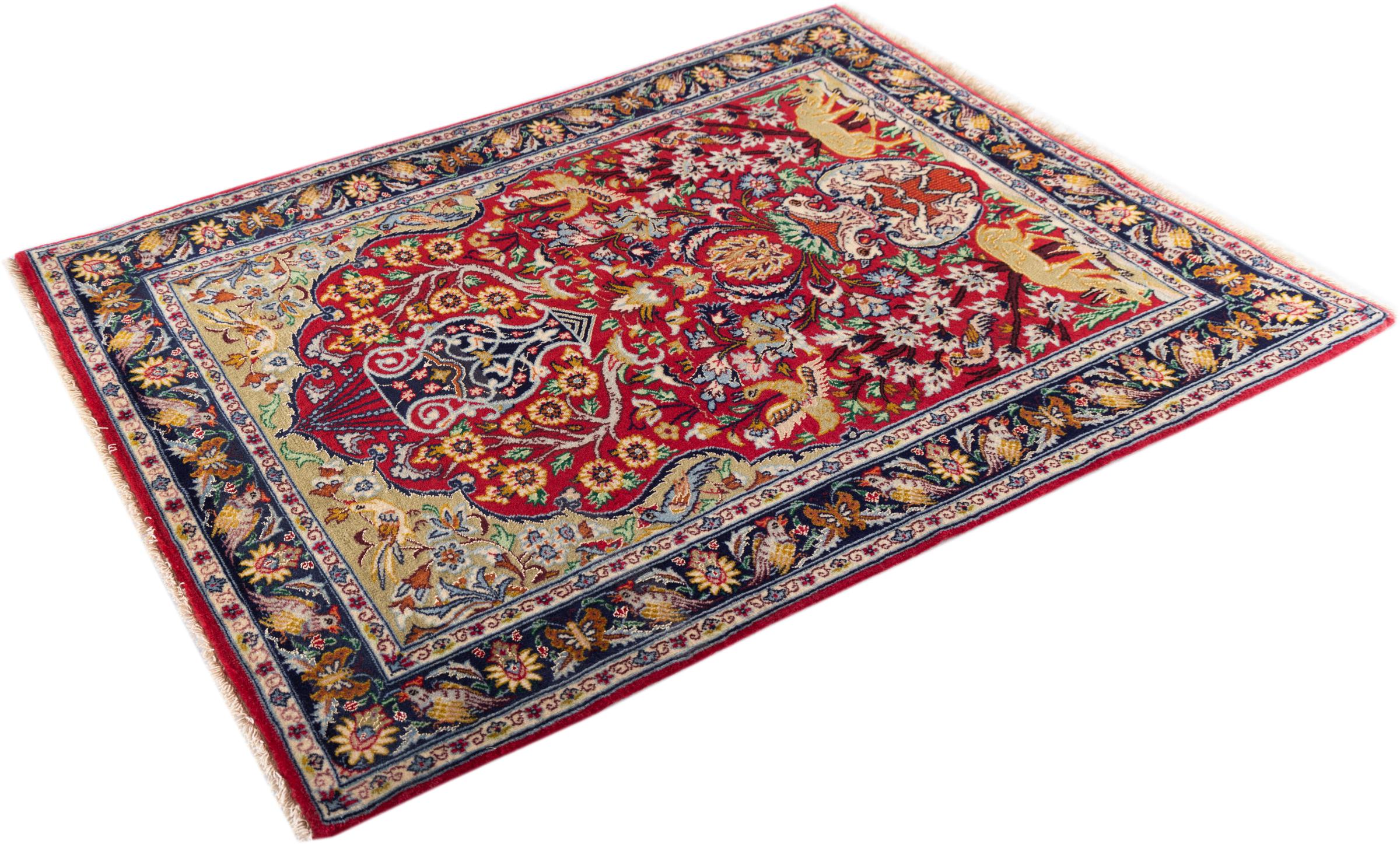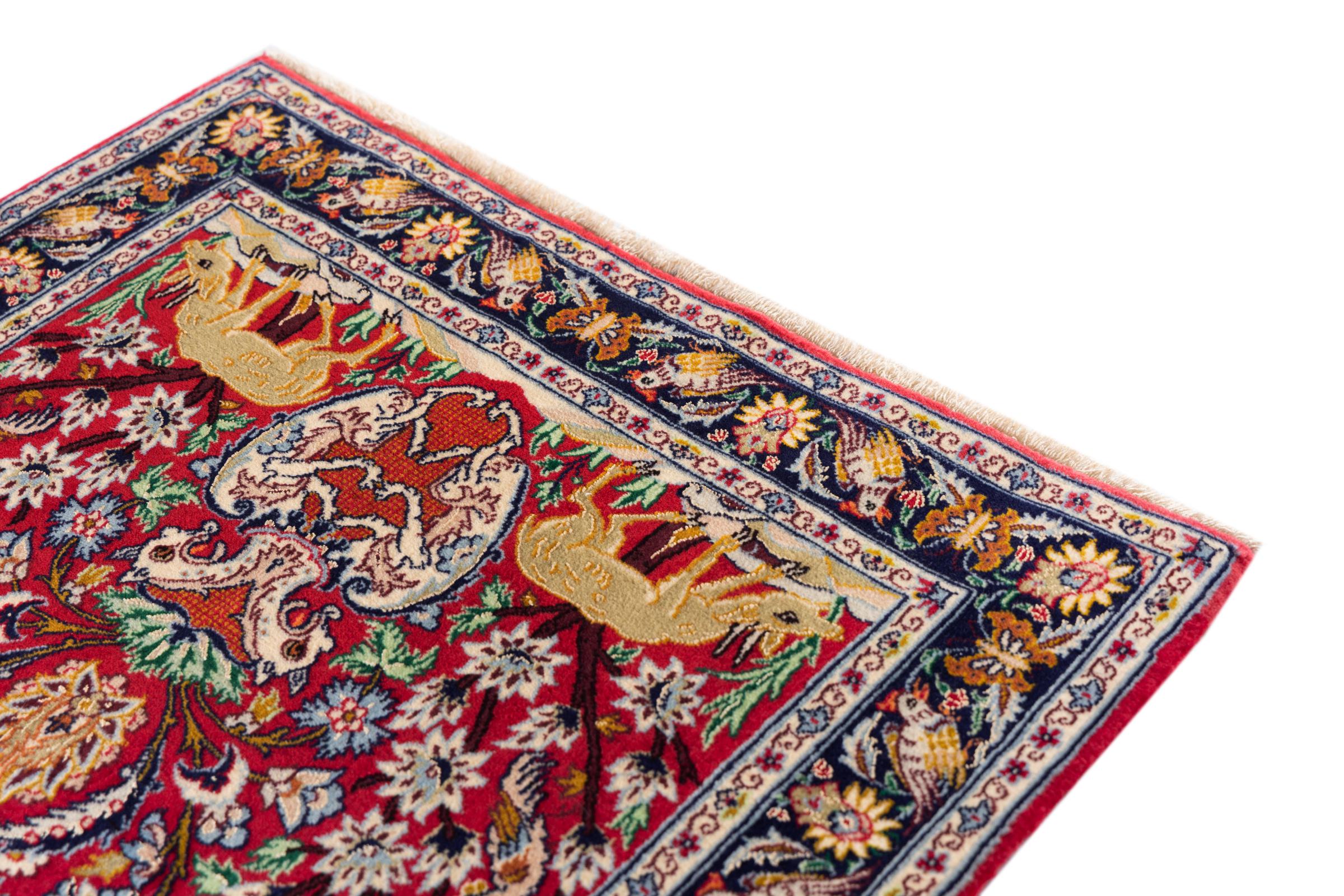 Dit Isfahan tapijt is gemaakt volgens de traditionele en hoogste knoopkunst. Het is meesterlijk vervaardigd en versierd met fascinerende ornamenten. Het Perzische tapijt werd met de hand geknoopt in Isfahan, waarschijnlijk de mooiste stad van Iran, van het fijnste garen. Isfahan tapijten behoren tot de meest waardevolle Perzische tapijten en kunnen een echte investering zijn.