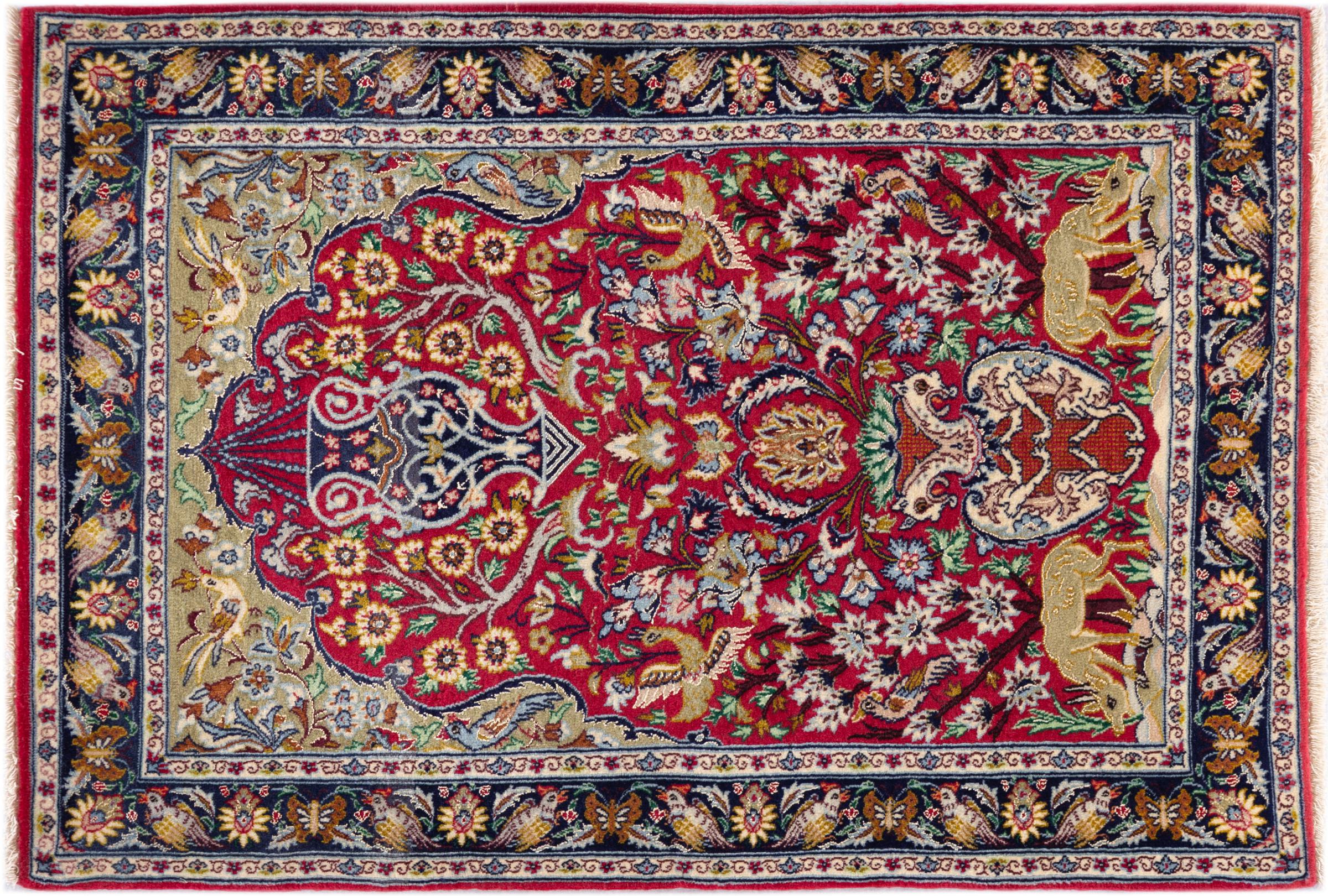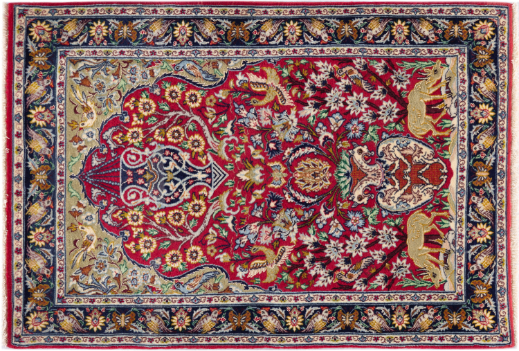 Tapijt ID: 29791300807 Grootte: 105x70 cm Dikte: ap. 6 mm Knoopdichtheid: 810 000 / m² Verwerking: Handgeknoopte Pool: Wol met zijde Schering: Zijde Oorsprong: Perzië / Iran Leeftijd: Nieuw Gewicht: ap. 2 kg Op voorraad: Uniek - Nog maar 1 op voorraad
