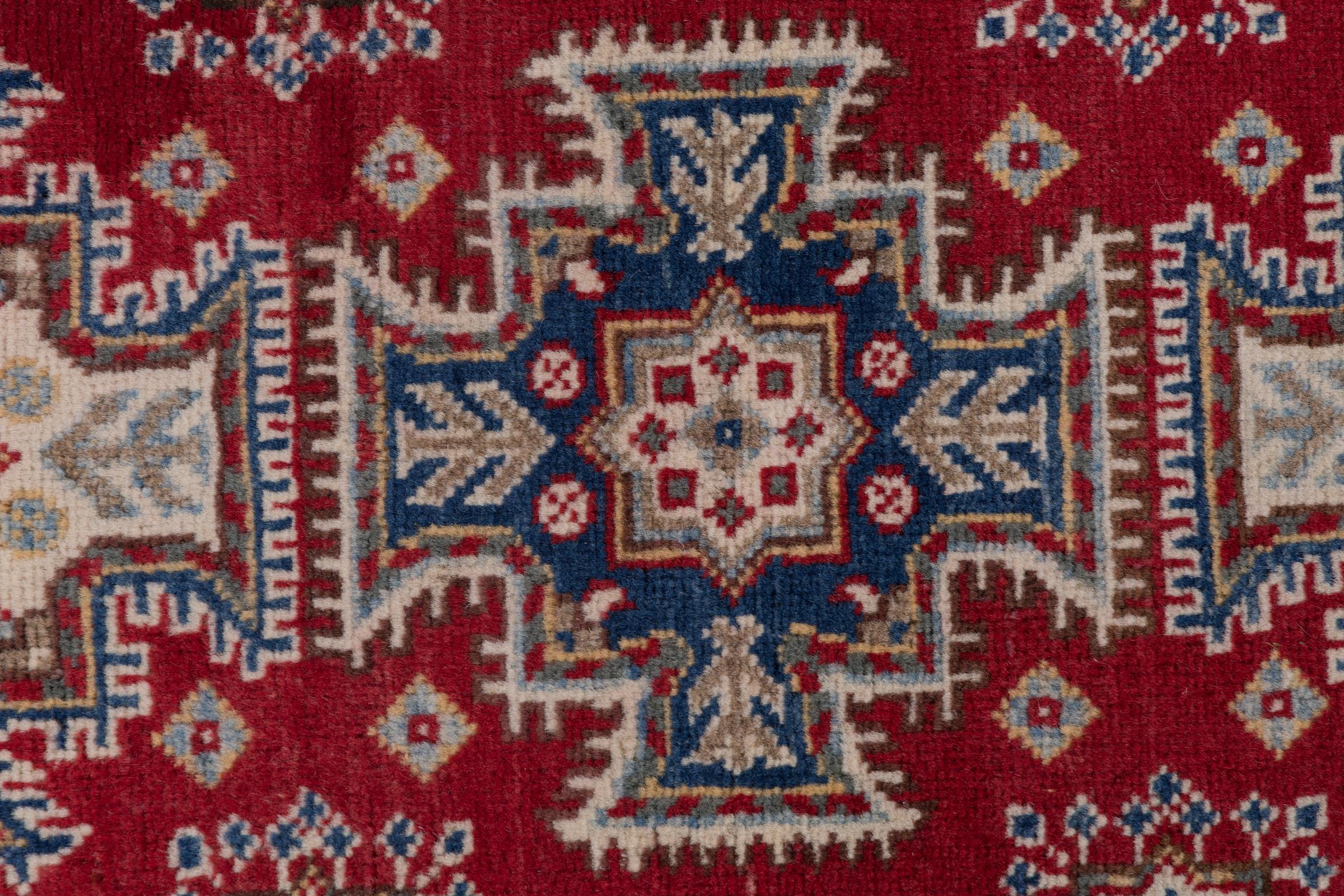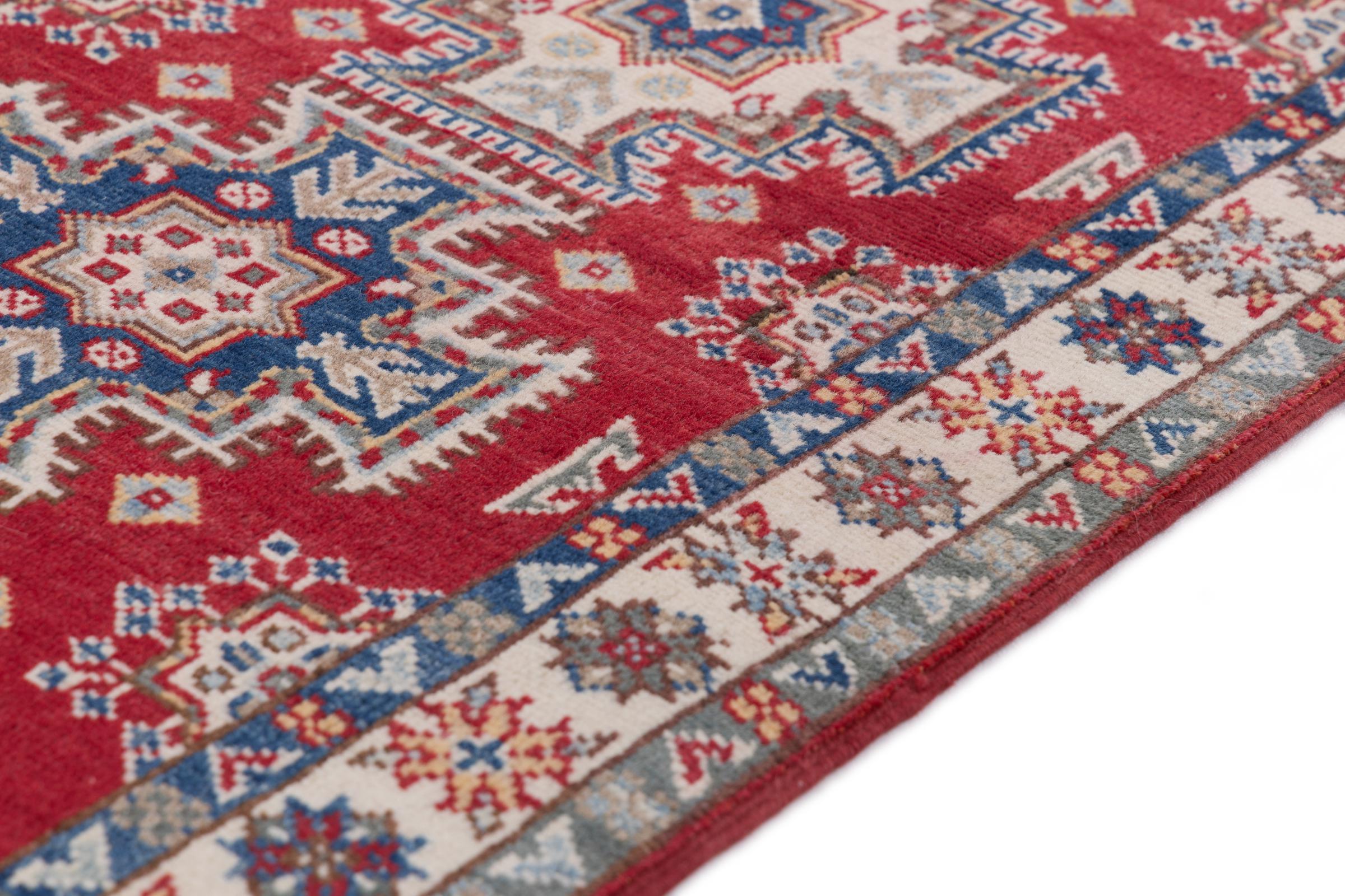 Kazak-vloerkleden zijn duurzame, levendige wollen vloerkleden die bekend staan om hun unieke geometrische patronen, uitgebalanceerde kleuren en uitzonderlijk vakmanschap. Ze zullen een boeiende en cultureel rijke sfeer in uw ruimte creëren. Oorspronkelijk afkomstig uit de Kaukasus en een van de oudste soorten tapijten, worden ze nu voornamelijk gemaakt door Kazachen in Afghanistan en Pakistan. Een antiek Kazachs tapijt kan zeer waardevol zijn voor verzamelaars.