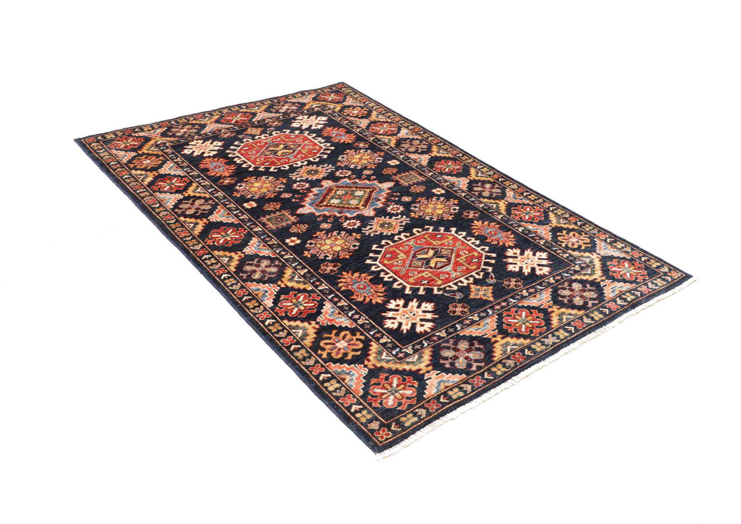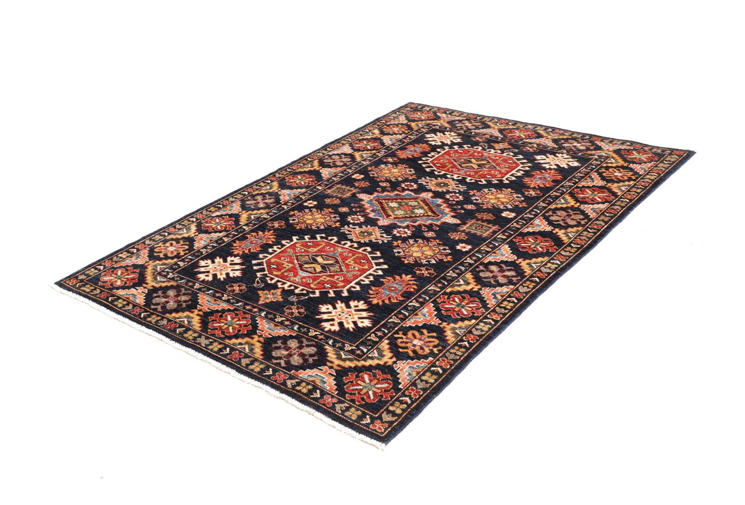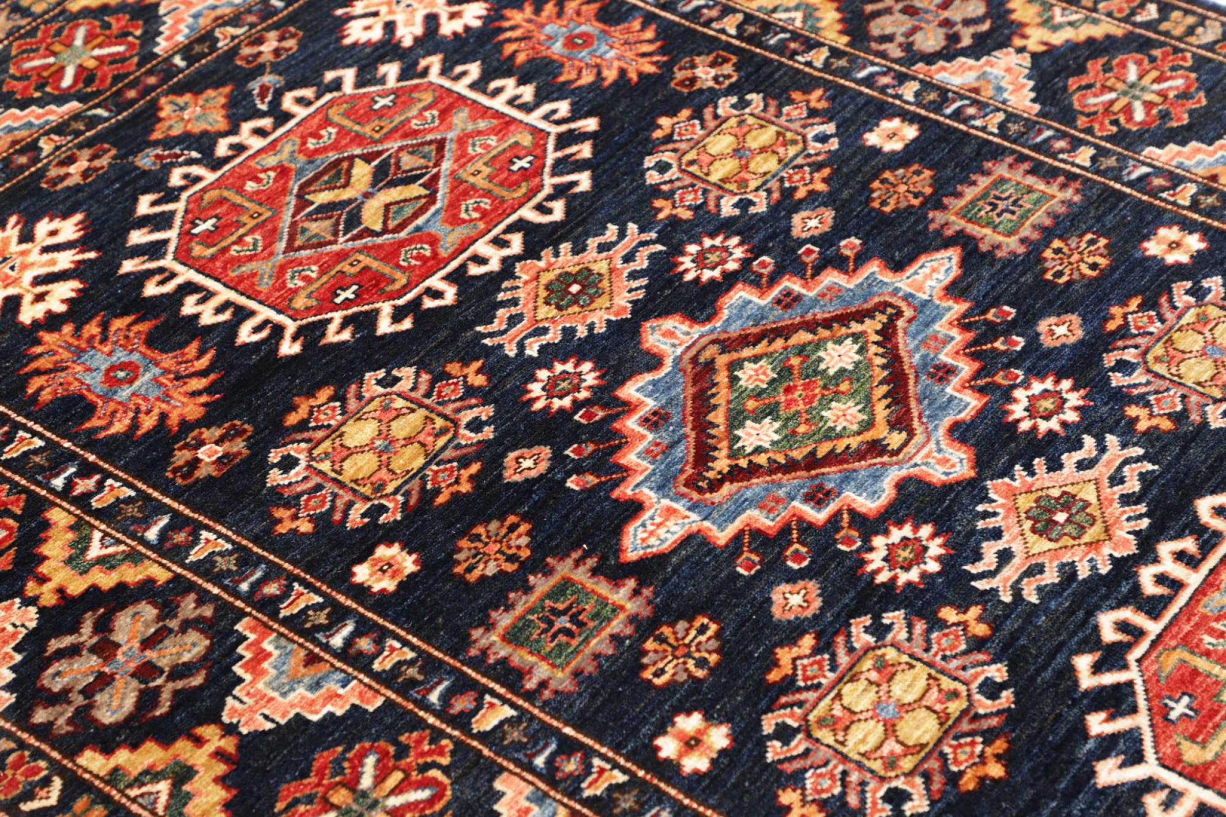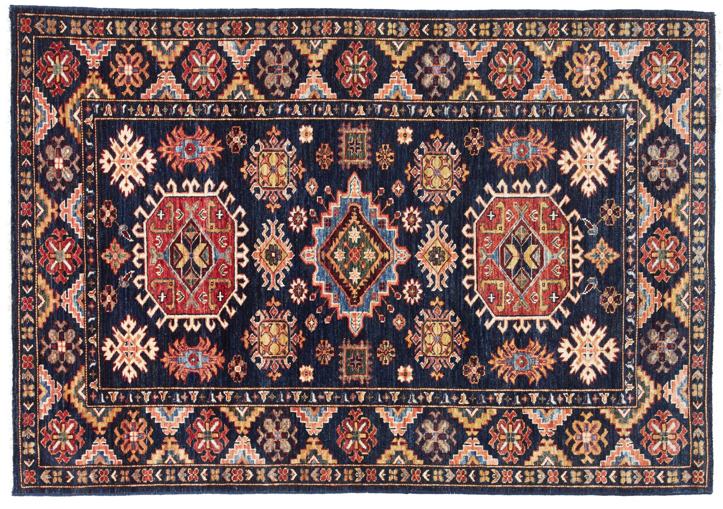 Kazak-vloerkleden zijn duurzame, levendige wollen vloerkleden die bekend staan om hun unieke geometrische patronen, uitgebalanceerde kleuren en uitzonderlijk vakmanschap. Ze zullen een boeiende en cultureel rijke sfeer in uw ruimte creëren. Oorspronkelijk afkomstig uit de Kaukasus en een van de oudste soorten tapijten, worden ze nu voornamelijk gemaakt door Kazachen in Afghanistan en Pakistan. Een antiek Kazachs tapijt kan zeer waardevol zijn voor verzamelaars.