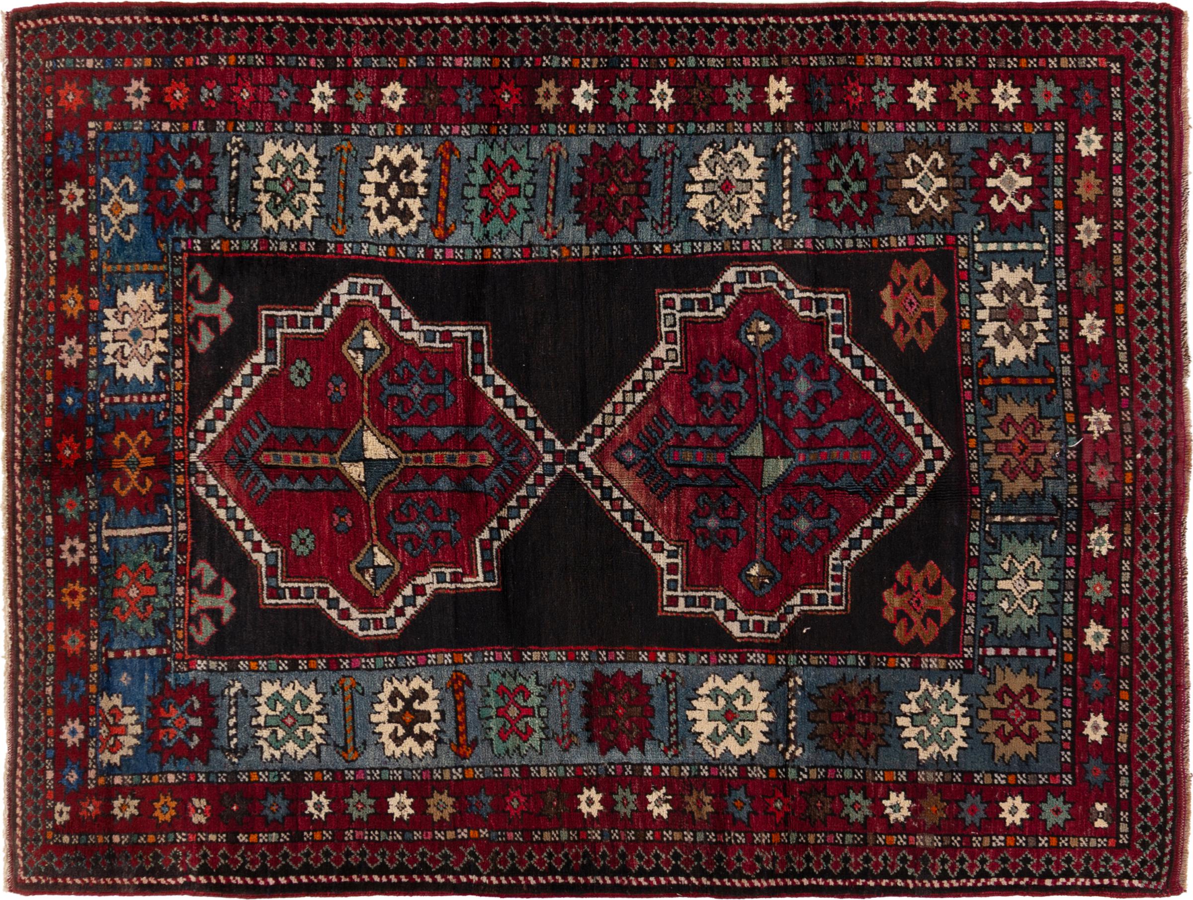 Tapijt ID: 3070530023121 Grootte: 188x130 cm Dikte: ap. 5 mm Knoopdichtheid: 200 000 - 250 000 / m² Verwerking: Handgeknoopte Pool: Wol Schering: Wol Oorsprong: Azerbaijan / Rusland Leeftijd: Oud/Semi antiek, boven 50 jaar Gewicht: ap. 6 kg Op voorraad: Uniek - Nog maar 1 op voorraad