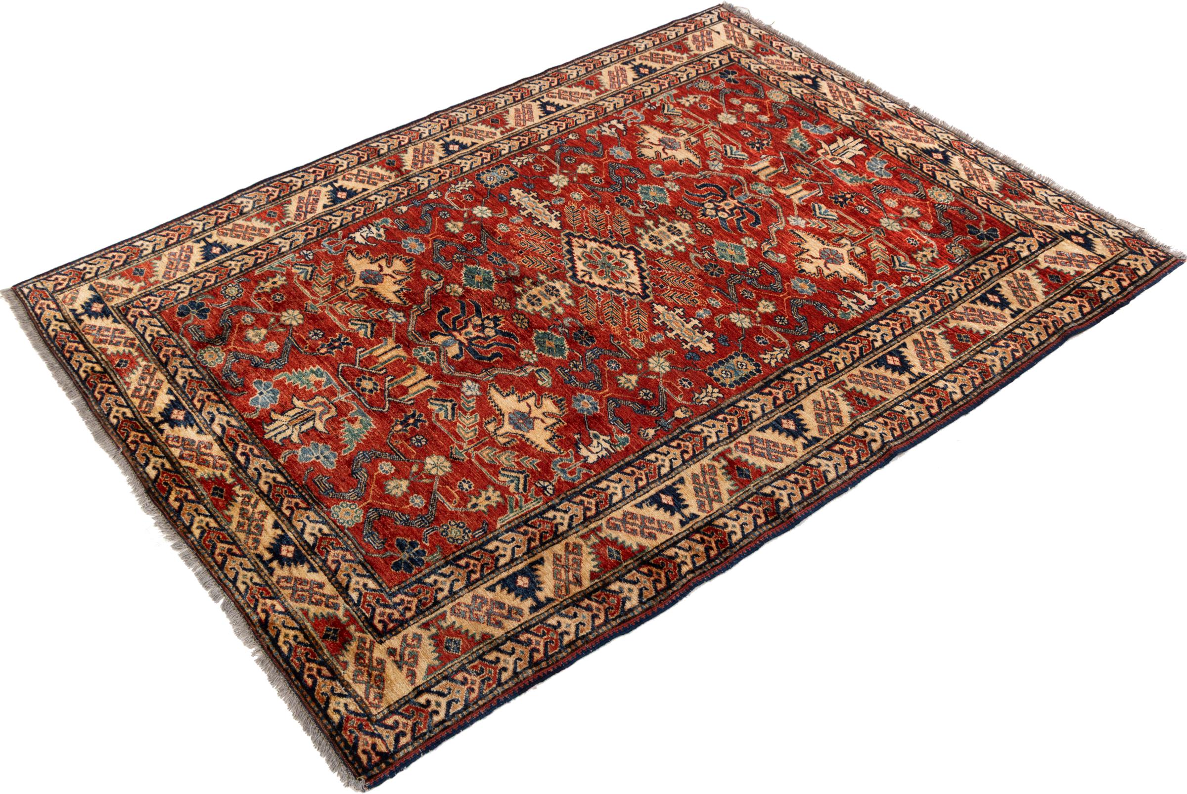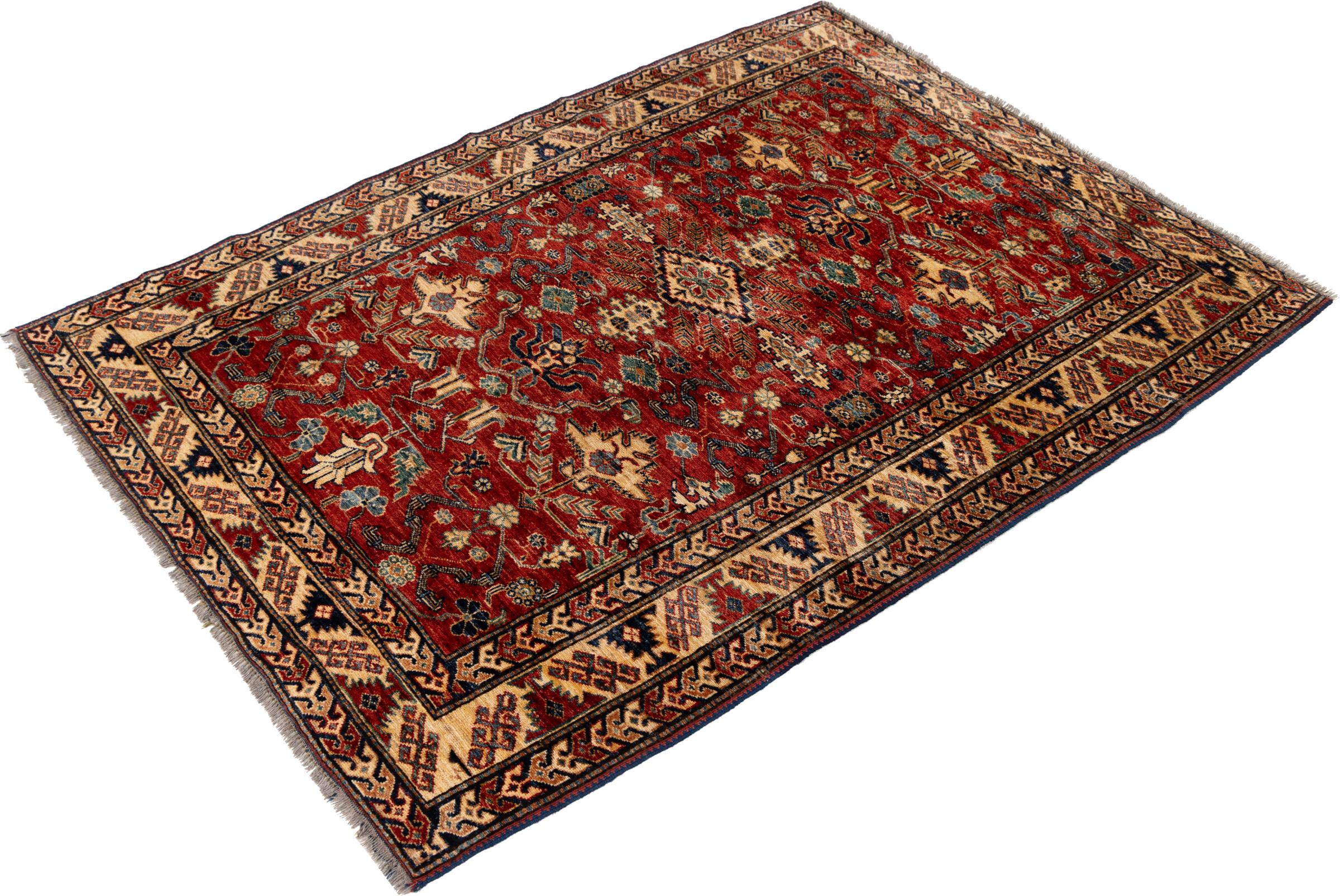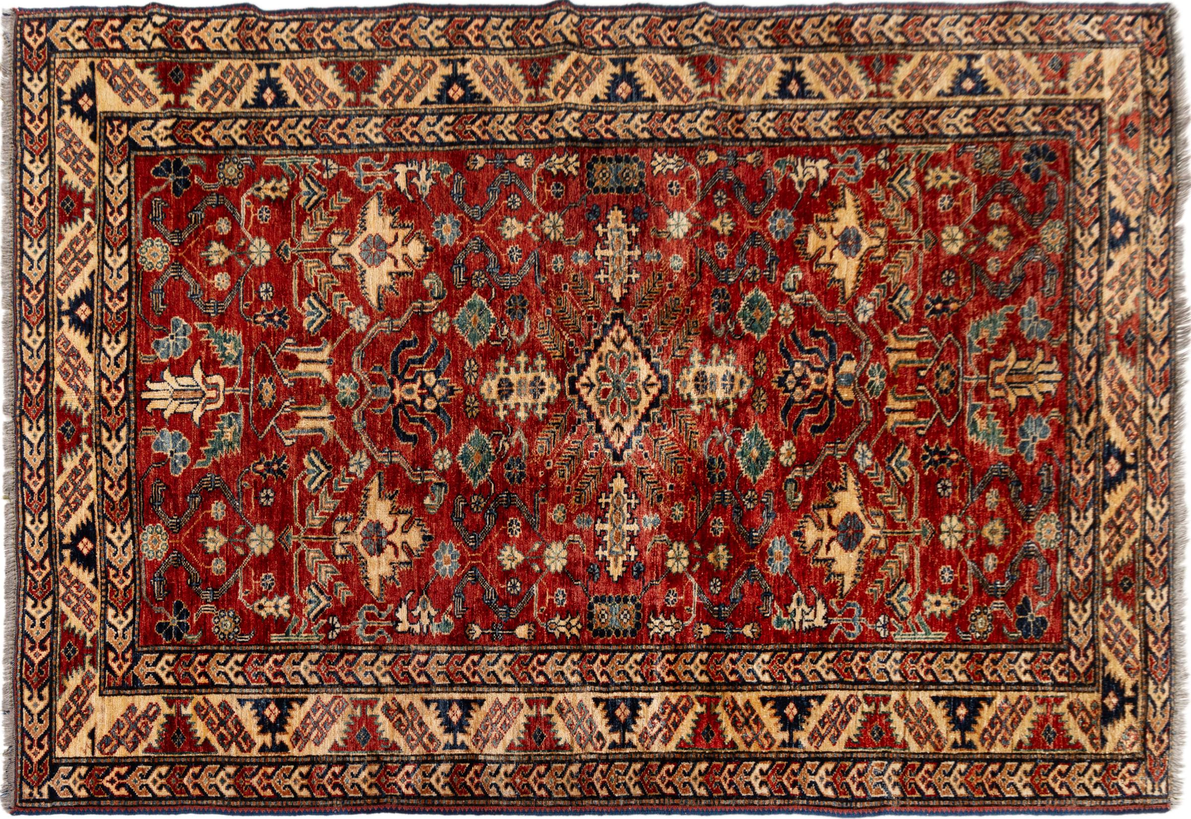 Kazak-vloerkleden zijn duurzame, levendige wollen vloerkleden die bekend staan om hun unieke geometrische patronen, uitgebalanceerde kleuren en uitzonderlijk vakmanschap. Ze zullen een boeiende en cultureel rijke sfeer in uw ruimte creëren. Oorspronkelijk afkomstig uit de Kaukasus en een van de oudste soorten tapijten, worden ze nu voornamelijk gemaakt door Kazachen in Afghanistan en Pakistan. Een antiek Kazachs tapijt kan zeer waardevol zijn voor verzamelaars.