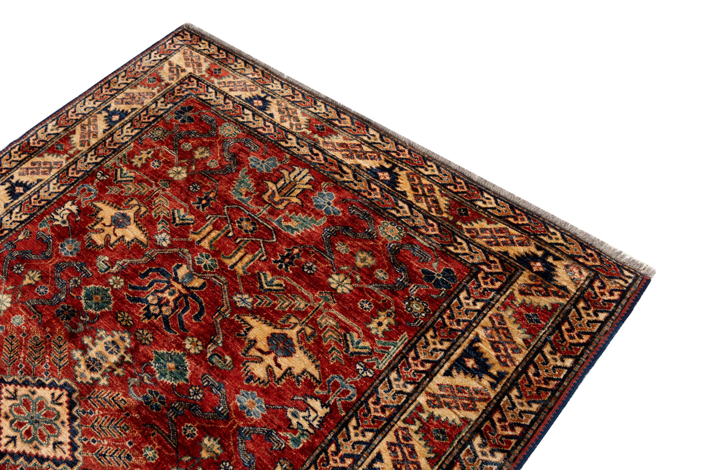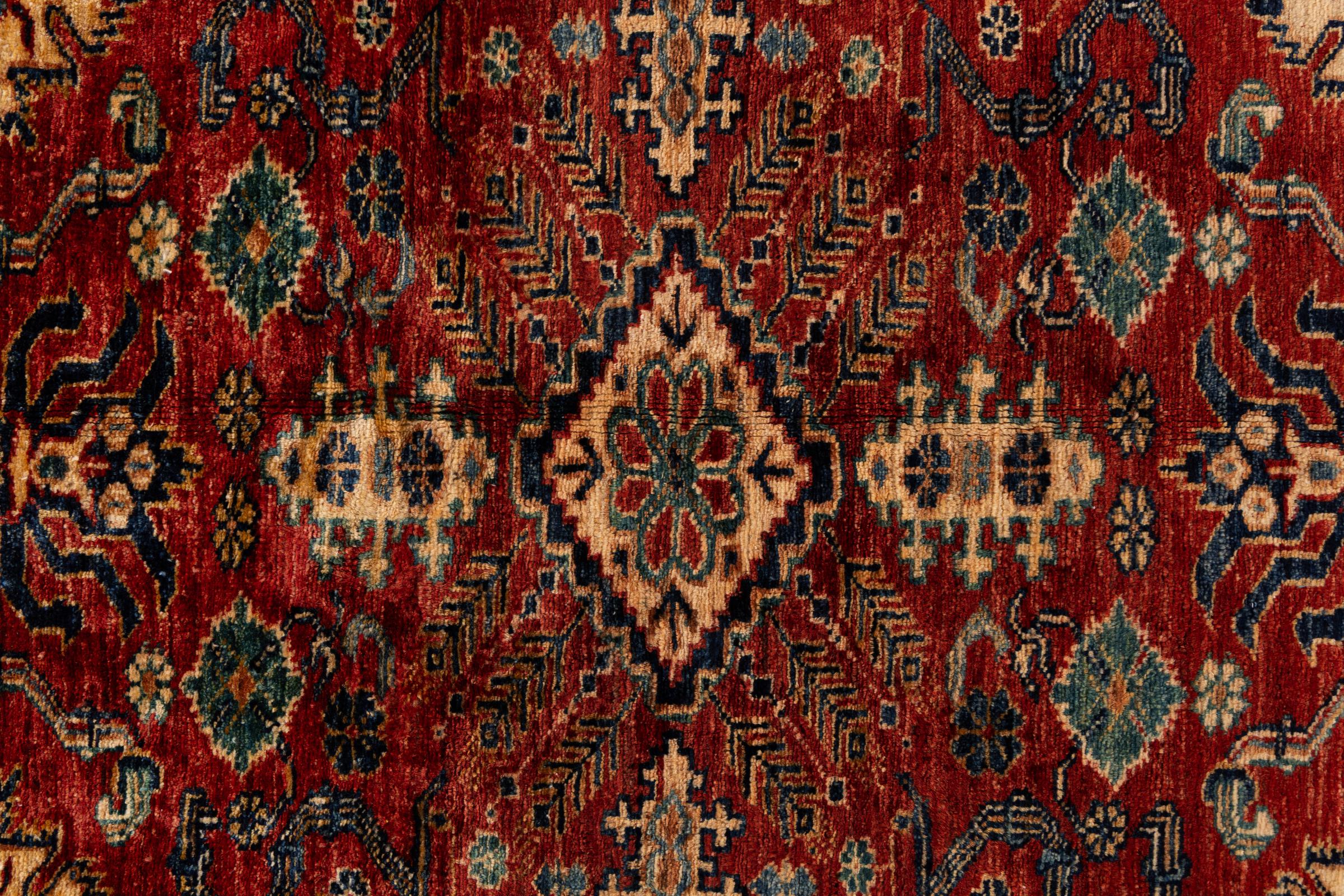 Tapijt ID: 30703100105561 Grootte: 208x149 cm Dikte: ap. 5 mm Knoopdichtheid: 128 000 - 160 000 / m² Verwerking: Handgeknoopte Pool: Wol Schering: Wol Oorsprong: Azerbaijan / Rusland Leeftijd: Nieuw Gewicht: ap. 8 kg Op voorraad: Uniek - Nog maar 1 op voorraad
