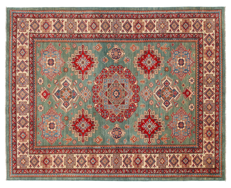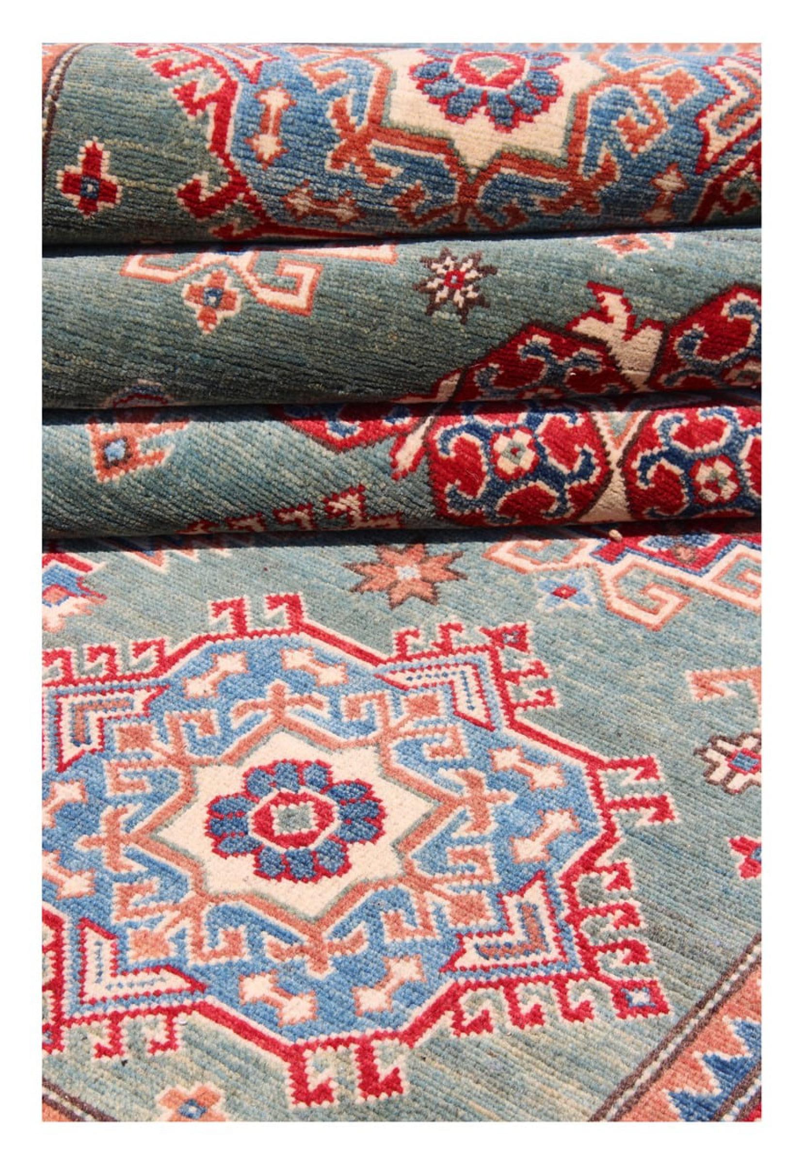 Kazak-vloerkleden zijn duurzame, levendige wollen vloerkleden die bekend staan om hun unieke geometrische patronen, uitgebalanceerde kleuren en uitzonderlijk vakmanschap. Ze zullen een boeiende en cultureel rijke sfeer in uw ruimte creëren. Oorspronkelijk afkomstig uit de Kaukasus en een van de oudste soorten tapijten, worden ze nu voornamelijk gemaakt door Kazachen in Afghanistan en Pakistan. Een antiek Kazachs tapijt kan zeer waardevol zijn voor verzamelaars.