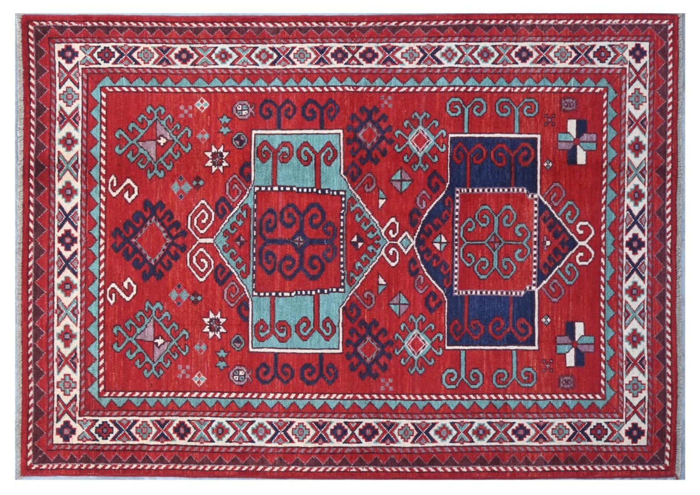 Kazak-vloerkleden zijn duurzame, levendige wollen vloerkleden die bekend staan om hun unieke geometrische patronen, uitgebalanceerde kleuren en uitzonderlijk vakmanschap. Ze zullen een boeiende en cultureel rijke sfeer in uw ruimte creëren. Oorspronkelijk afkomstig uit de Kaukasus en een van de oudste soorten tapijten, worden ze nu voornamelijk gemaakt door Kazachen in Afghanistan en Pakistan. Een antiek Kazachs tapijt kan zeer waardevol zijn voor verzamelaars.