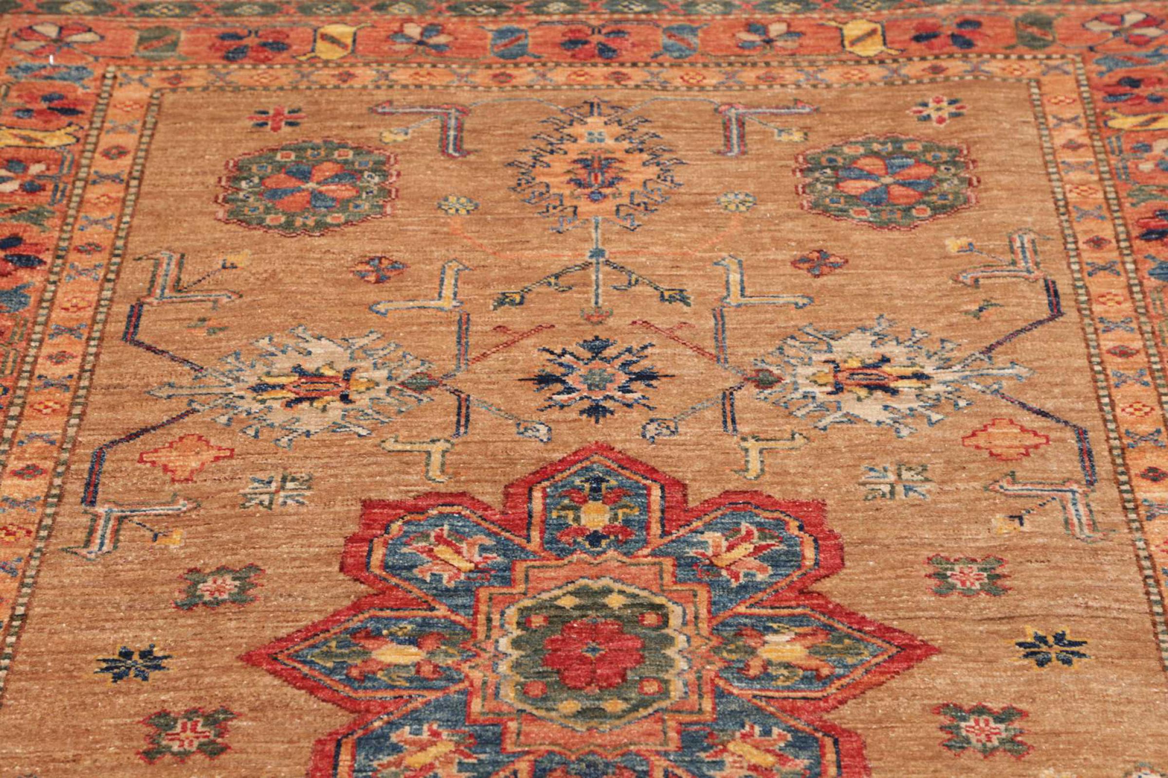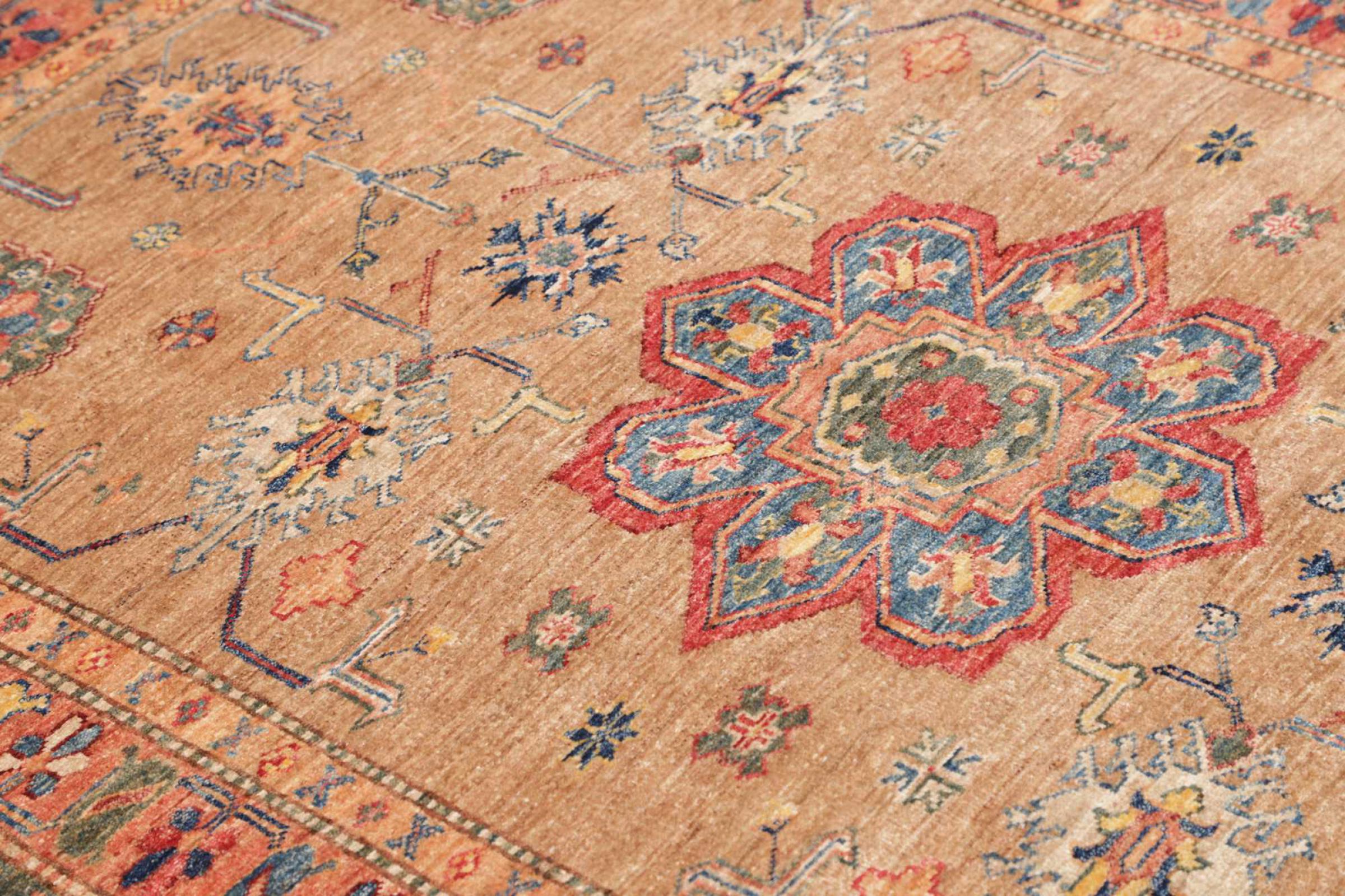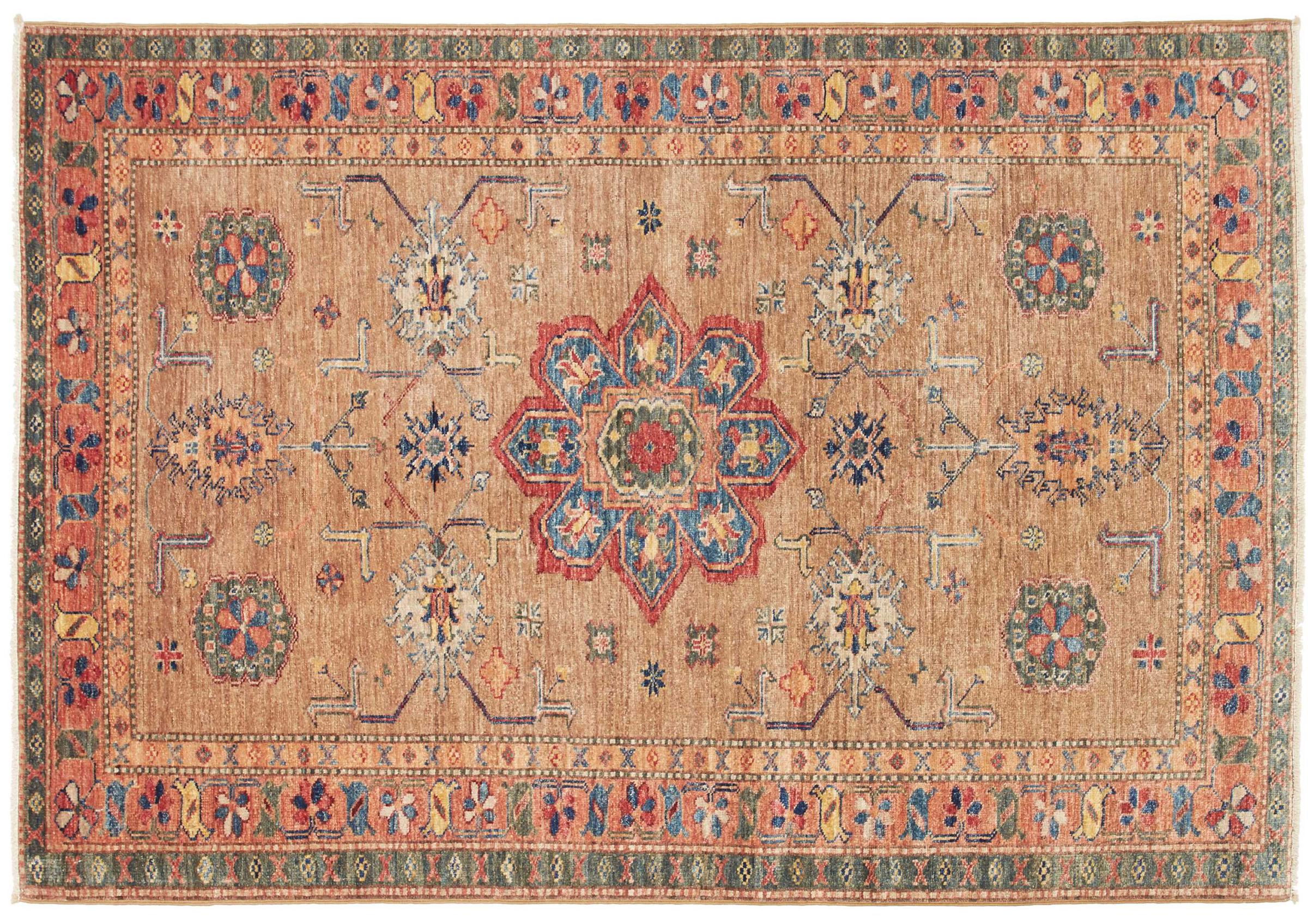 Kazak-vloerkleden zijn duurzame, levendige wollen vloerkleden die bekend staan om hun unieke geometrische patronen, uitgebalanceerde kleuren en uitzonderlijk vakmanschap. Ze zullen een boeiende en cultureel rijke sfeer in uw ruimte creëren. Oorspronkelijk afkomstig uit de Kaukasus en een van de oudste soorten tapijten, worden ze nu voornamelijk gemaakt door Kazachen in Afghanistan en Pakistan. Een antiek Kazachs tapijt kan zeer waardevol zijn voor verzamelaars.