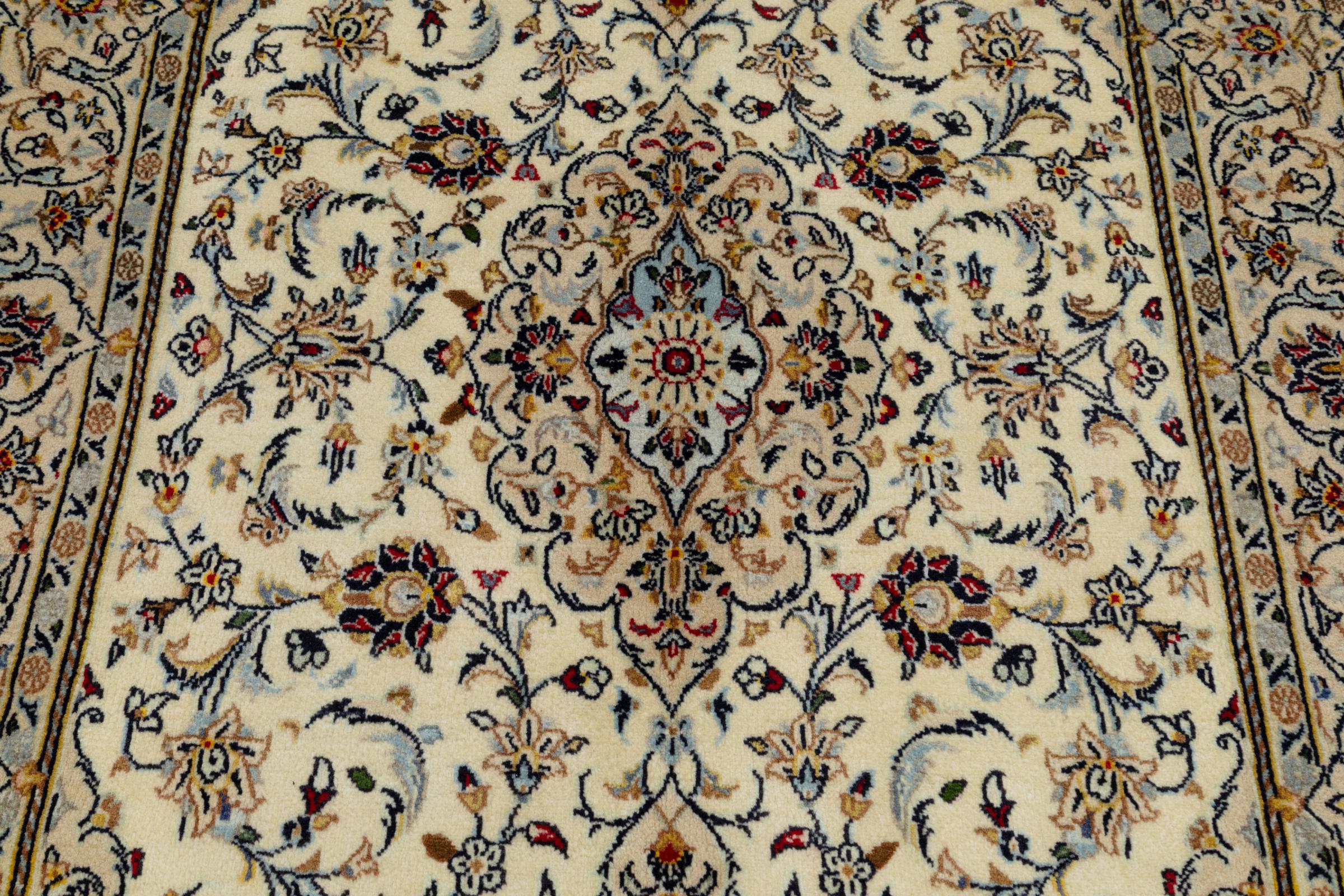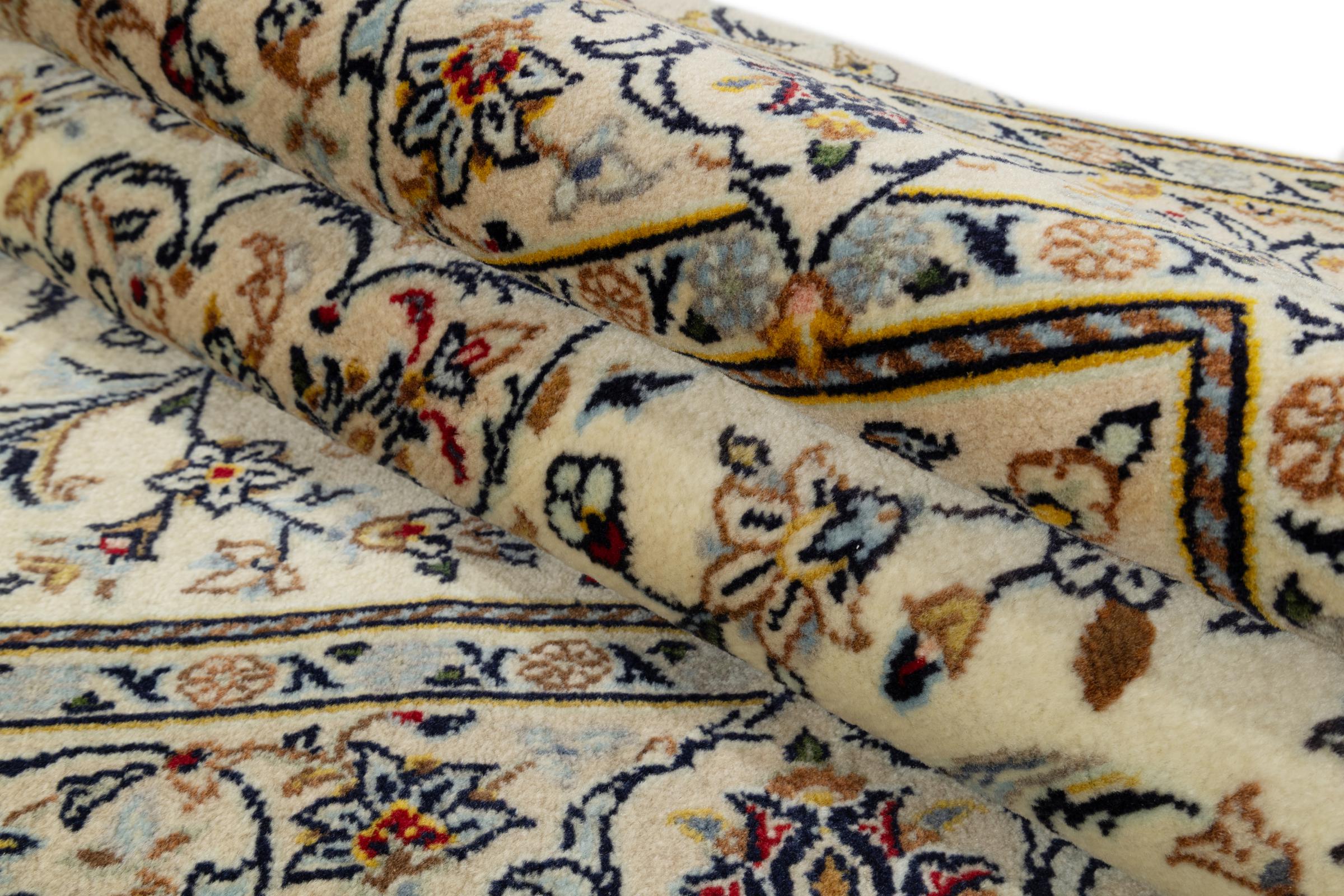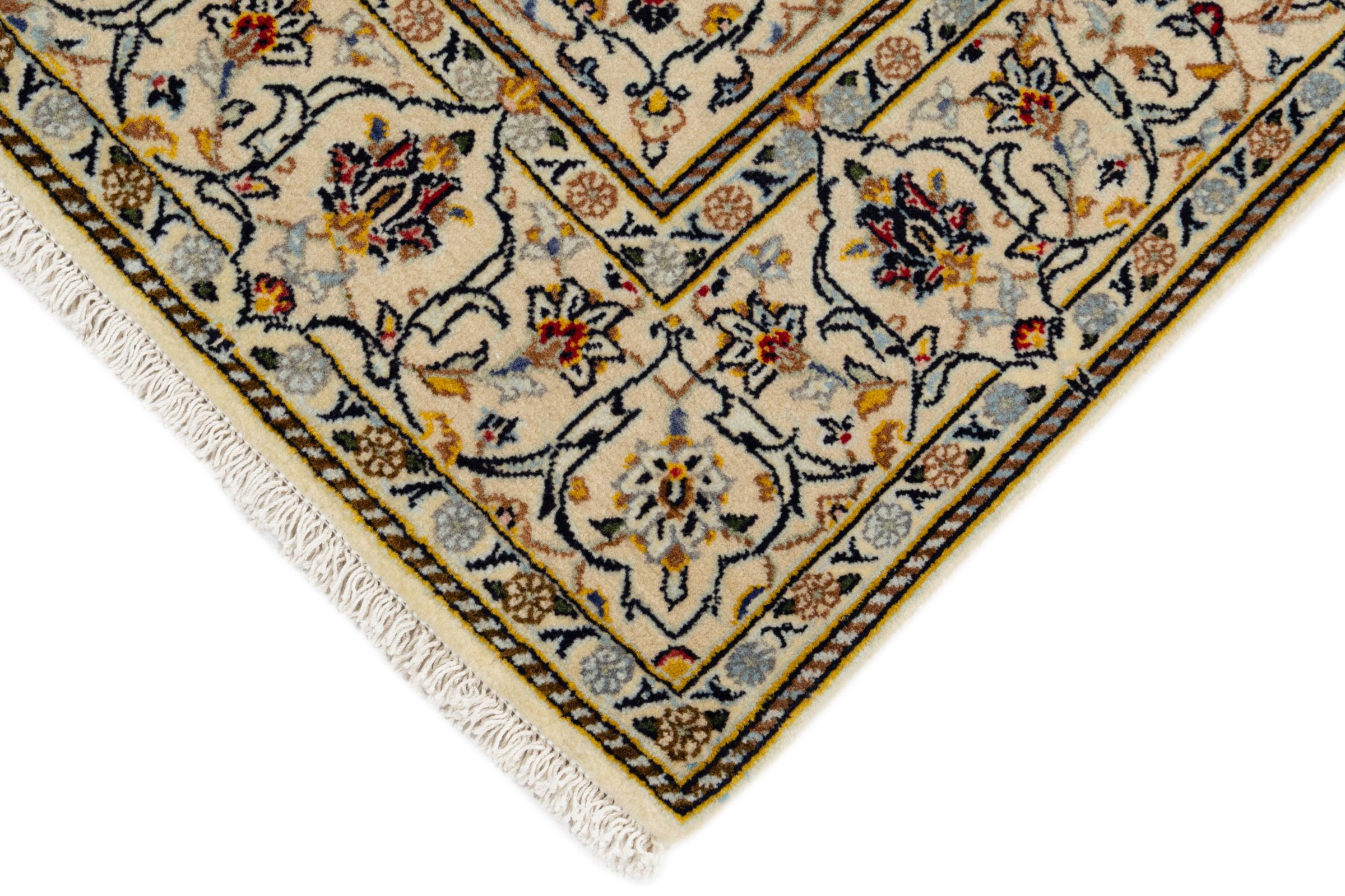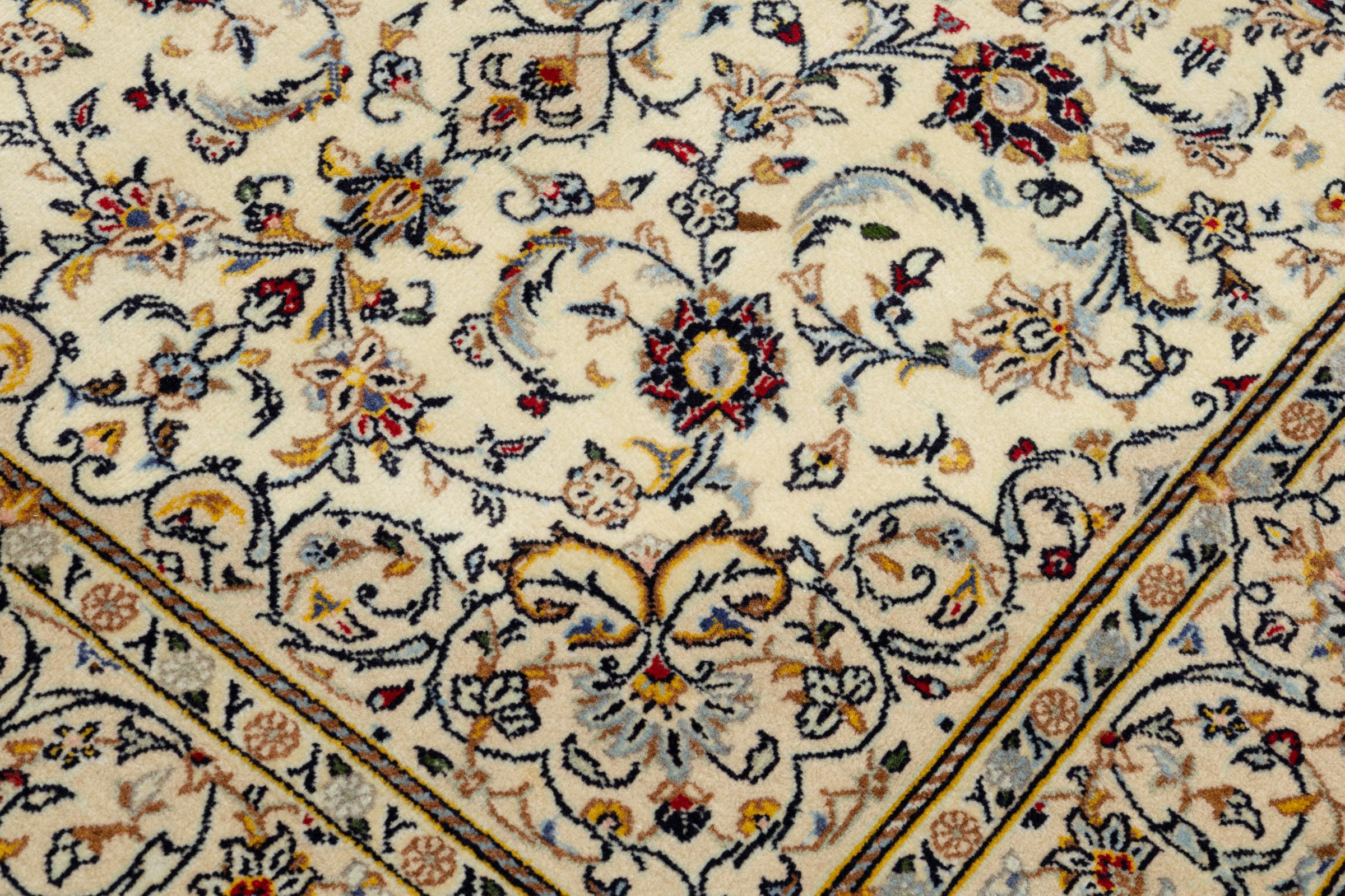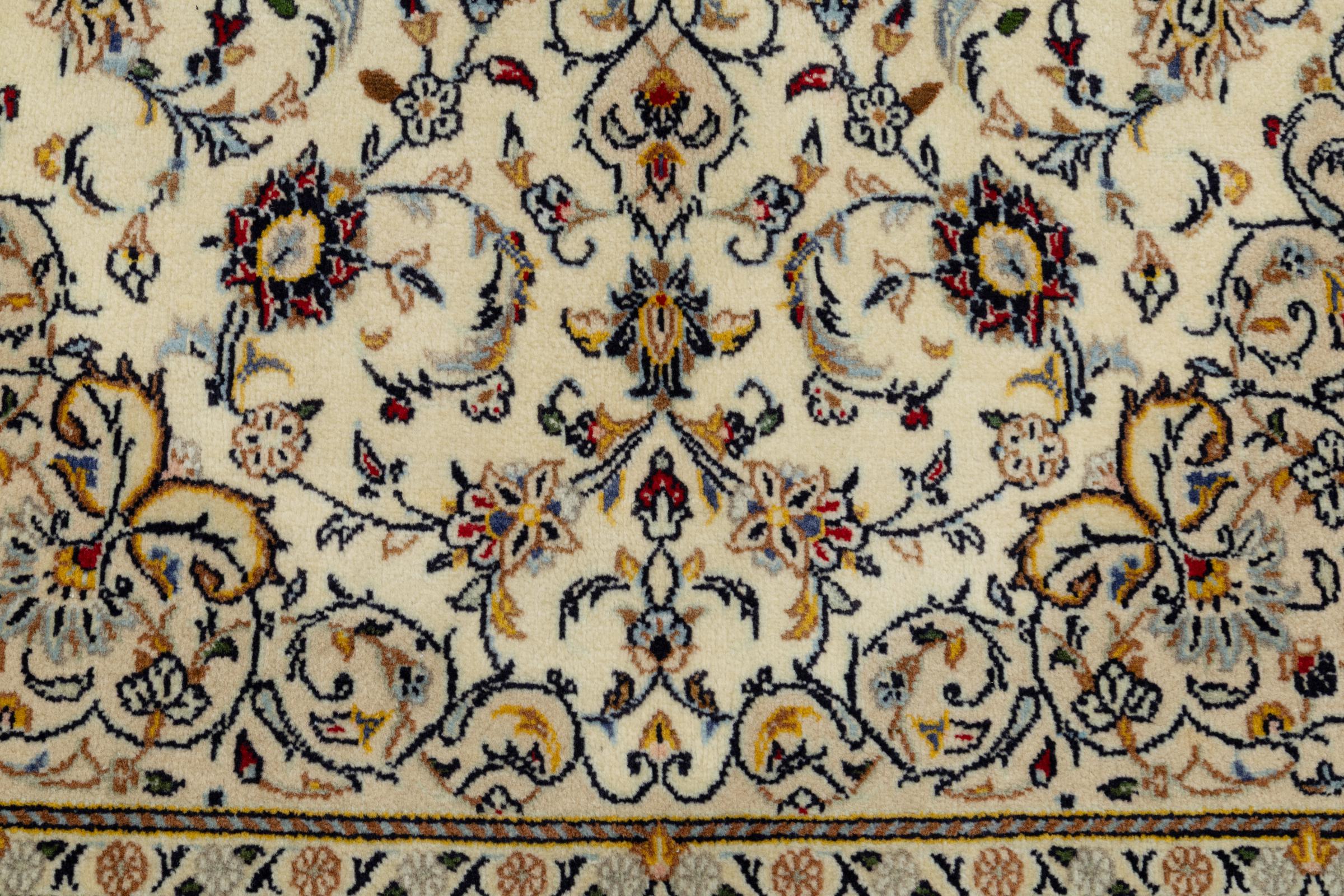 Dit tapijt van Kashan (Keshan) wordt gehouden in zijn zeer traditionele en typisch Perzische ontwerp met prachtige ornamenten. Kashan-tapijten zijn zeer populair vanwege hun uitzonderlijk elegante ontwerp. Deze tapijten zijn afkomstig uit Kashan, een stad aan de eeuwenoude Zijderoute. Dit tapijt is met de hand geknoopt van hoogwaardige schapenwol en wordt een uniek hoogtepunt in je huis.