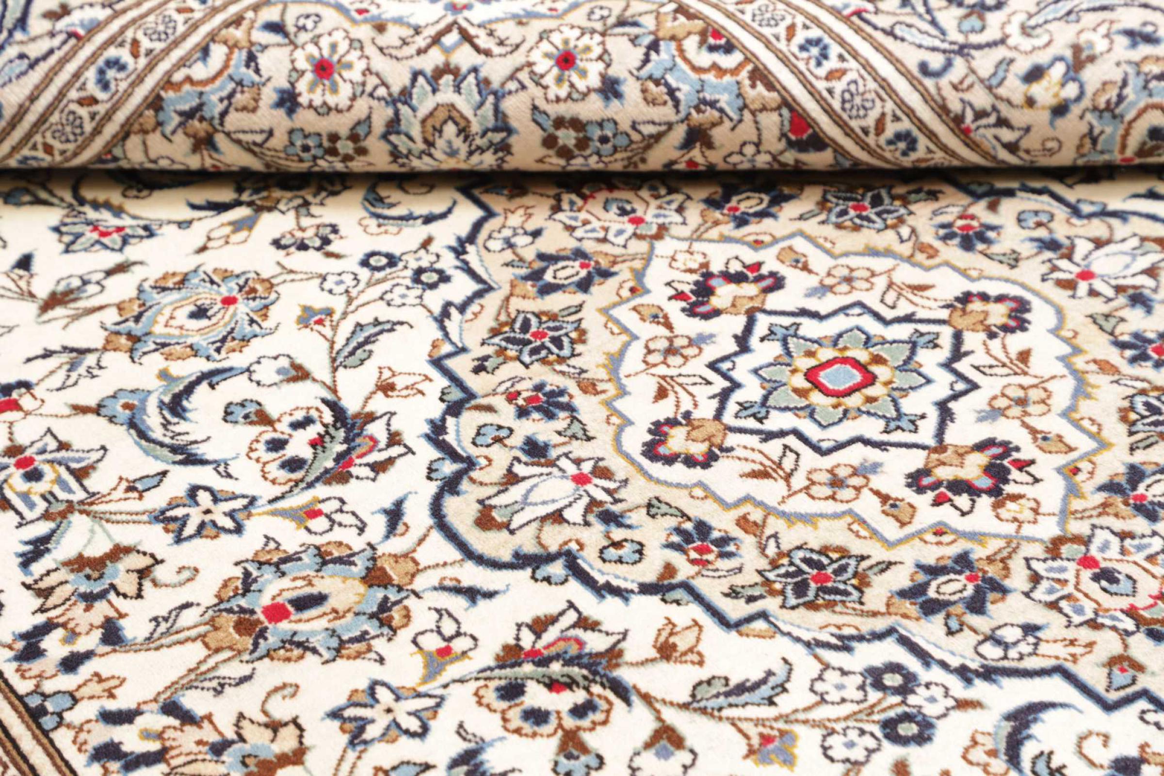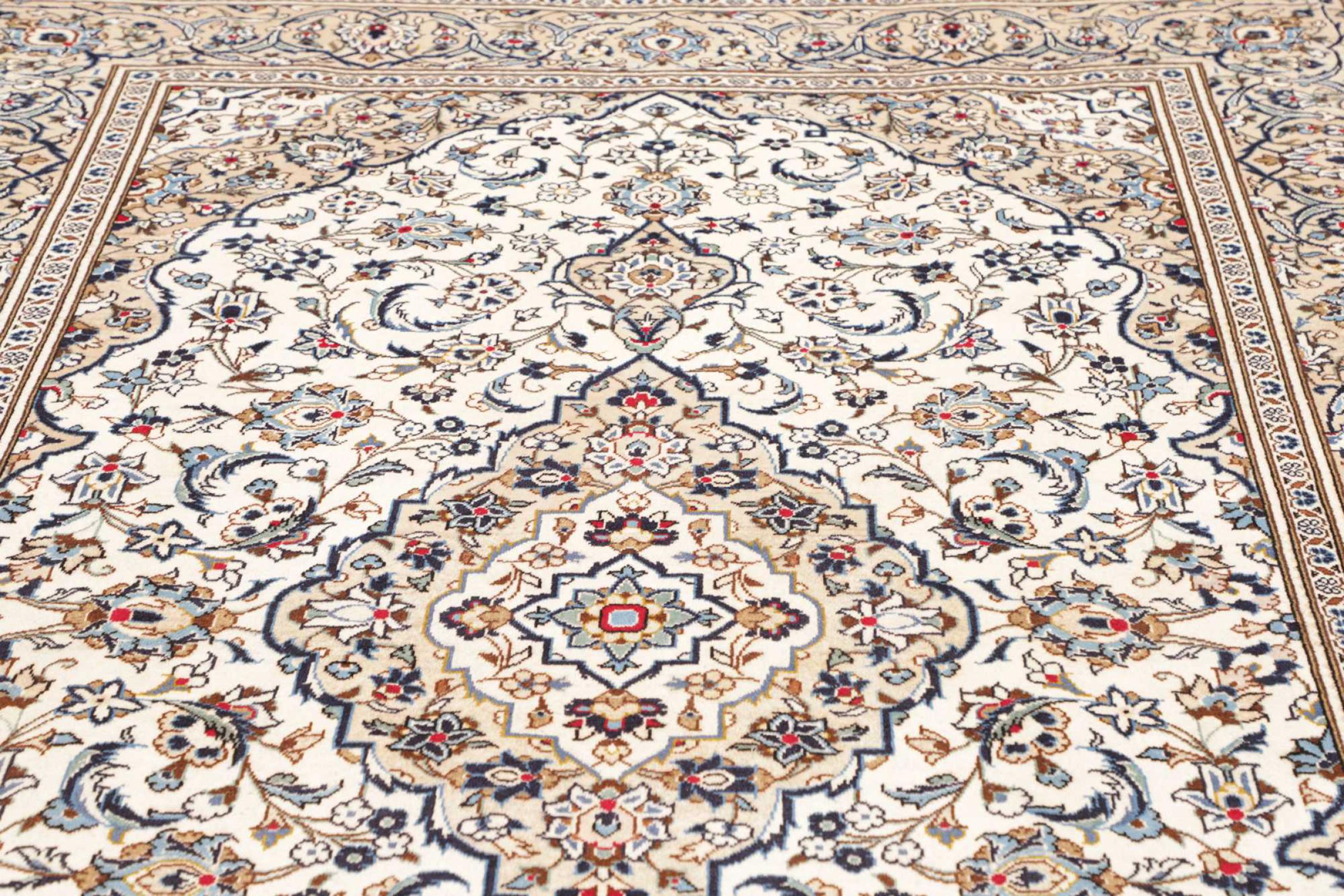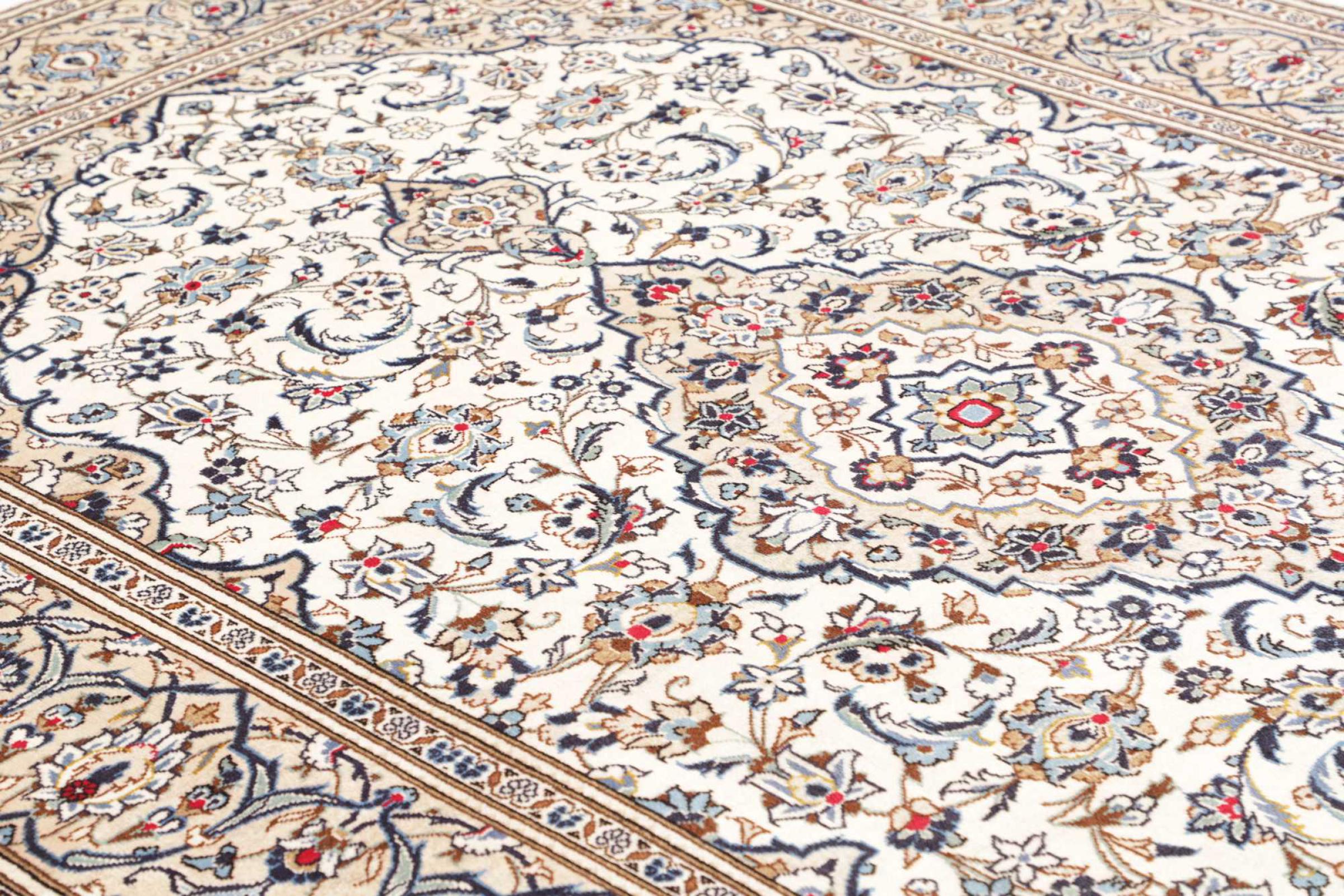 Dit tapijt van Kashan (Keshan) wordt gehouden in zijn zeer traditionele en typisch Perzische ontwerp met prachtige ornamenten. Kashan-tapijten zijn zeer populair vanwege hun uitzonderlijk elegante ontwerp. Deze tapijten zijn afkomstig uit Kashan, een stad aan de eeuwenoude Zijderoute. Dit tapijt is met de hand geknoopt van hoogwaardige schapenwol en wordt een uniek hoogtepunt in je huis.