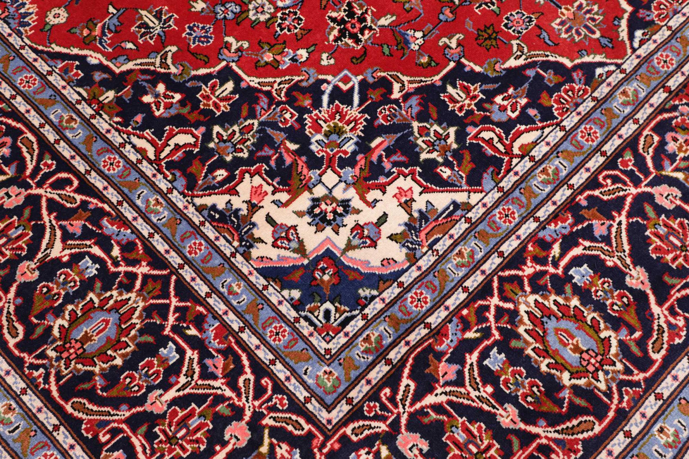 Dit tapijt van Kashan (Keshan) wordt gehouden in zijn zeer traditionele en typisch Perzische ontwerp met prachtige ornamenten. Kashan-tapijten zijn zeer populair vanwege hun uitzonderlijk elegante ontwerp. Deze tapijten zijn afkomstig uit Kashan, een stad aan de eeuwenoude Zijderoute. Dit tapijt is met de hand geknoopt van hoogwaardige schapenwol en wordt een uniek hoogtepunt in je huis.
