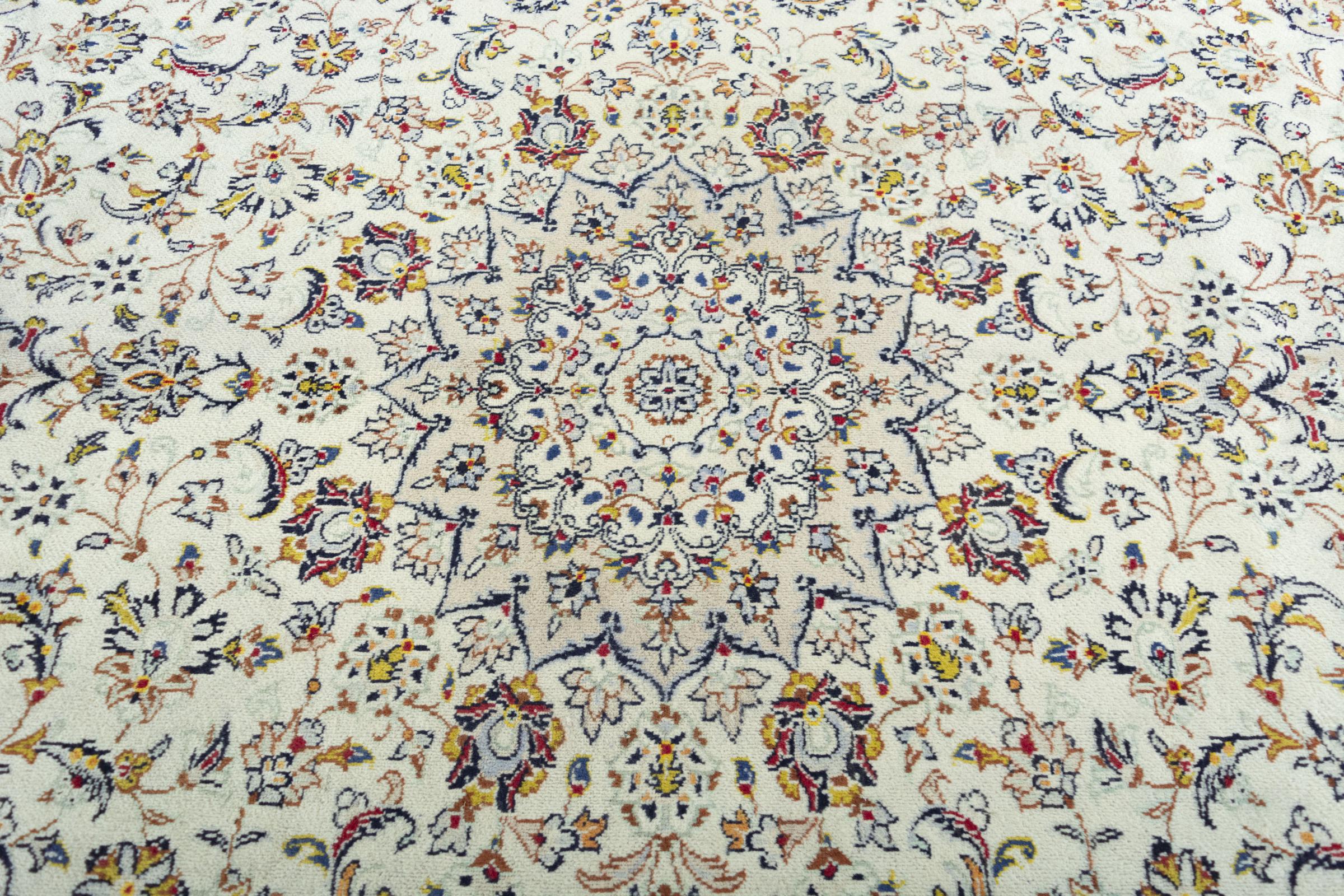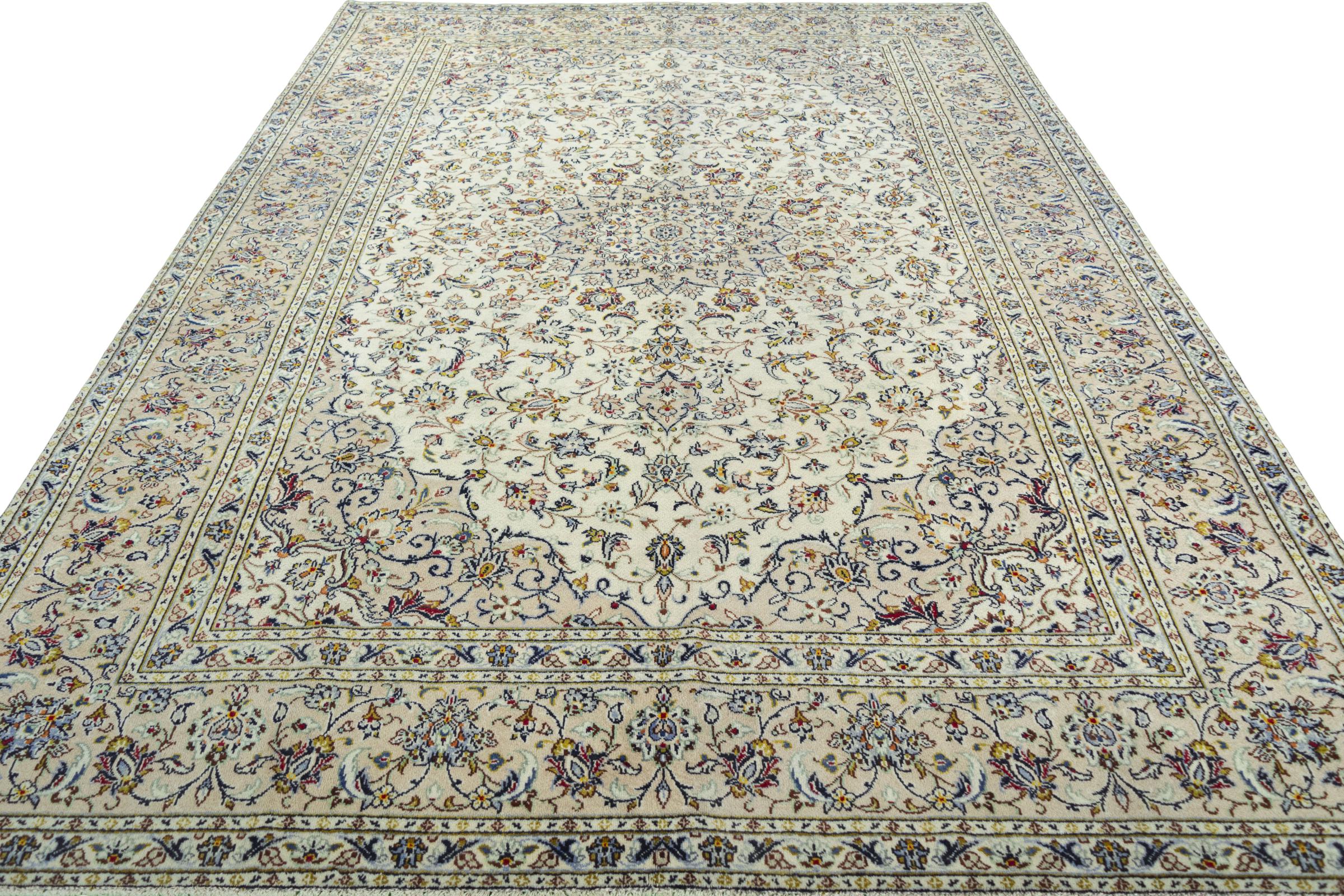 Dit tapijt van Kashan (Keshan) wordt gehouden in zijn zeer traditionele en typisch Perzische ontwerp met prachtige ornamenten. Kashan-tapijten zijn zeer populair vanwege hun uitzonderlijk elegante ontwerp. Deze tapijten zijn afkomstig uit Kashan, een stad aan de eeuwenoude Zijderoute. Dit tapijt is met de hand geknoopt van hoogwaardige schapenwol en wordt een uniek hoogtepunt in je huis.