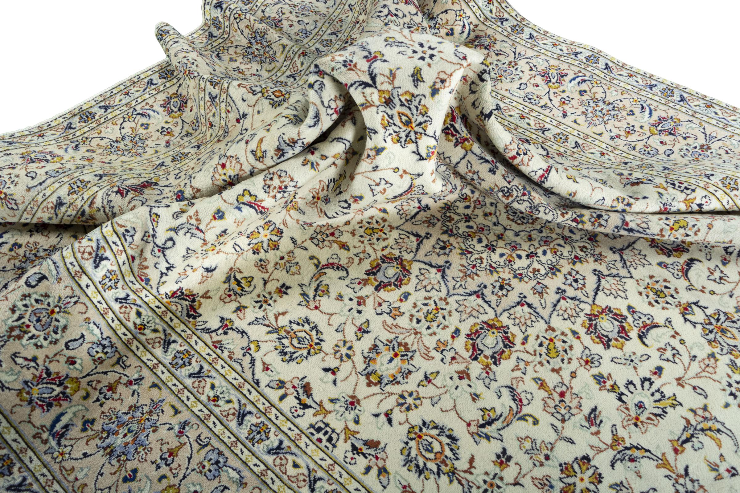 Dit tapijt is gemaakt van handgesponnen schapenwol van de hoogste kwaliteit. Vooral in Iran (voormalig Perzië), Afghanistan en Pakistan wordt de wol nog met de hand gesponnen voordat het eigenlijke knopen van het tapijt begint. Wol heeft zich door de eeuwen heen bewezen als een natuurlijk en extreem slijtvast materiaal. Het heeft onder andere vuilafstotende en warmte-isolerende eigenschappen. Tegelijkertijd is wol onvergelijkbaar zacht en heeft het een natuurlijke glans.