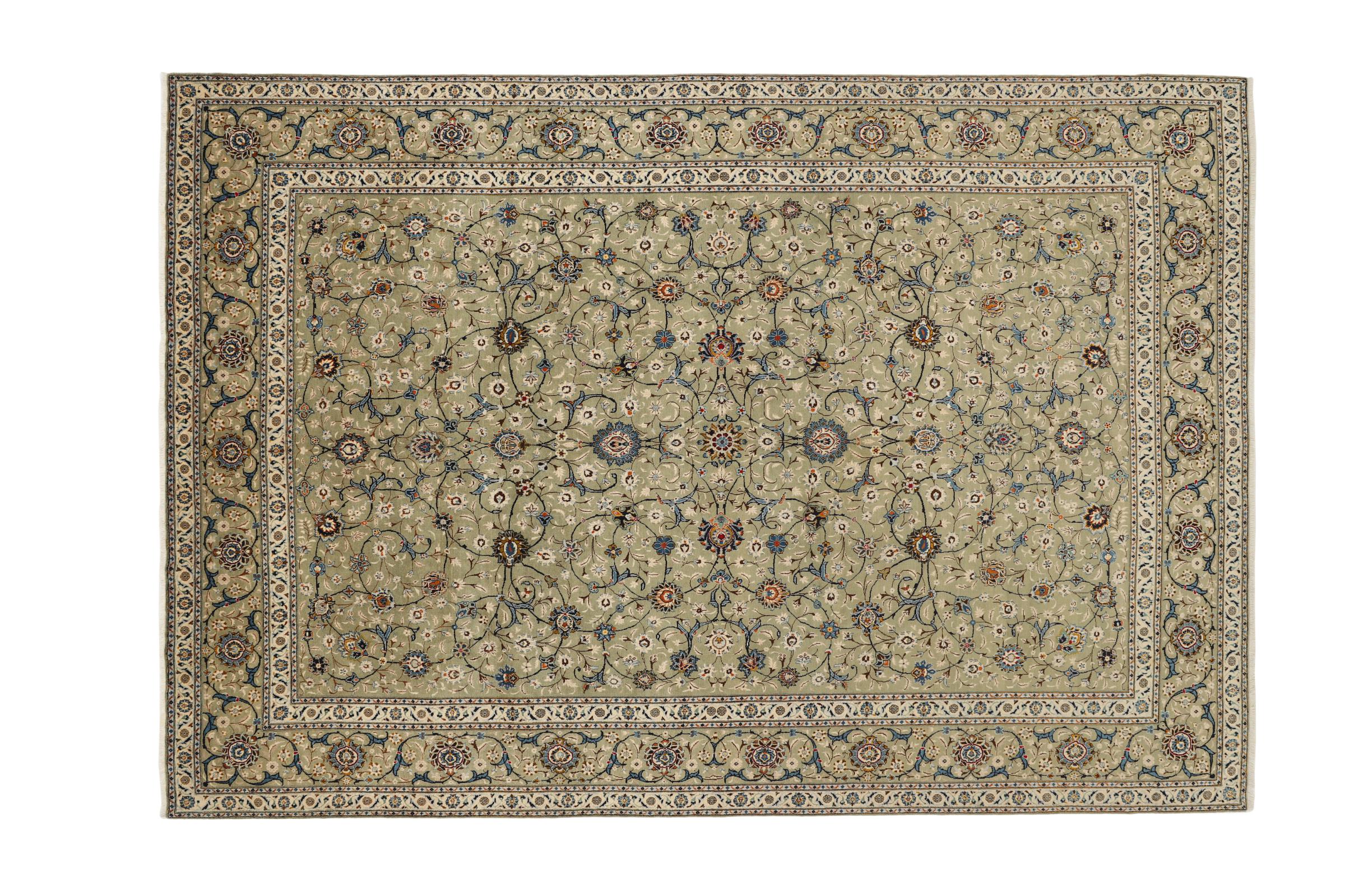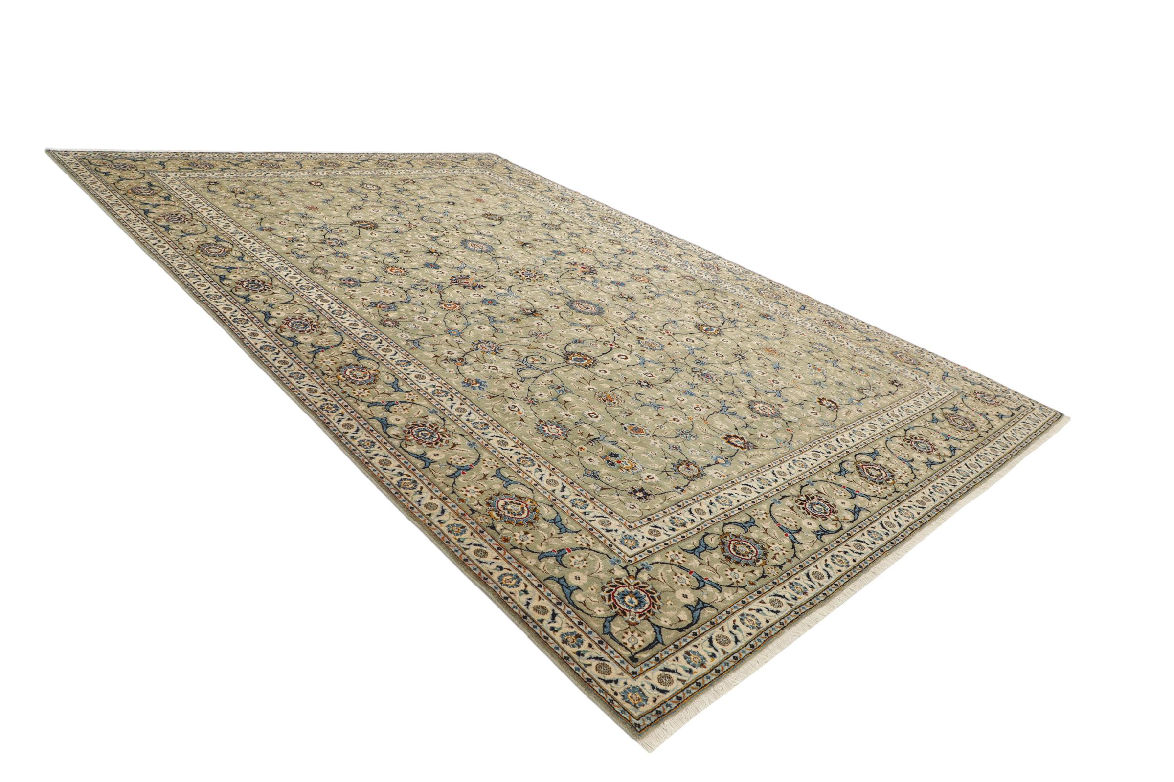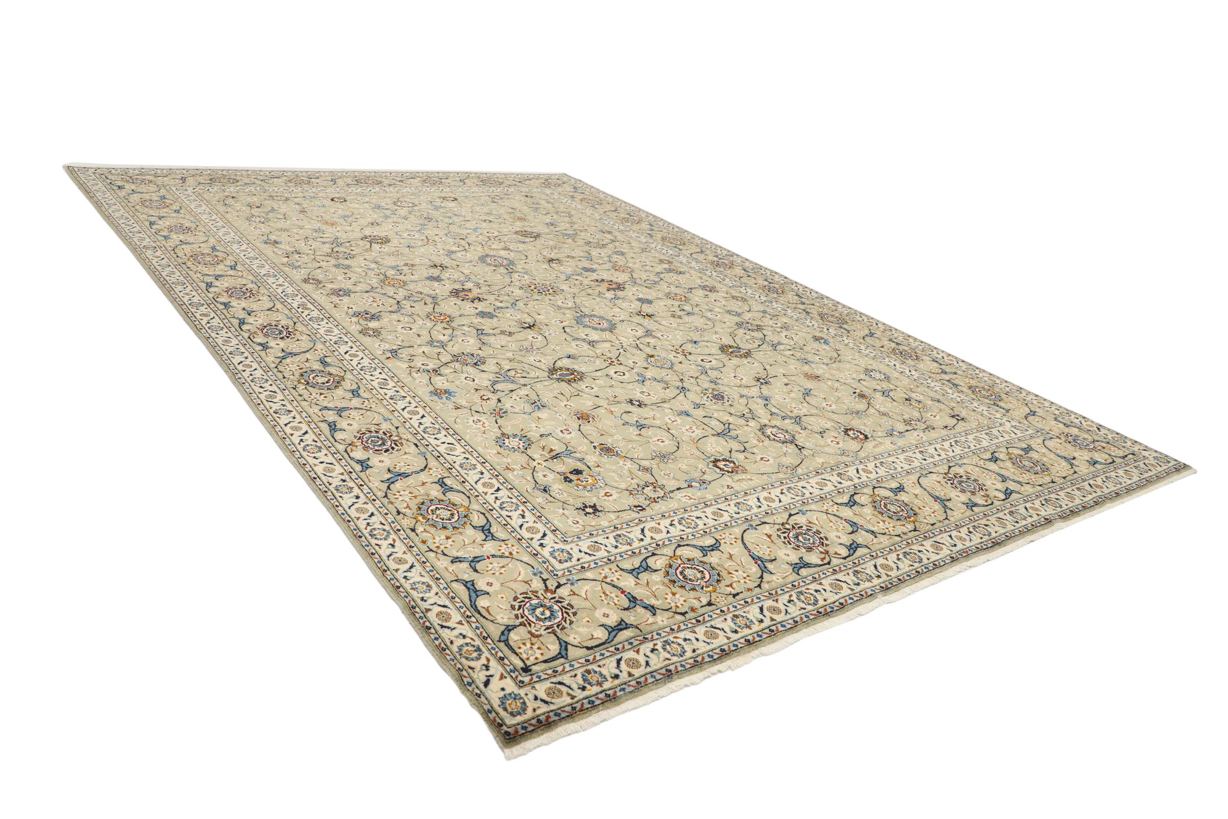 Tapijt ID: 291794005708046 Grootte: 452x311 cm Dikte: ap. 12 mm Knoopdichtheid: 160 000 - 200 000 / m² Verwerking: Handgeknoopte Pool: Hand gesponnen wol Schering: Katoen Oorsprong: Perzië / Iran Leeftijd: Nieuw Gewicht: ap. 49 kg Op voorraad: Uniek - Nog maar 1 op voorraad