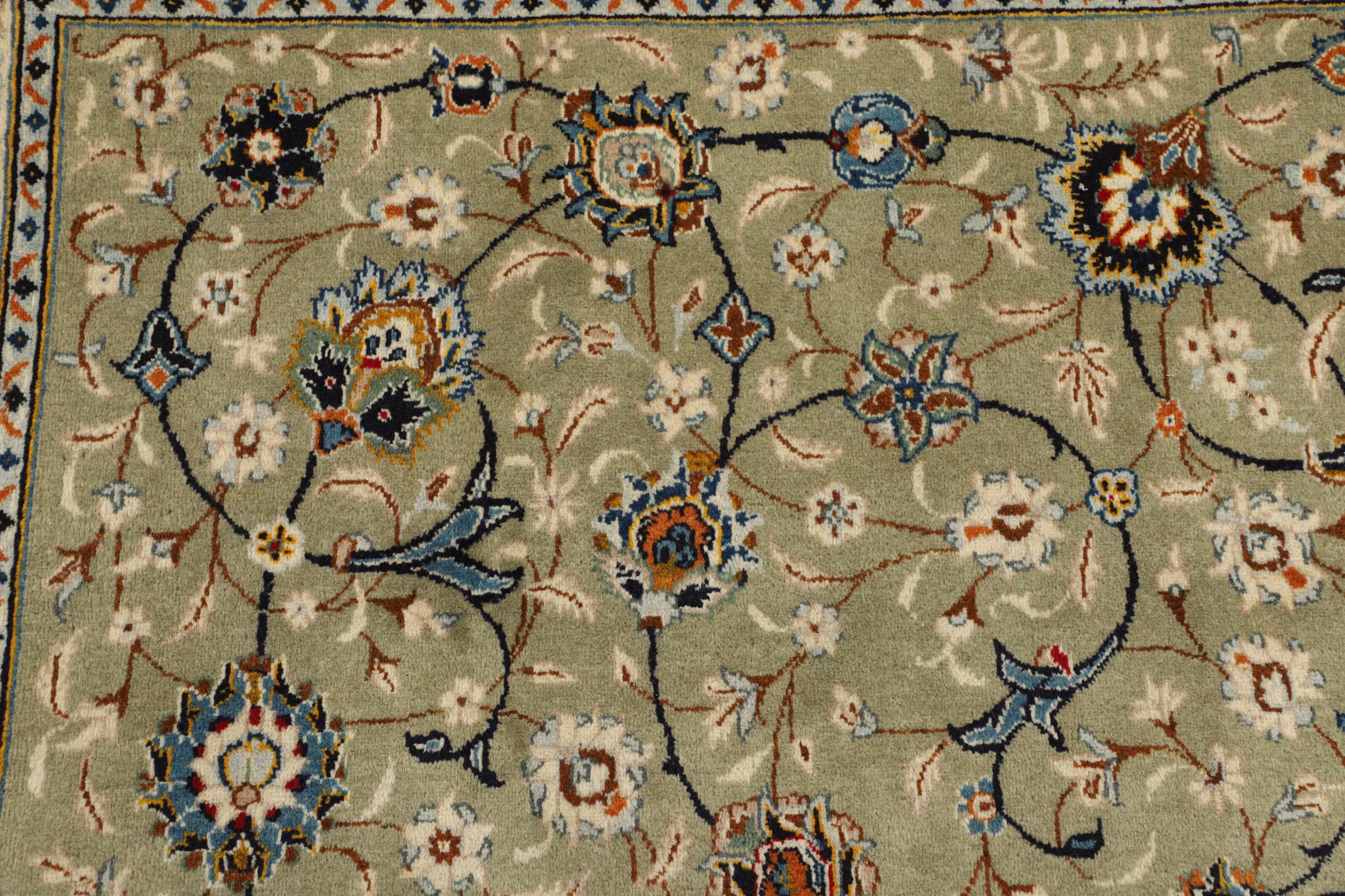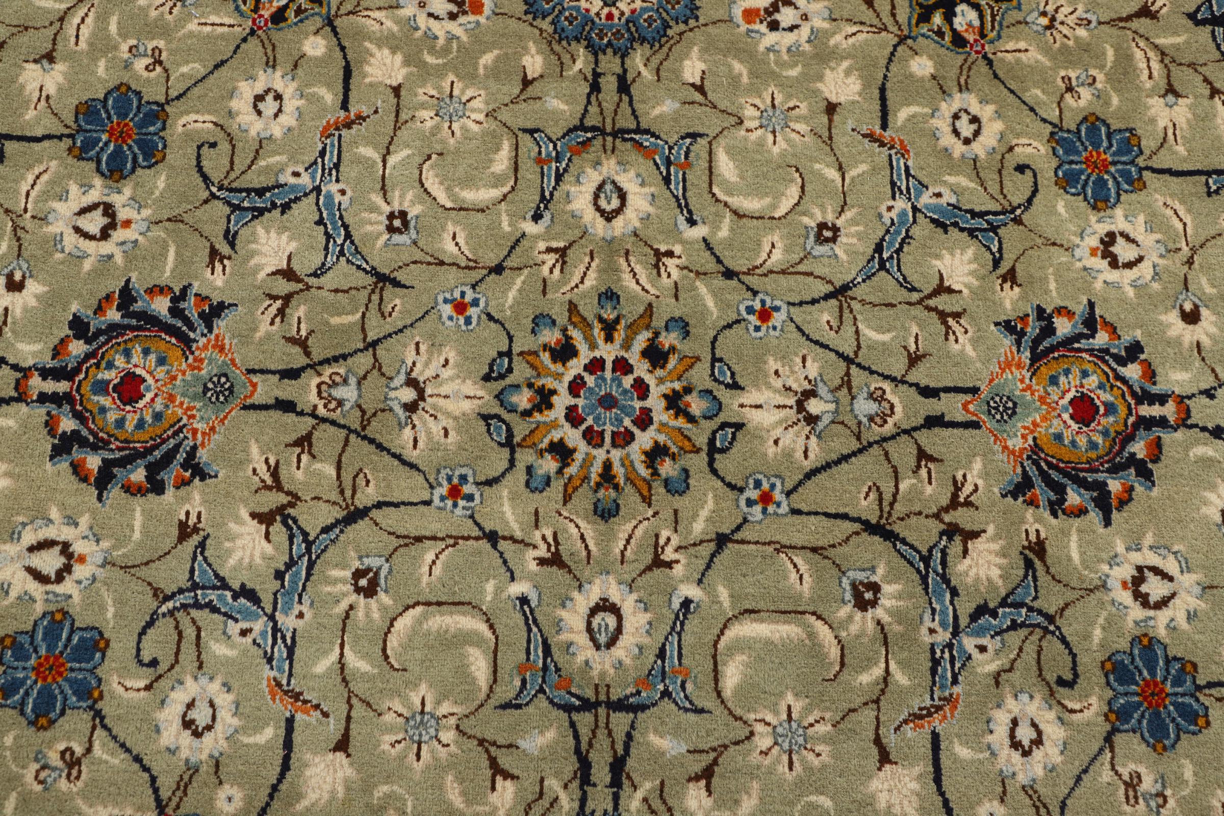 Dit tapijt van Kashan (Keshan) wordt gehouden in zijn zeer traditionele en typisch Perzische ontwerp met prachtige ornamenten. Kashan-tapijten zijn zeer populair vanwege hun uitzonderlijk elegante ontwerp. Deze tapijten zijn afkomstig uit Kashan, een stad aan de eeuwenoude Zijderoute. Dit tapijt is met de hand geknoopt van hoogwaardige schapenwol en wordt een uniek hoogtepunt in je huis.