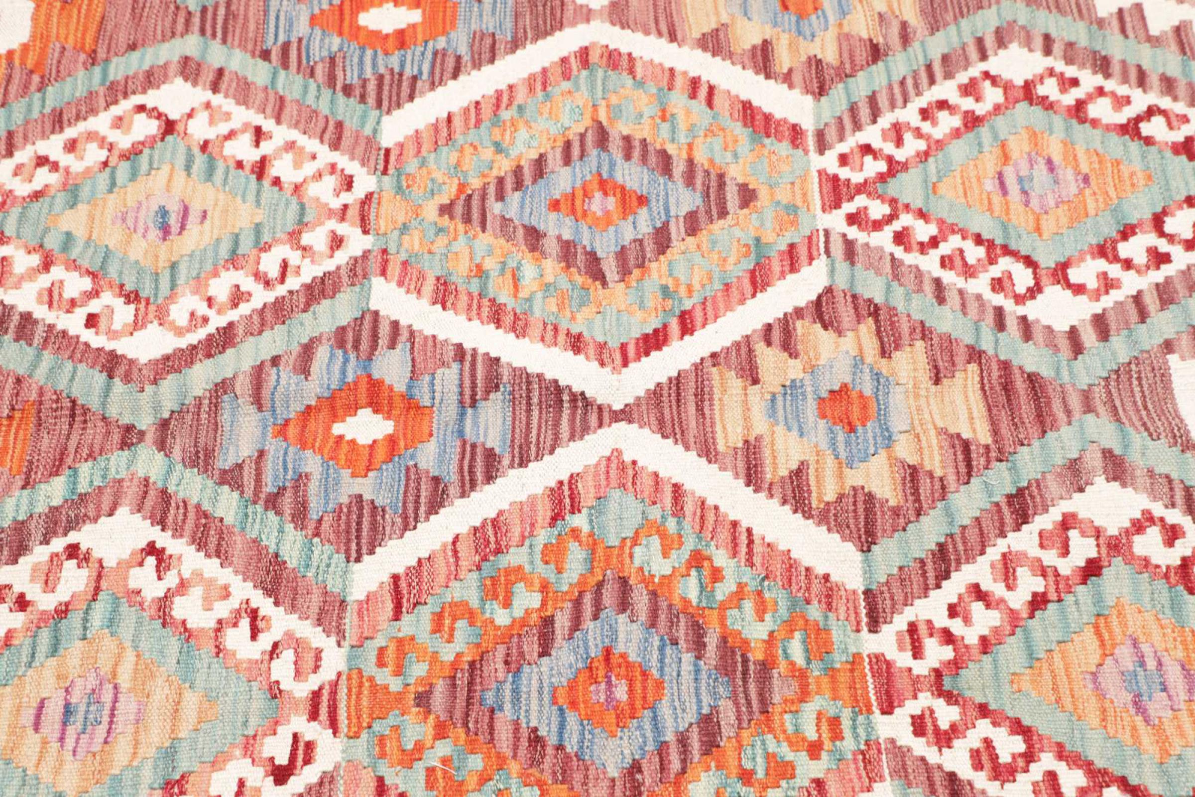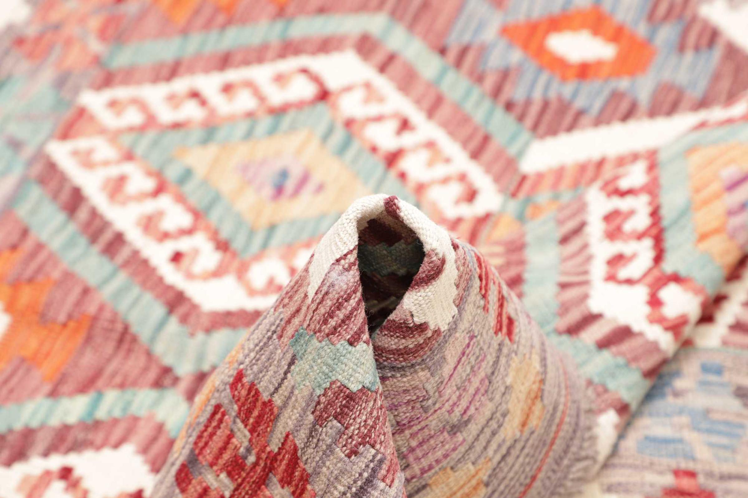 Deze handgeweven kilim Afghan is prachtig door de veelzijdige kleuren en het typische patroon. Het is handgeweven in Afghanistan van 100% schapenwol. Het is ongetwijfeld robuuster en duurzamer dan machinaal vervaardigde tapijten. Daarnaast heeft deze kelim een ​​heel eigen karakter. Een uniek stuk voor jou en je huis dat je nooit meer zult vinden.