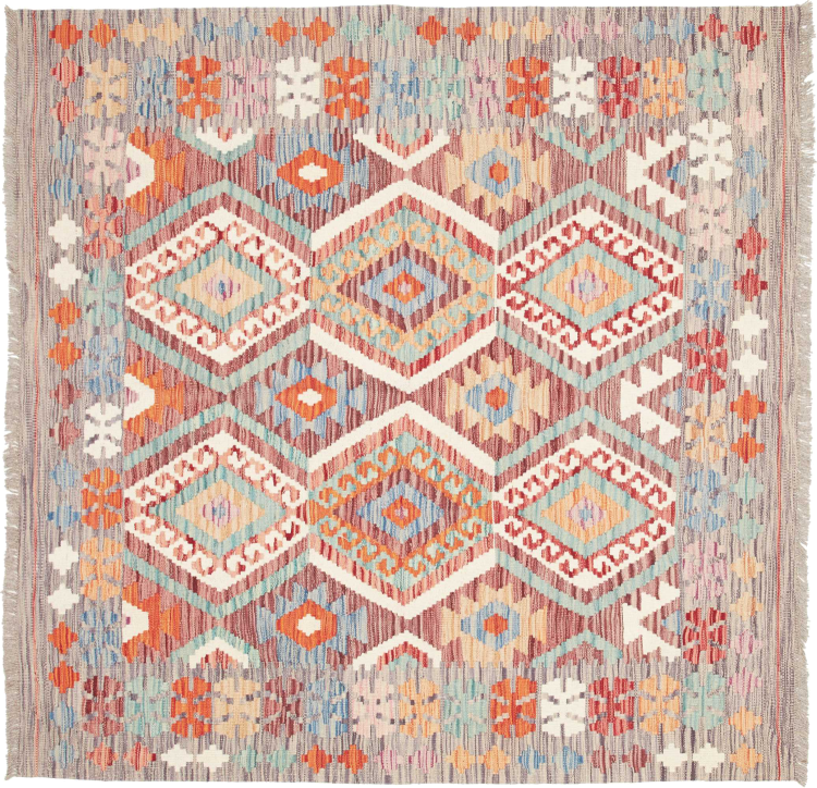 Tapijt ID: 311359001520743 Grootte: 148x146 cm Dikte: ap. 3 mm Verwerking: Handgeweven Pool: Hand gesponnen wol Schering: Wol Oorsprong: Afghanistan Leeftijd: Nieuw Gewicht: ap. 3 kg Op voorraad: Uniek - Nog maar 1 op voorraad