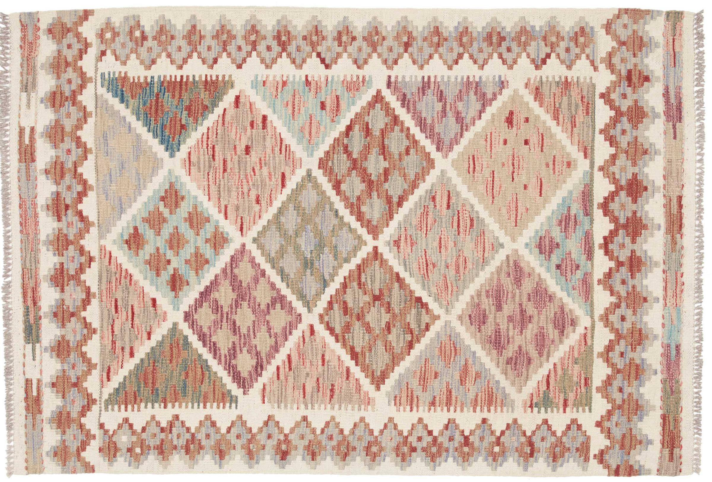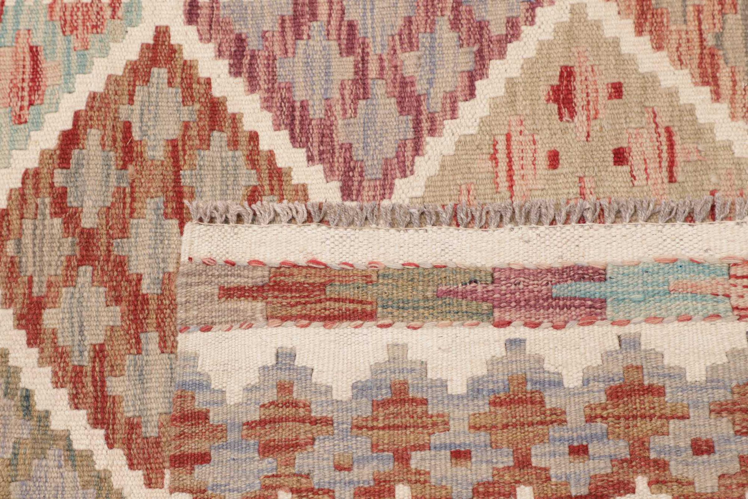 Deze handgeweven kilim Afghan is prachtig door de veelzijdige kleuren en het typische patroon. Het is handgeweven in Afghanistan van 100% schapenwol. Het is ongetwijfeld robuuster en duurzamer dan machinaal vervaardigde tapijten. Daarnaast heeft deze kelim een ​​heel eigen karakter. Een uniek stuk voor jou en je huis dat je nooit meer zult vinden.