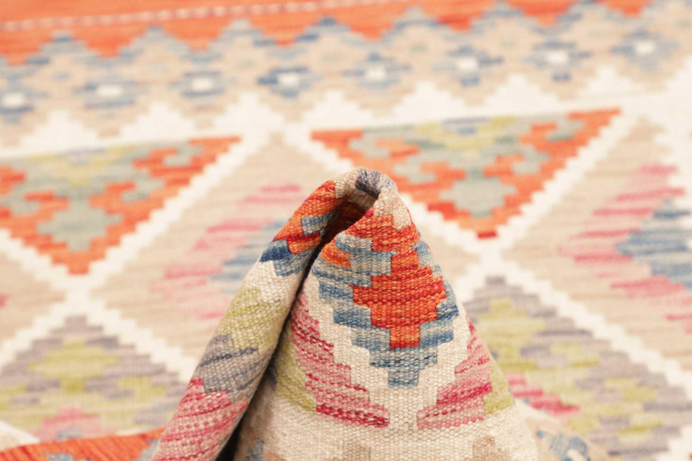 Deze handgeweven kilim Afghan is prachtig door de veelzijdige kleuren en het typische patroon. Het is handgeweven in Afghanistan van 100% schapenwol. Het is ongetwijfeld robuuster en duurzamer dan machinaal vervaardigde tapijten. Daarnaast heeft deze kelim een ​​heel eigen karakter. Een uniek stuk voor jou en je huis dat je nooit meer zult vinden.