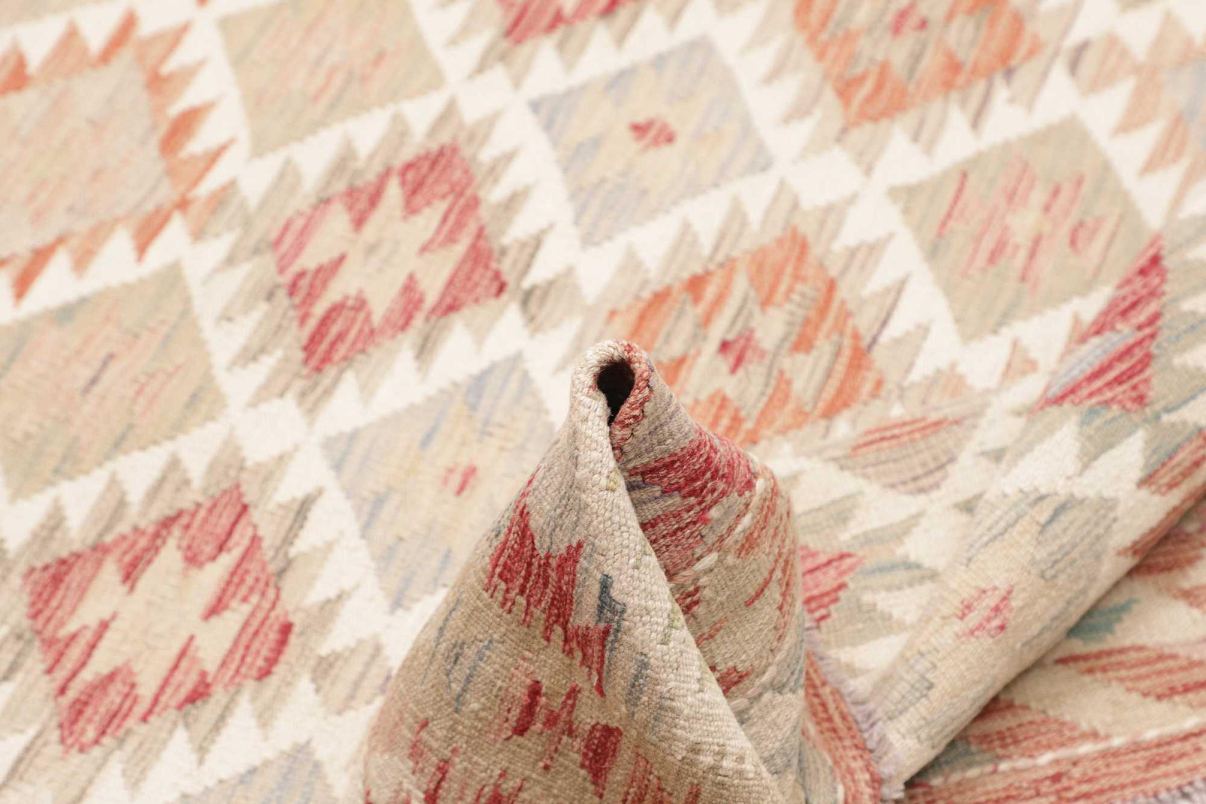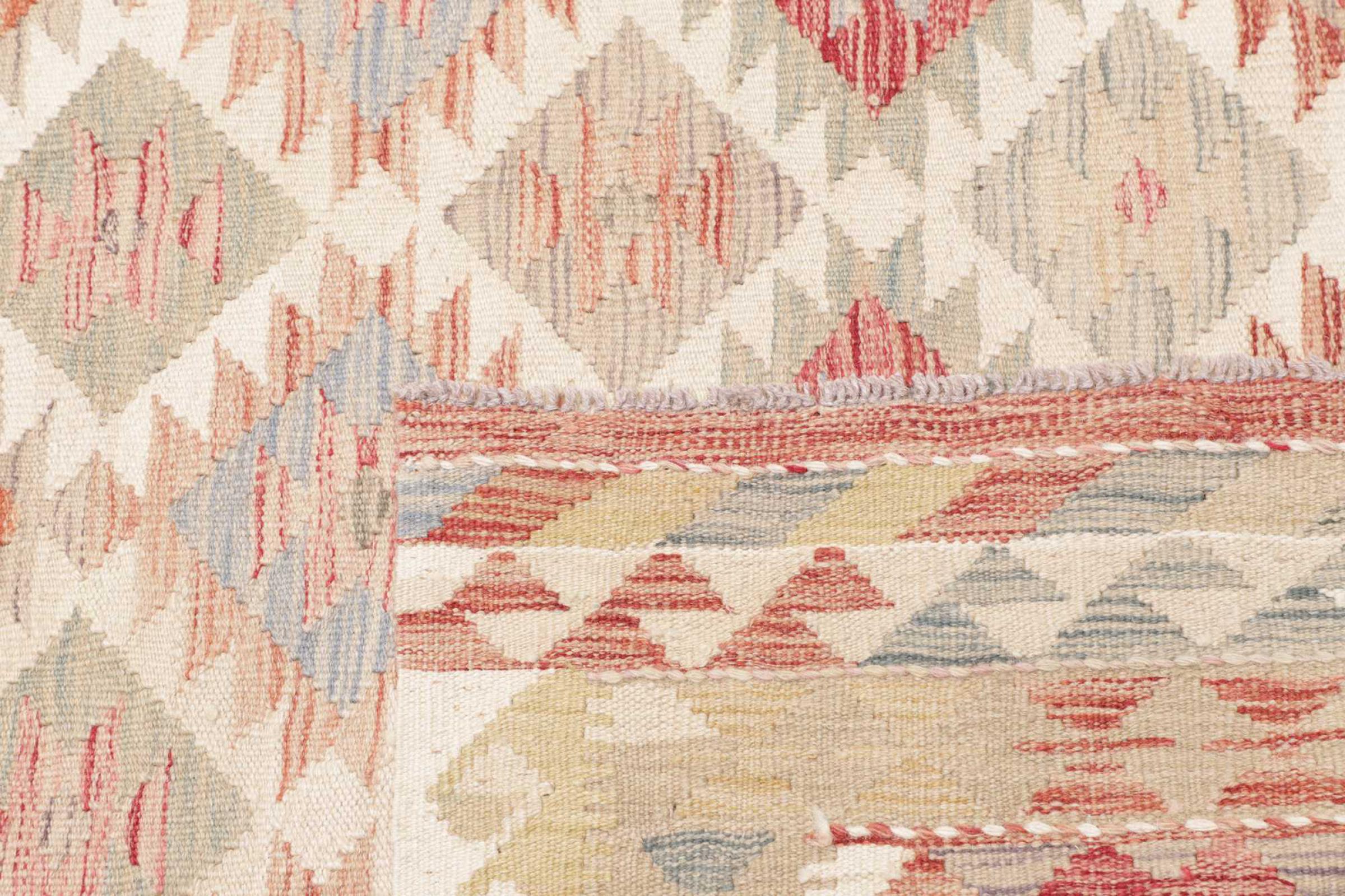 Deze handgeweven kilim Afghan is prachtig door de veelzijdige kleuren en het typische patroon. Het is handgeweven in Afghanistan van 100% schapenwol. Het is ongetwijfeld robuuster en duurzamer dan machinaal vervaardigde tapijten. Daarnaast heeft deze kelim een ​​heel eigen karakter. Een uniek stuk voor jou en je huis dat je nooit meer zult vinden.