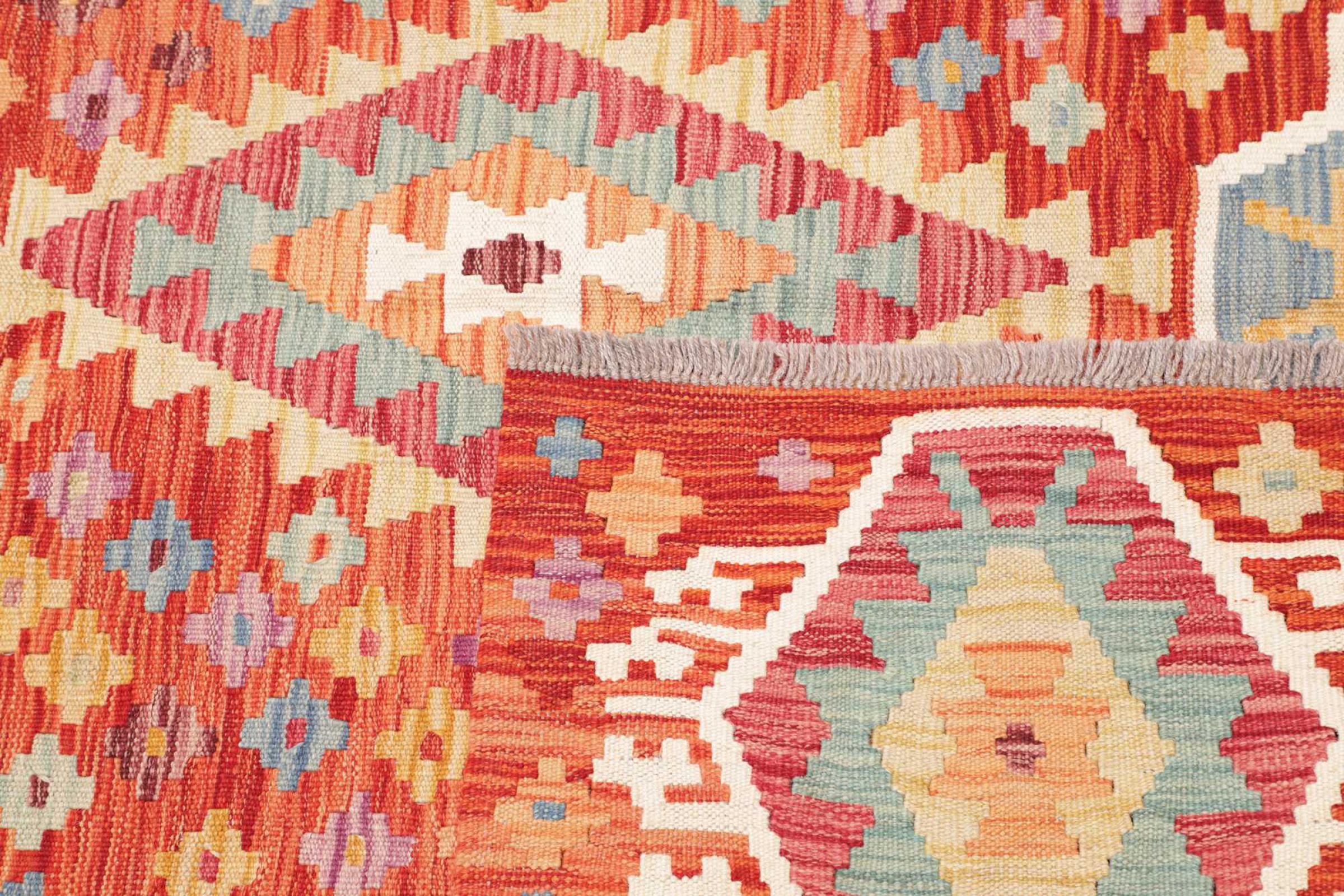 Deze handgeweven kilim Afghan is prachtig door de veelzijdige kleuren en het typische patroon. Het is handgeweven in Afghanistan van 100% schapenwol. Het is ongetwijfeld robuuster en duurzamer dan machinaal vervaardigde tapijten. Daarnaast heeft deze kelim een ​​heel eigen karakter. Een uniek stuk voor jou en je huis dat je nooit meer zult vinden.