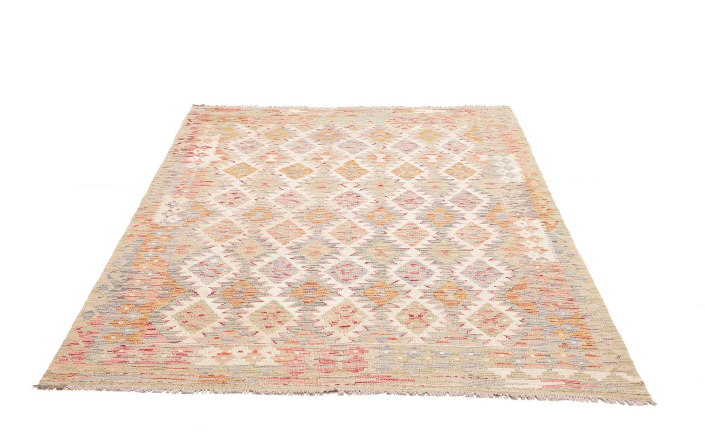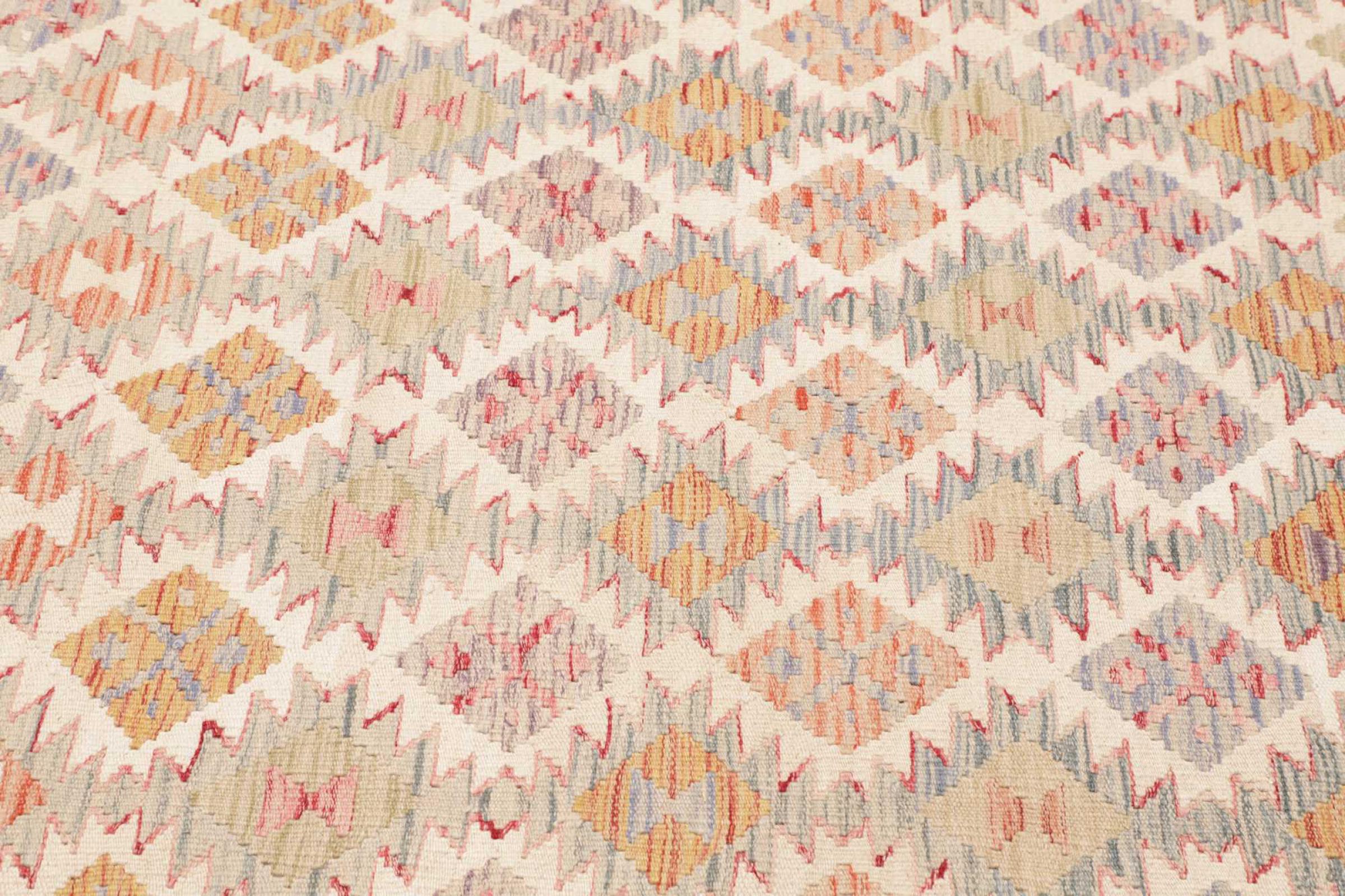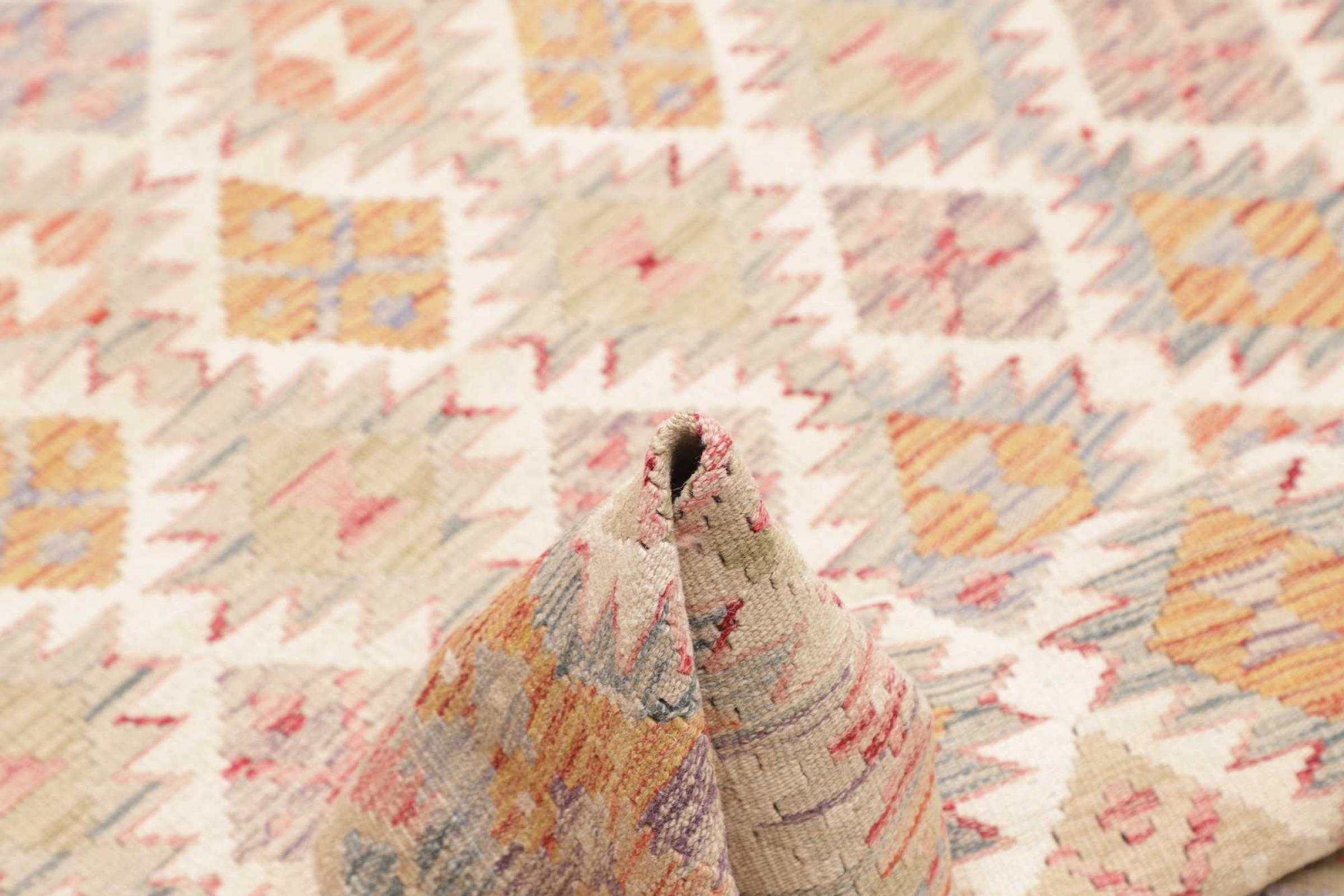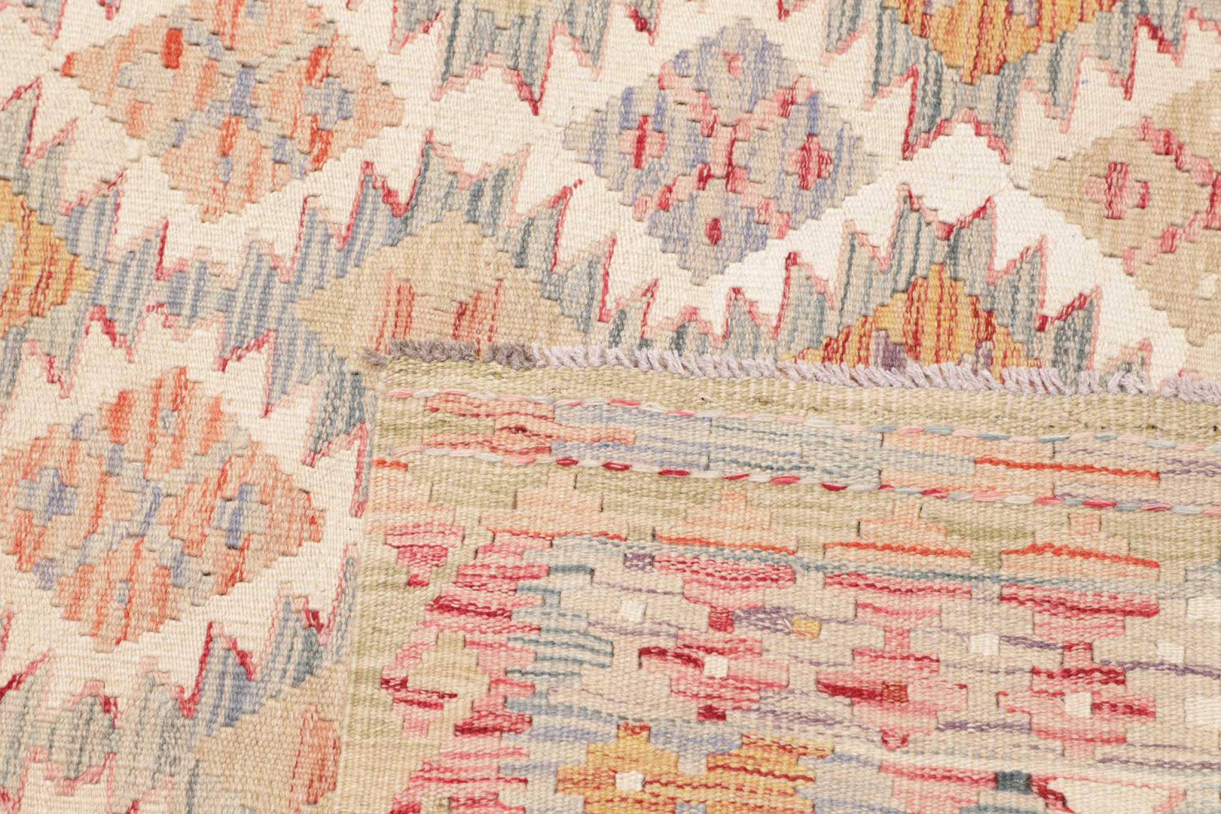 Deze handgeweven kilim Afghan is prachtig door de veelzijdige kleuren en het typische patroon. Het is handgeweven in Afghanistan van 100% schapenwol. Het is ongetwijfeld robuuster en duurzamer dan machinaal vervaardigde tapijten. Daarnaast heeft deze kelim een ​​heel eigen karakter. Een uniek stuk voor jou en je huis dat je nooit meer zult vinden.