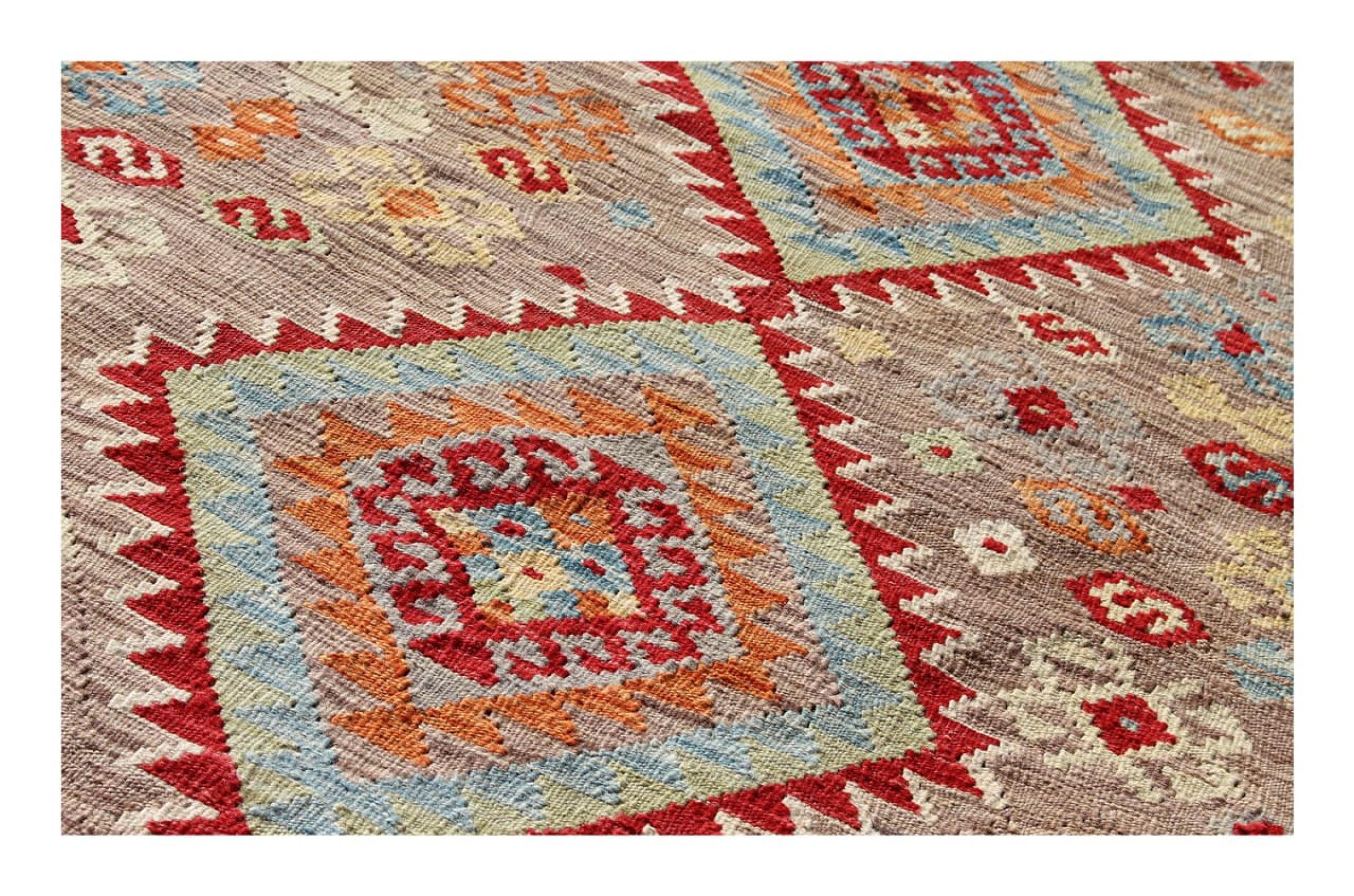 Deze handgeweven kilim Afghan is prachtig door de veelzijdige kleuren en het typische patroon. Het is handgeweven in Afghanistan van 100% schapenwol. Het is ongetwijfeld robuuster en duurzamer dan machinaal vervaardigde tapijten. Daarnaast heeft deze kelim een ​​heel eigen karakter. Een uniek stuk voor jou en je huis dat je nooit meer zult vinden.