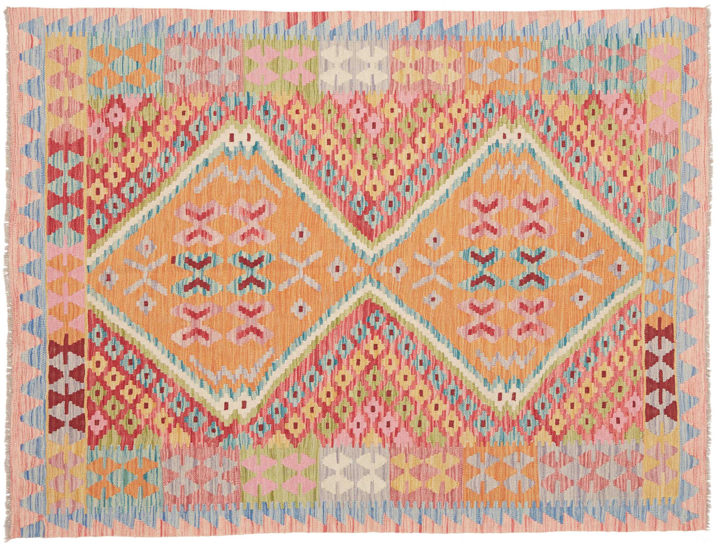 Deze handgeweven kilim Afghan is prachtig door de veelzijdige kleuren en het typische patroon. Het is handgeweven in Afghanistan van 100% schapenwol. Het is ongetwijfeld robuuster en duurzamer dan machinaal vervaardigde tapijten. Daarnaast heeft deze kelim een ​​heel eigen karakter. Een uniek stuk voor jou en je huis dat je nooit meer zult vinden.