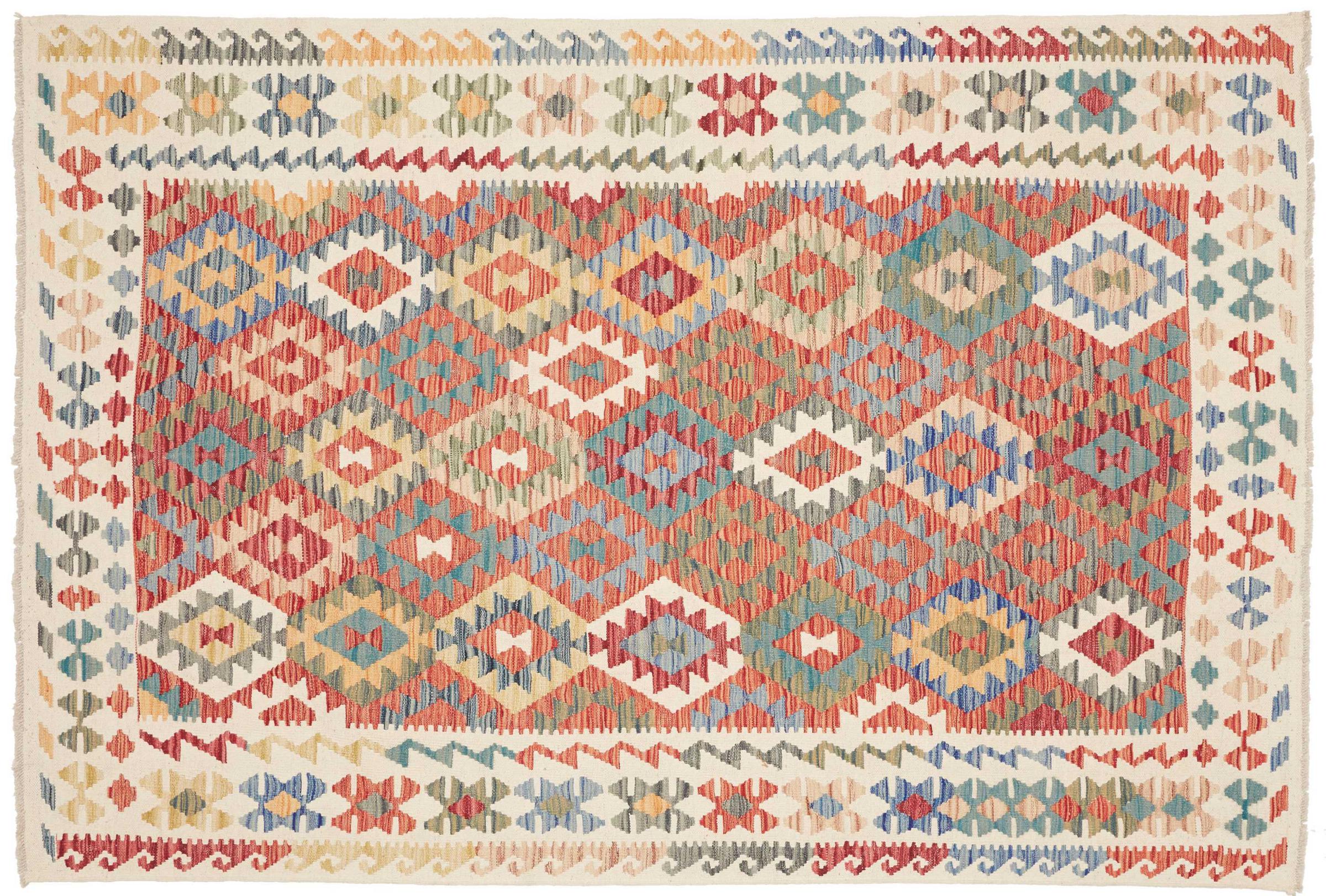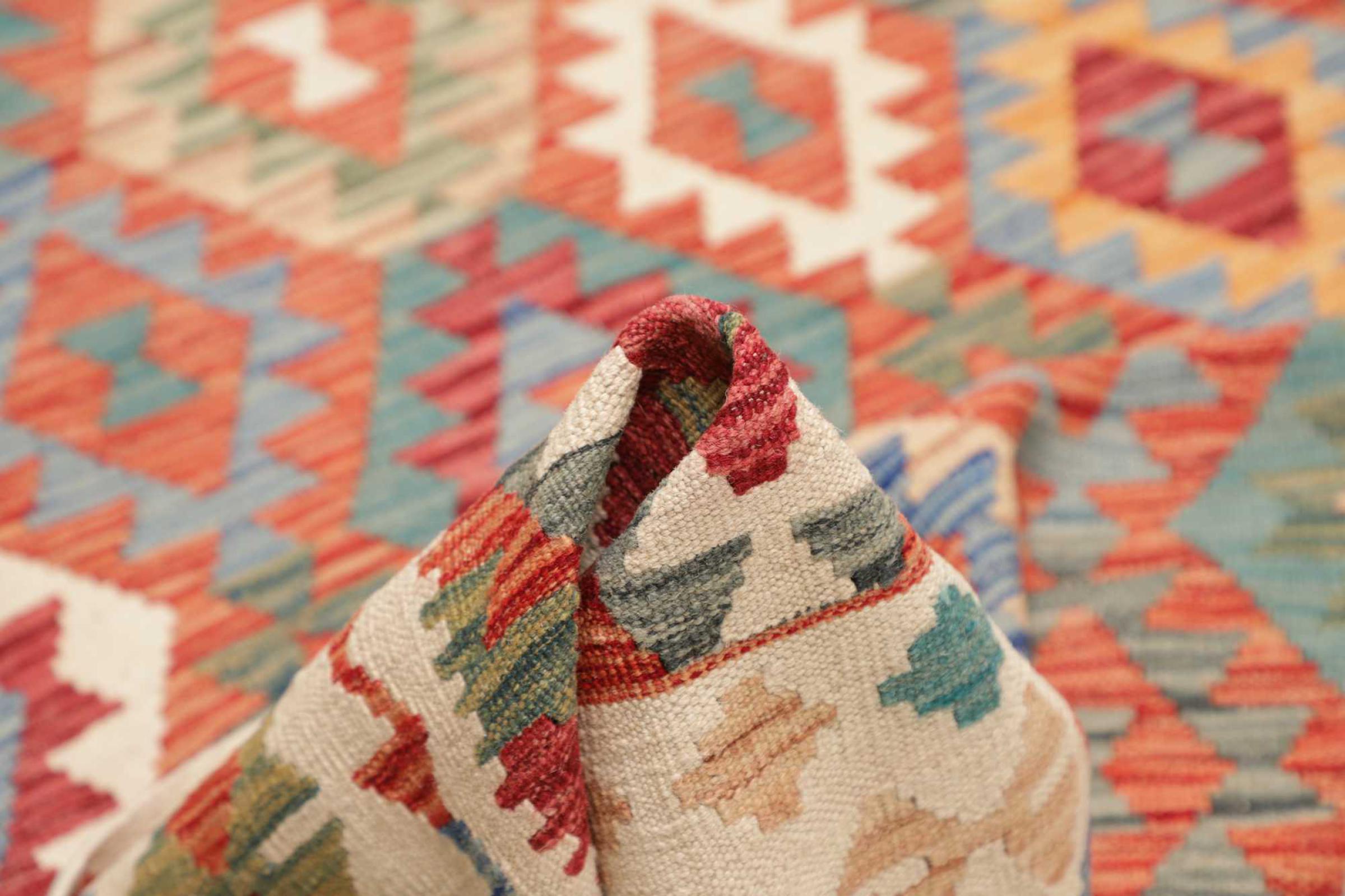 Deze handgeweven kilim Afghan is prachtig door de veelzijdige kleuren en het typische patroon. Het is handgeweven in Afghanistan van 100% schapenwol. Het is ongetwijfeld robuuster en duurzamer dan machinaal vervaardigde tapijten. Daarnaast heeft deze kelim een ​​heel eigen karakter. Een uniek stuk voor jou en je huis dat je nooit meer zult vinden.
