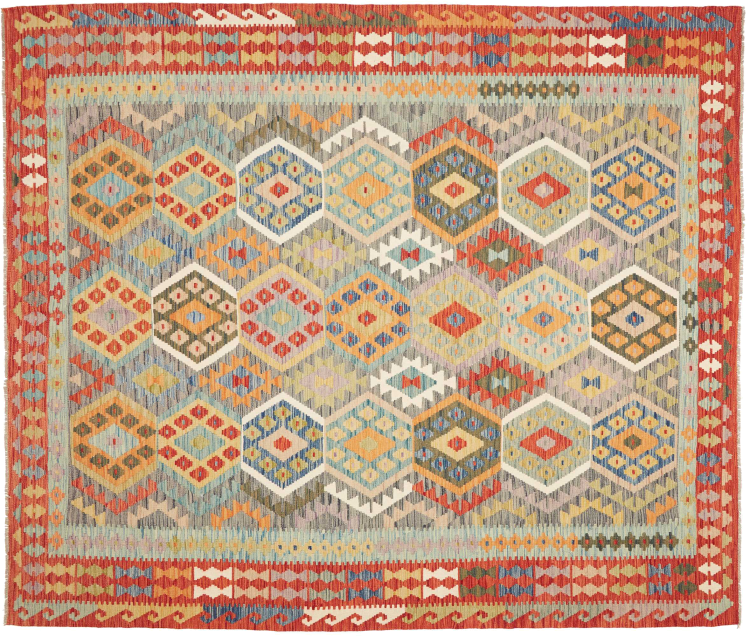 Deze handgeweven kilim Afghan is prachtig door de veelzijdige kleuren en het typische patroon. Het is handgeweven in Afghanistan van 100% schapenwol. Het is ongetwijfeld robuuster en duurzamer dan machinaal vervaardigde tapijten. Daarnaast heeft deze kelim een ​​heel eigen karakter. Een uniek stuk voor jou en je huis dat je nooit meer zult vinden.