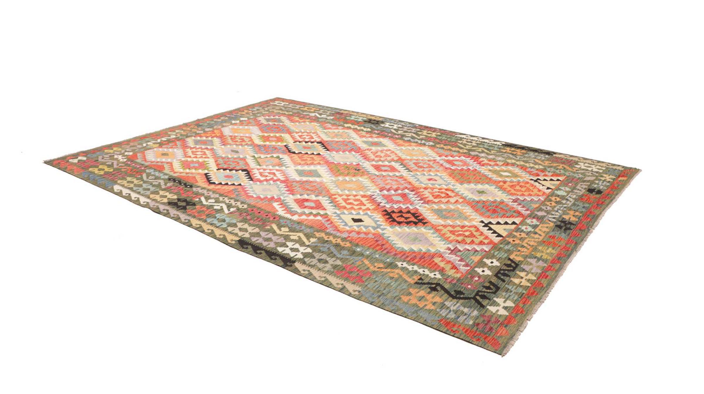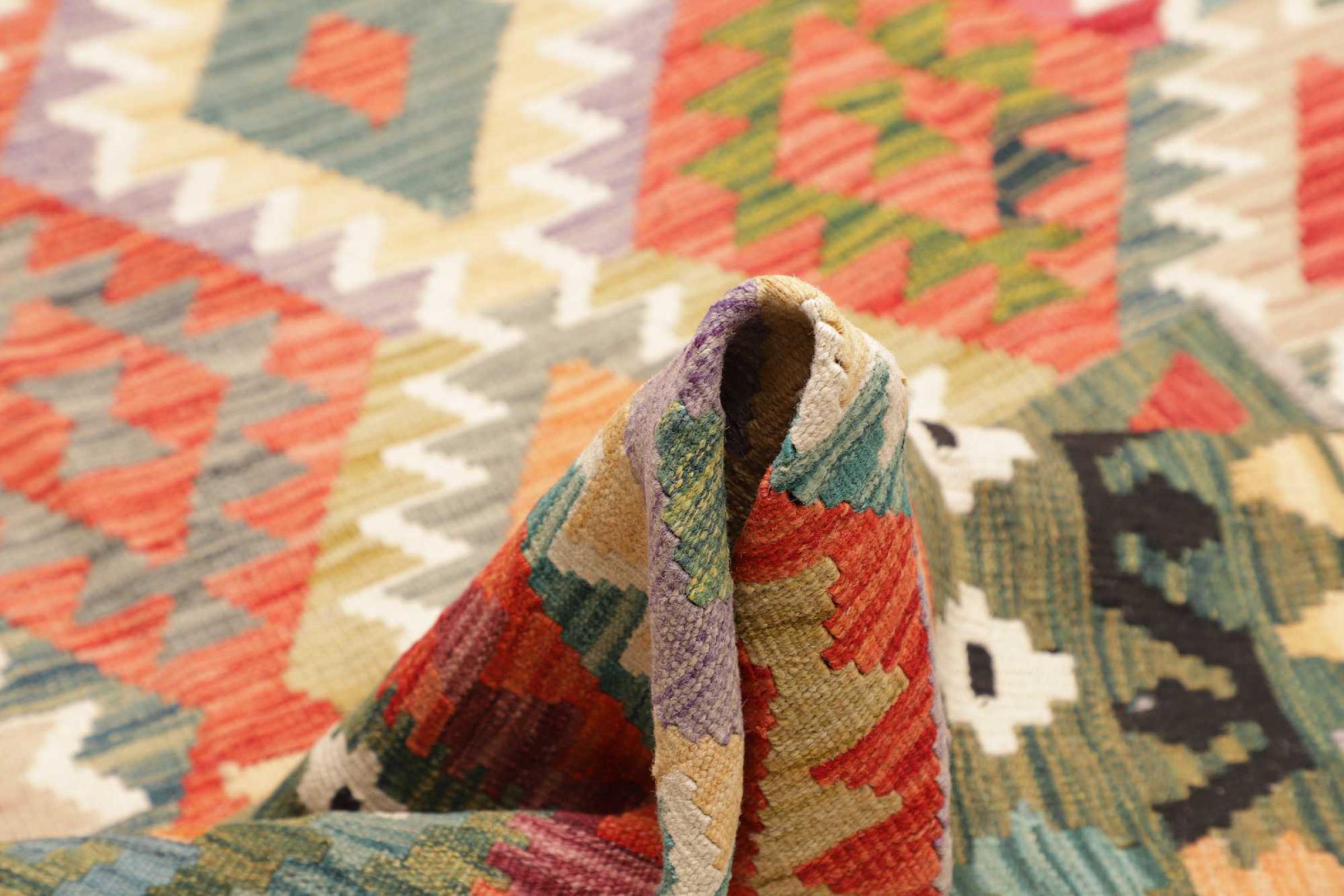 Deze handgeweven kilim Afghan is prachtig door de veelzijdige kleuren en het typische patroon. Het is handgeweven in Afghanistan van 100% schapenwol. Het is ongetwijfeld robuuster en duurzamer dan machinaal vervaardigde tapijten. Daarnaast heeft deze kelim een ​​heel eigen karakter. Een uniek stuk voor jou en je huis dat je nooit meer zult vinden.