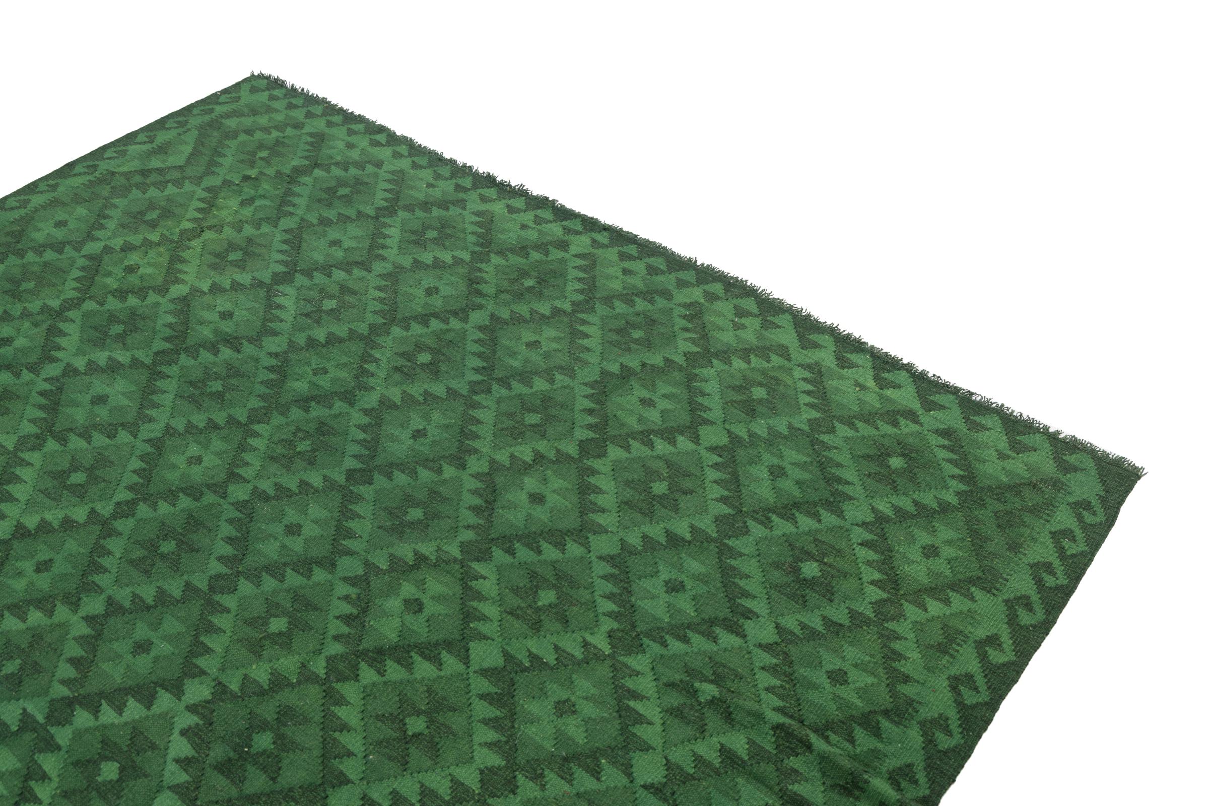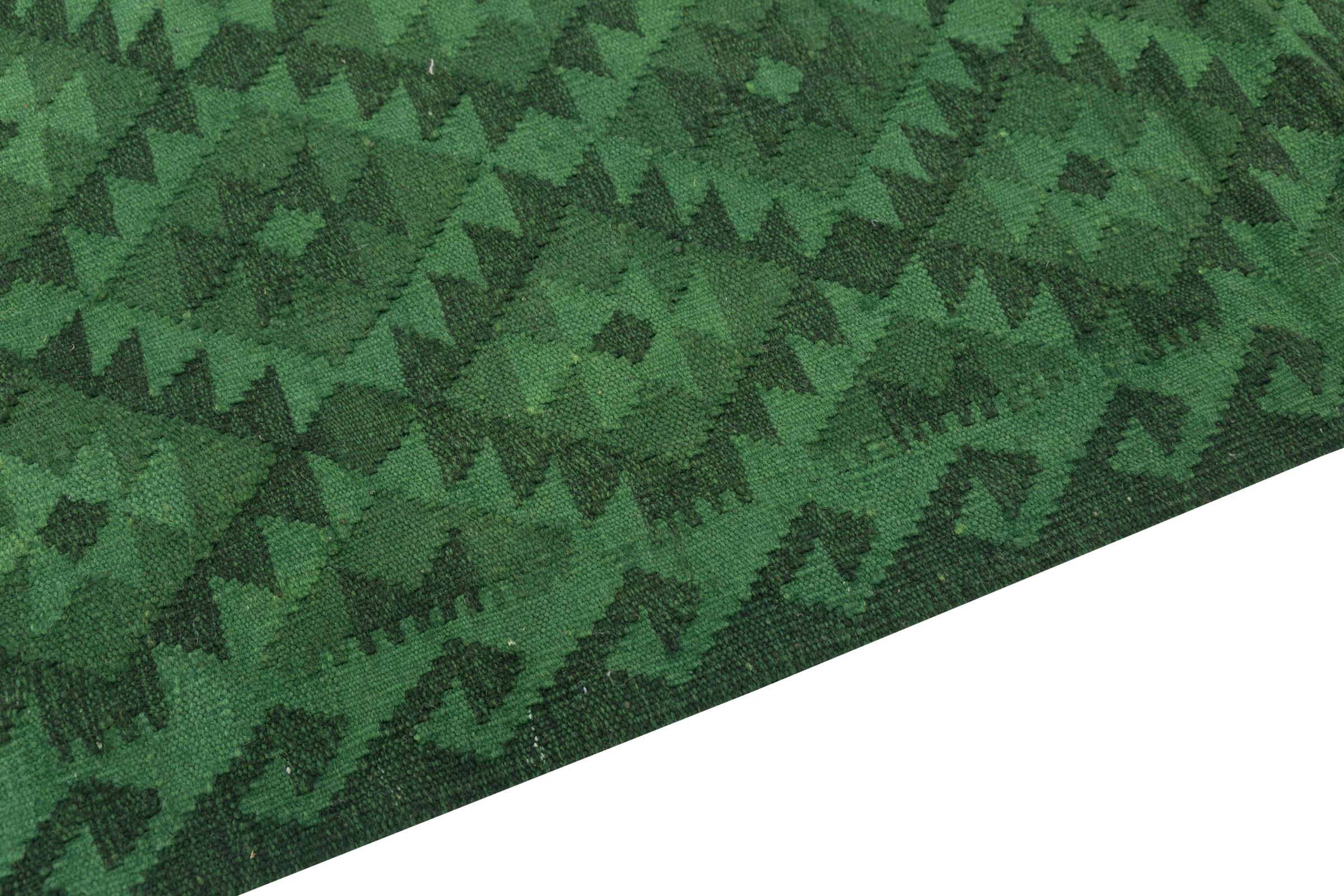 Dit tapijt is met de hand gemaakt op een weefgetouw als plat weefgetouw. Flatweave is de term die wordt gebruikt om tapijten zonder pool te beschrijven. Zoals de naam al belooft, zijn deze tapijten geweven en niet geknoopt. Dit resulteert in een vlak tapijt met een gestructureerd oppervlak. Platweefsels zijn niet zo zacht en meestal dunner dan geknoopte tapijten. Tegelijkertijd zijn ze veel minder complex te vervaardigen en kunnen ze meestal aan beide zijden (voor- en achterkant) worden gelegd. Hun patronen zijn meestal geometrisch, wat wordt bepaald door de stof.