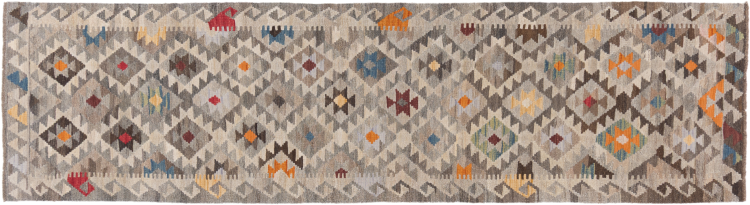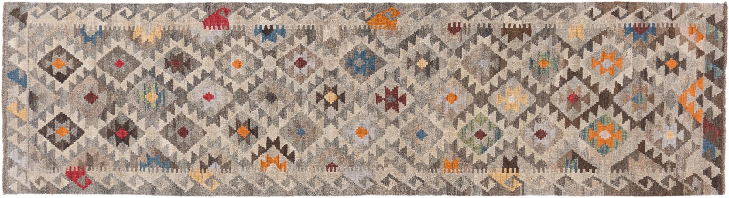 Tapijt ID: 2949820045945 Grootte: 295x79 cm Dikte: ap. 3 mm Verwerking: Handgeweven Pool: Hand gesponnen wol Schering: Wol Oorsprong: Afghanistan Leeftijd: Nieuw Gewicht: ap. 3 kg Ook wel bekend als Kilim, Qilim, Chilim, Afgan, Afghán Op voorraad: Uniek - Nog maar 1 op voorraad
