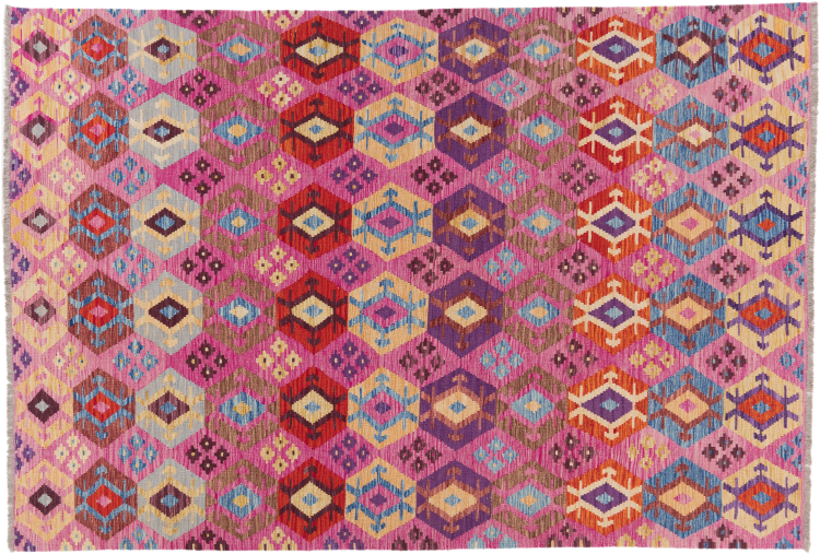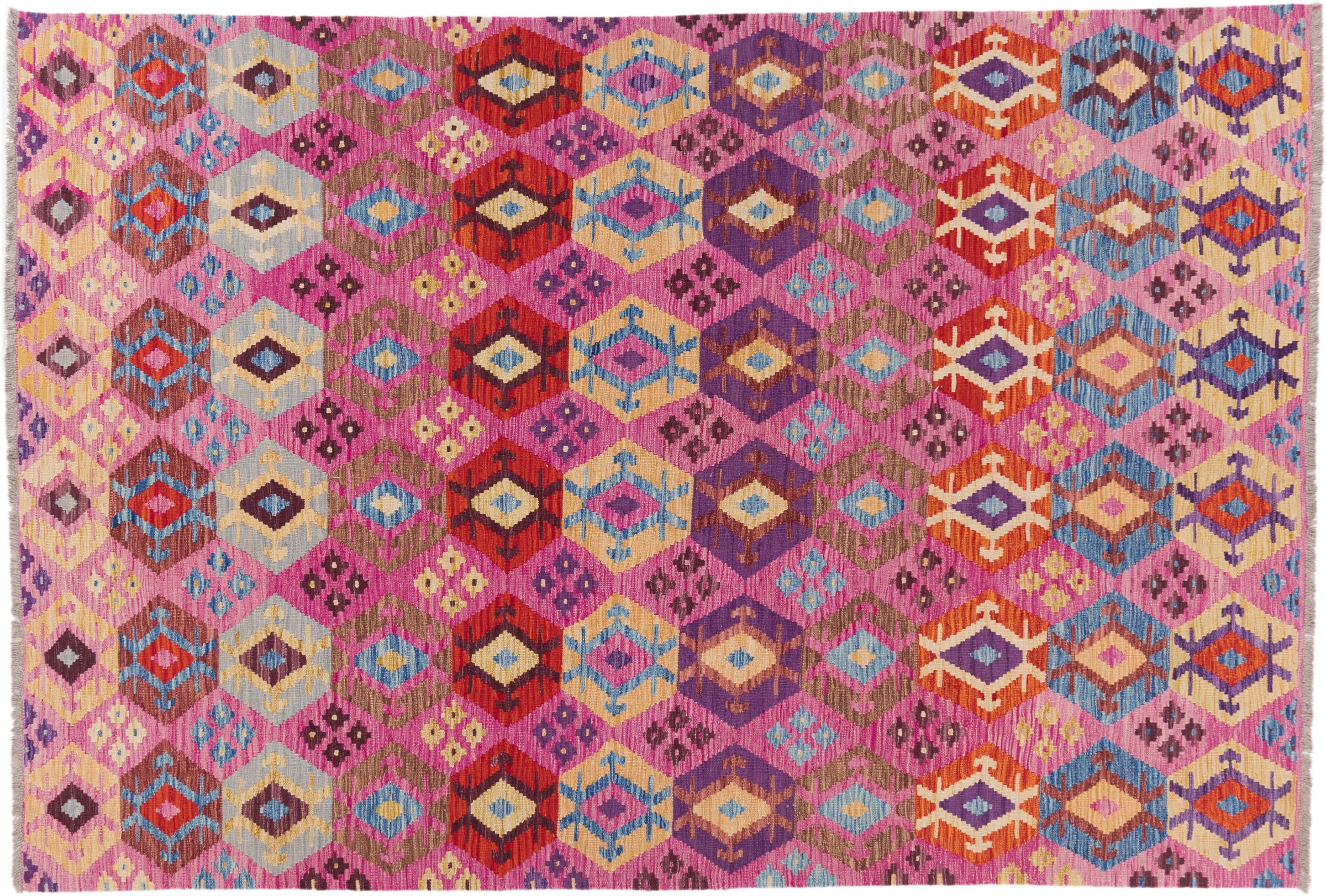 Tapijt ID: 2947530049692 Grootte: 303x206 cm Dikte: ap. 3 mm Verwerking: Handgeweven Pool: Hand gesponnen wol Schering: Wol Oorsprong: Afghanistan Leeftijd: Nieuw Gewicht: ap. 9 kg Ook wel bekend als Kilim, Qilim, Chilim, Afgan, Afghán Op voorraad: Uniek - Nog maar 1 op voorraad