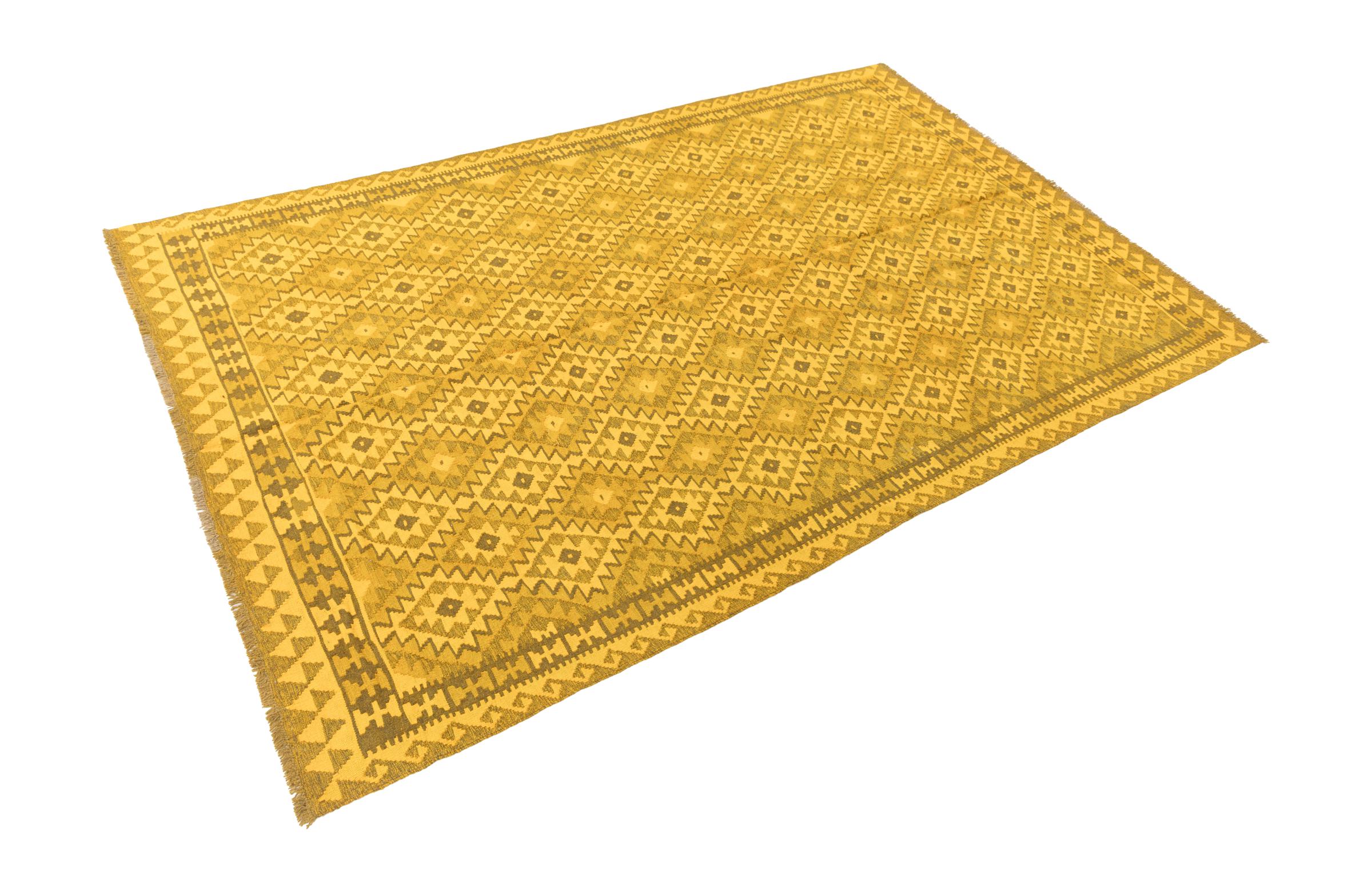 Tapijt ID: 294174002327 Grootte: 308x200 cm Dikte: ap. 3 mm Verwerking: Handgeweven Pool: Hand gesponnen wol Schering: Wol Oorsprong: Afghanistan Leeftijd: Nieuw Gewicht: ap. 9 kg Ook wel bekend als Kilim, Qilim, Chilim, Afgan, Afghán Op voorraad: Uniek - Nog maar 1 op voorraad