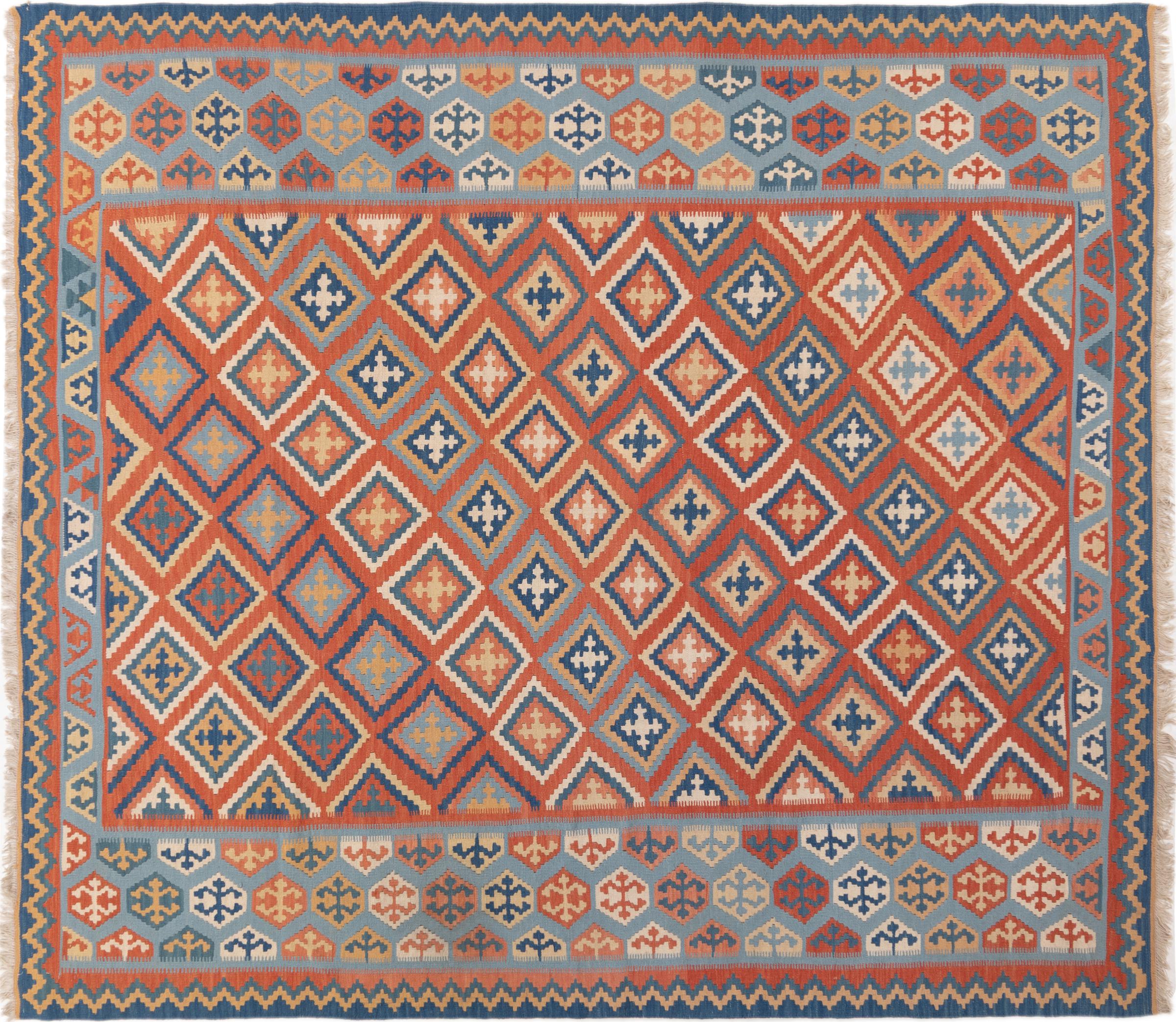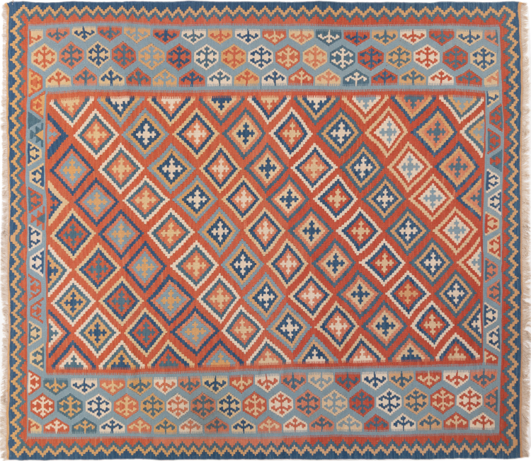 Deze handgeweven kilim fars combineert Perzische patronen en ornamenten met de traditie van platbindingen. Een geweldige en moderne combinatie van de meest populaire concepten van de Oriënt. Zo ontstaat een tapijt met een breed scala aan toepassingen. Of het nu gaat om sprei of als vloerkleed voor de bank - een Fars kelim maakt het mogelijk en is nu te vinden in de meest bekende interieurmagazines. Kelim Fars-tapijten worden met de hand geweven in Iran en behoren daarom tot de hoogste kwaliteit kelims.