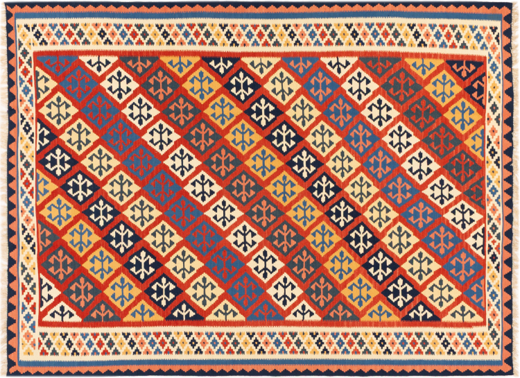 Deze handgeweven kilim fars combineert Perzische patronen en ornamenten met de traditie van platbindingen. Een geweldige en moderne combinatie van de meest populaire concepten van de Oriënt. Zo ontstaat een tapijt met een breed scala aan toepassingen. Of het nu gaat om sprei of als vloerkleed voor de bank - een Fars kelim maakt het mogelijk en is nu te vinden in de meest bekende interieurmagazines. Kelim Fars-tapijten worden met de hand geweven in Iran en behoren daarom tot de hoogste kwaliteit kelims.