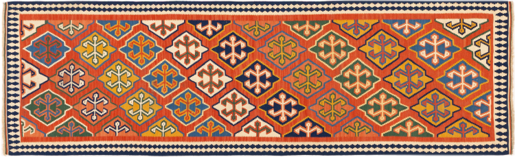 Tapijt ID: 30842400856267 Grootte: 291x87 cm Dikte: ap. 4 mm Verwerking: Handgeweven Pool: Hand gesponnen wol Schering: Wol Oorsprong: Perzië / Iran Leeftijd: Nieuw Gewicht: ap. 4 kg Op voorraad: Uniek - Nog maar 1 op voorraad